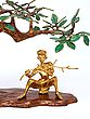 Krishna's flute is far more than just a musical instrument; it is a symbol of his divine love and captivating charm. In Hindu mythology, the enchanting melodies of Krishna's flute are said to have mesmerized not only the gopis (milkmaids of Vrindavan) but also the entire natural world. The sound is believed to carry a mystical power, attracting both human and divine beings to the path of devotion. The tree itself acts as a symbolic representation of the natural world’s harmony, and the divine’s connection to it, Krishna finding solace and inspiration within its sheltering branches. His connection to nature further emphasizes his role as a protector and preserver of all life.