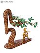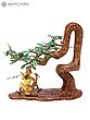 This exquisite 18-inch brass statue captures the divine essence of Lord Krishna, the eighth avatar of Vishnu, as he serenades the world with his enchanting flute under the shade of a verdant tree. The statue is a testament to the rich artistic heritage of India, skillfully crafted to bring to life a moment of profound serenity and spiritual beauty. Krishna, the beloved deity, is depicted in a seated position, his posture radiating calmness and contemplation. His focused expression suggests the deep connection he holds with his music, a gift that soothes the soul and awakens the spirit.