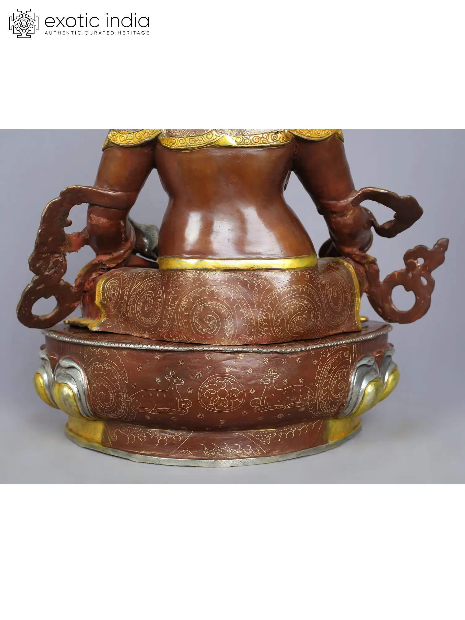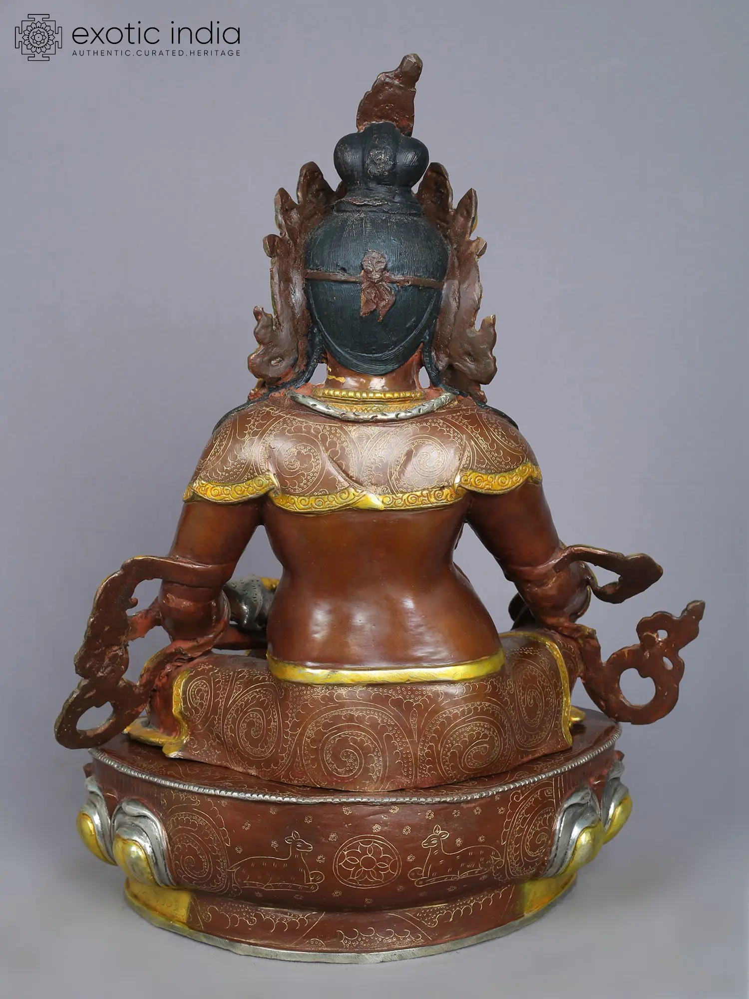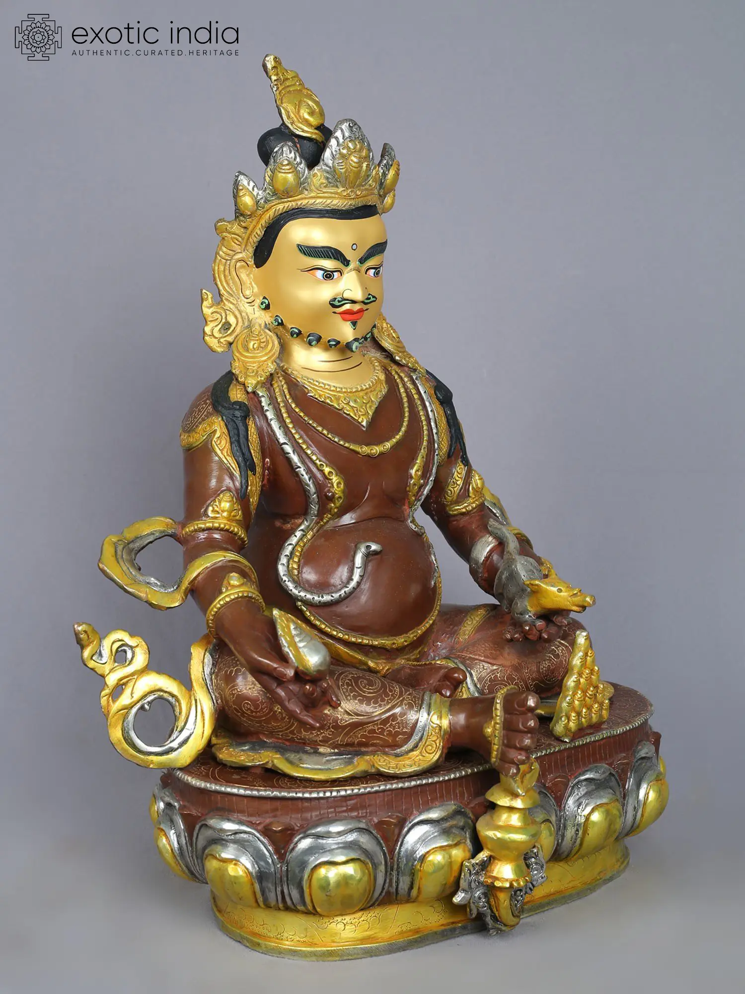 Kubera is the God of wealth in Buddhism and is also known as Vaishravana. His complexion gleams with a radiant golden-yellow hue, and his plump physique is adorned with opulent golden ornaments. He dons a distinctive five-pronged crown, symbolizing the presence of the Five Transcendental Buddhas.
