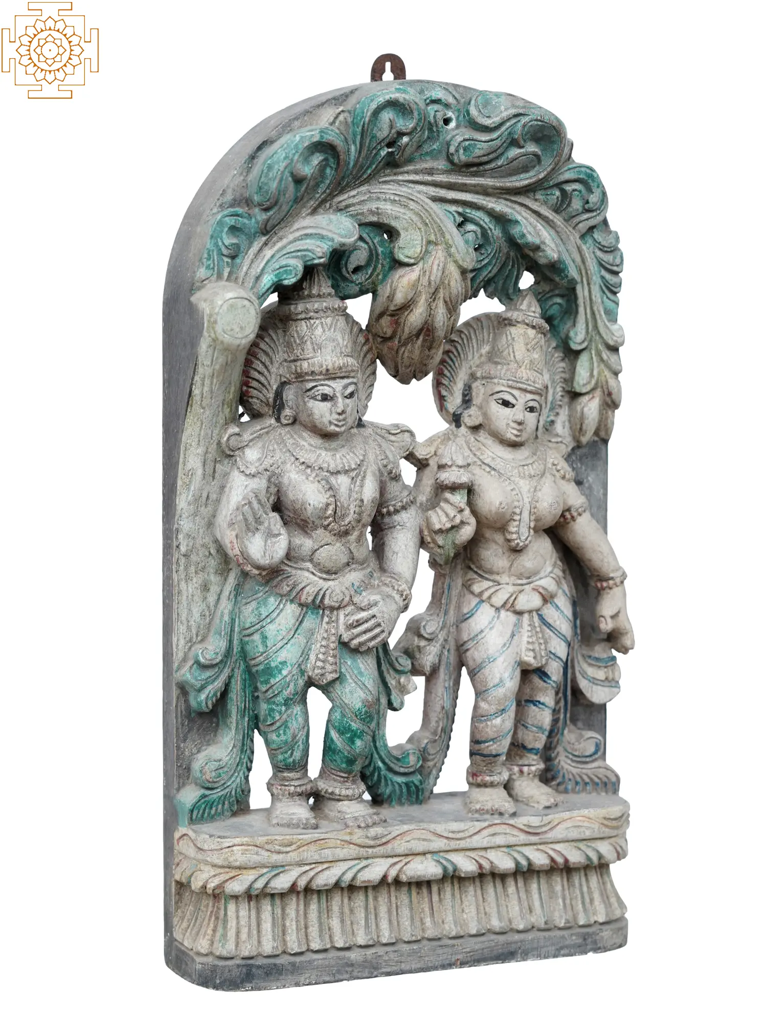 18" Lord Vishnu with Goddess Lakshmi Wooden Statue