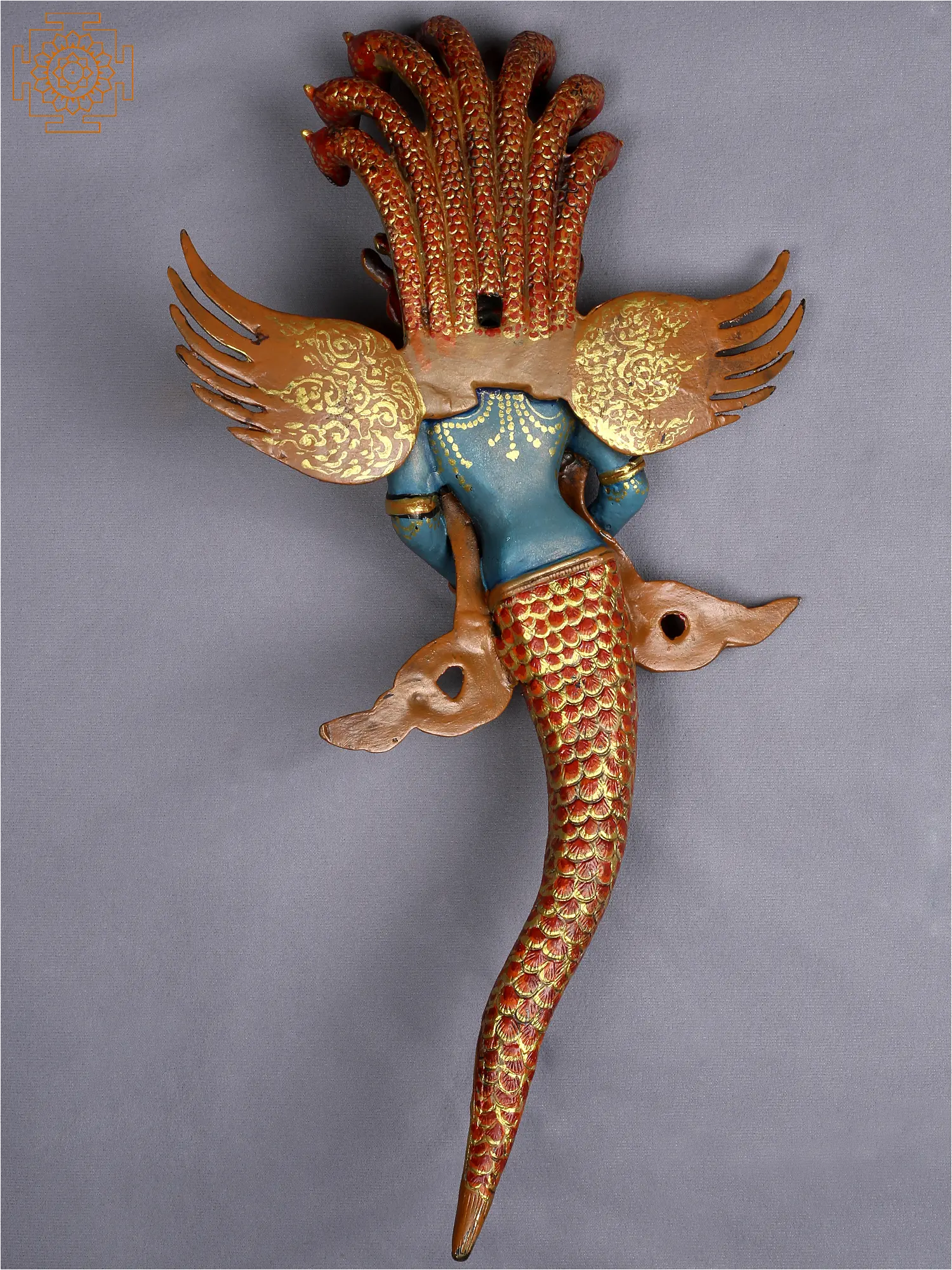 The serpentine spirits of unmatched beauty, Nagakanyas are daughters of the Naga/Serpent King! They’re the guardian of treasures and are often depicted with the upper body of a youthful maiden, the lower body of a snake, and wings from Lord Vishnu’s mount - Garuda as stated in the Hindu tradition. Made in Nepal, this Naga Kanya in Copper is depicted holding a Shanka\Conch symbolizing spiritual offerings,