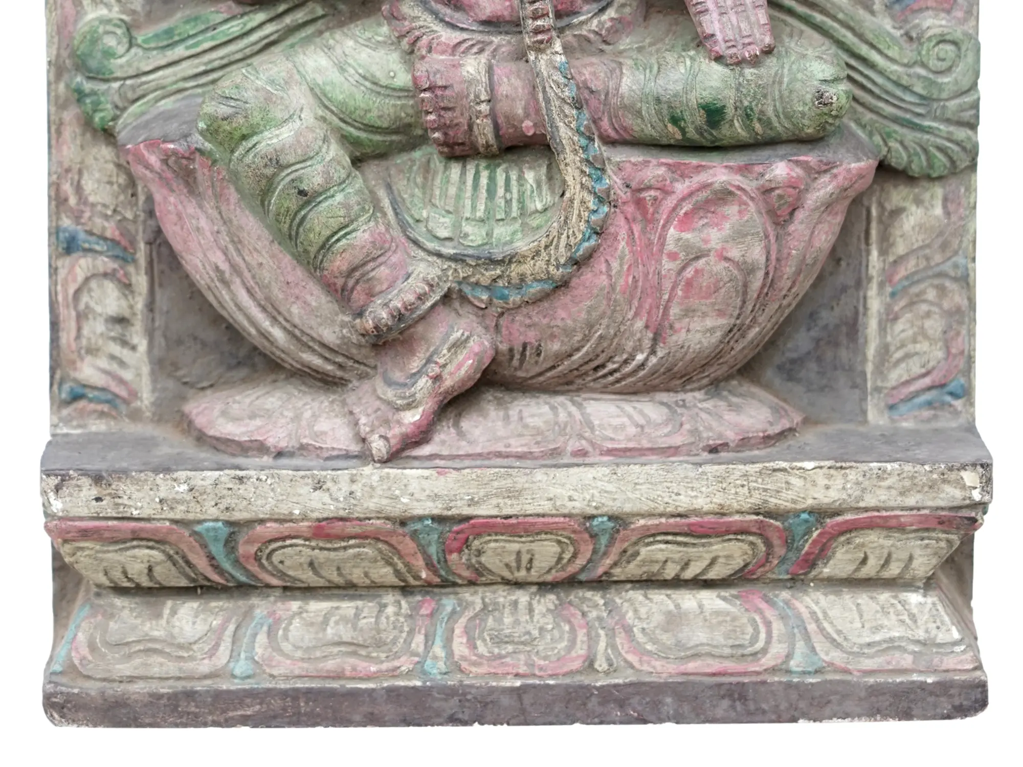 The lithesome form of the goddess, her ample bosom, and exquisite ornamentation are symbolic of the auspiciousness and feminine virtues that find home in Lakshmi. A soft red tint ornaments the goddess, the color red synonymous with Shakti (the feminine energy), that manifests in the form of Lakshmi, and nurtures the world eternally.
