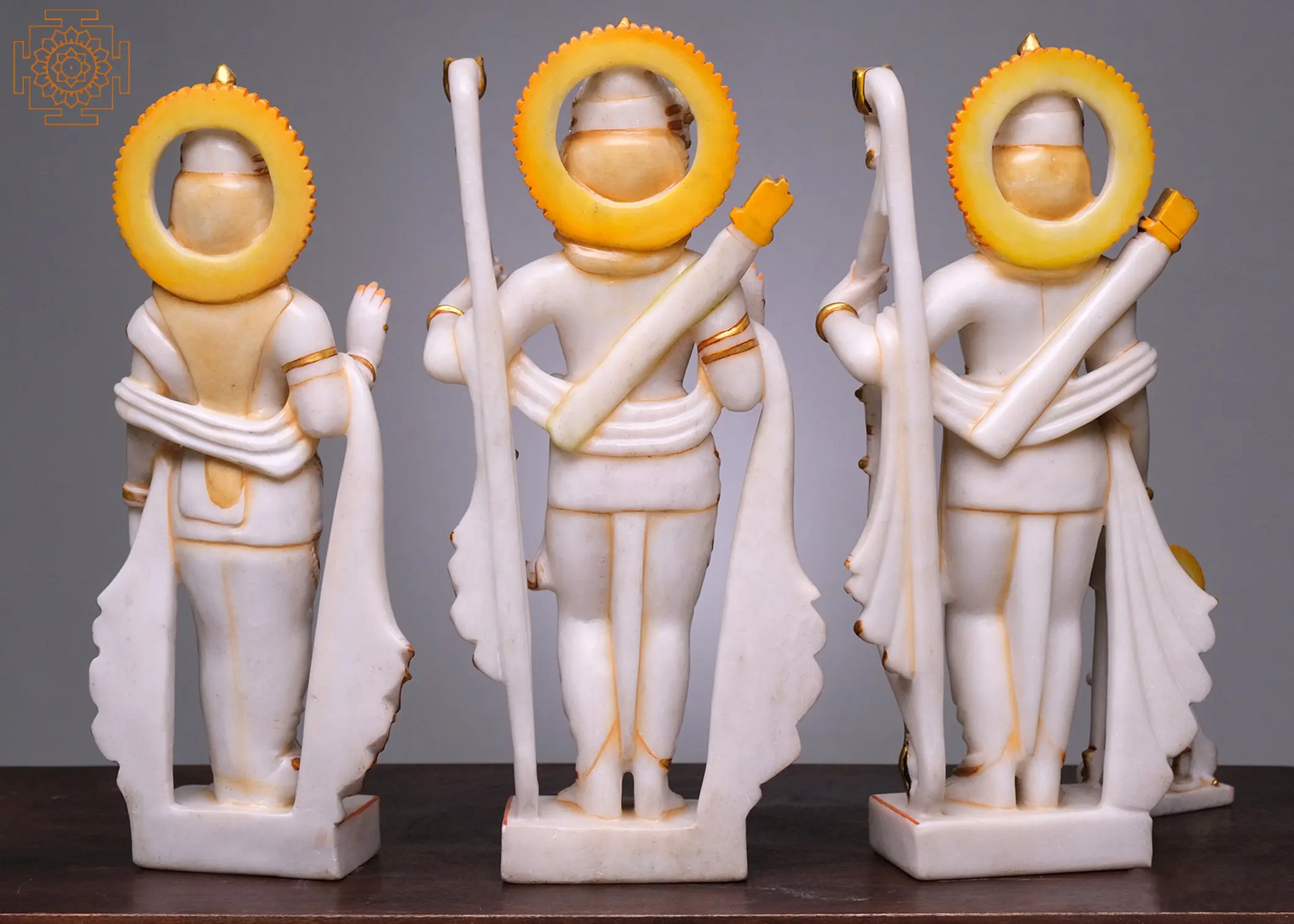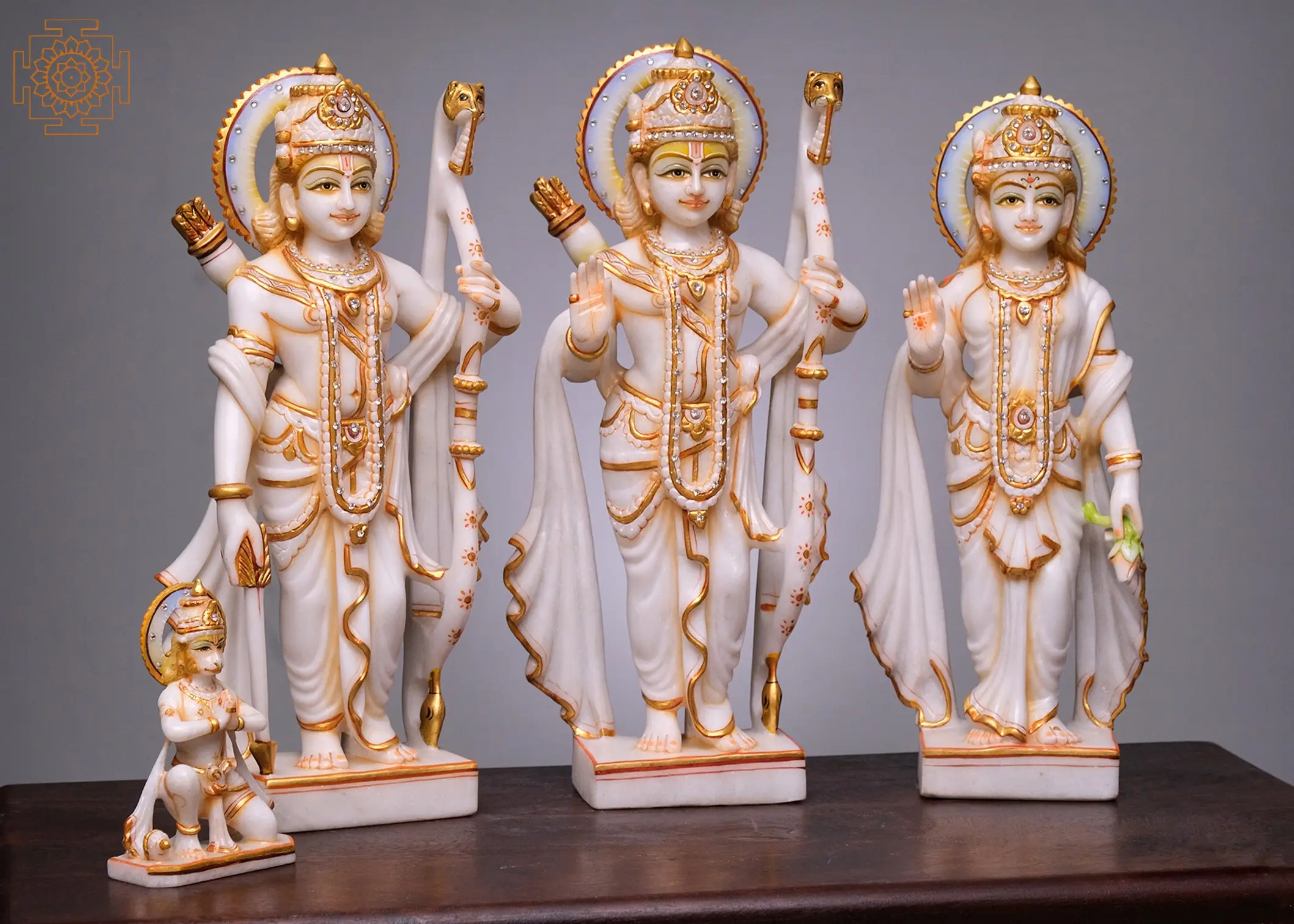 This statue is not merely an object of worship but a testament to the rich artistic heritage of India. Each element, from the delicate folds of the garments to the expressive features of each deity, is rendered with exceptional skill by master artisans. The use of white marble, a material often associated with purity and divinity, further enhances the sacred aura of the sculpture. The subtle gold accents adorning the figures add a touch of opulence and highlight the divine radiance of Rama and his celestial family. This handmade creation is a fusion of artistic mastery and deep spiritual devotion, making it a truly special addition to any altar, temple, or devotional space. It is a piece that will be cherished for generations, a constant source of inspiration and a beautiful representation of divine grace.
