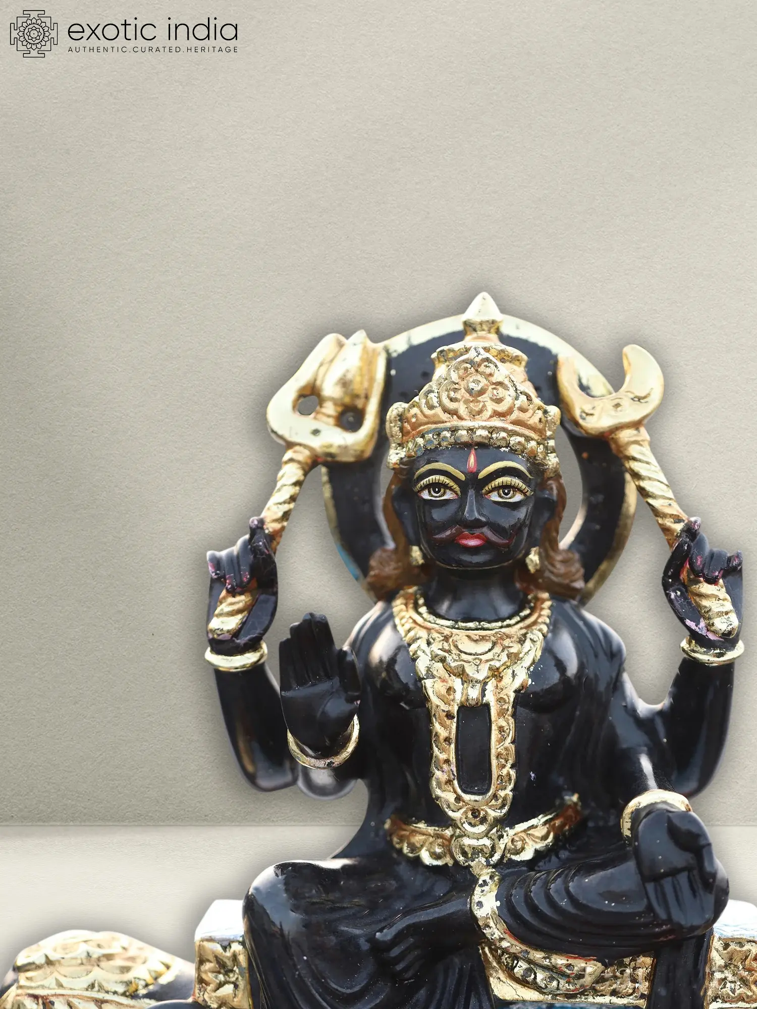 18" Colorful Statue Of Lord Shani | Black Marble Idol