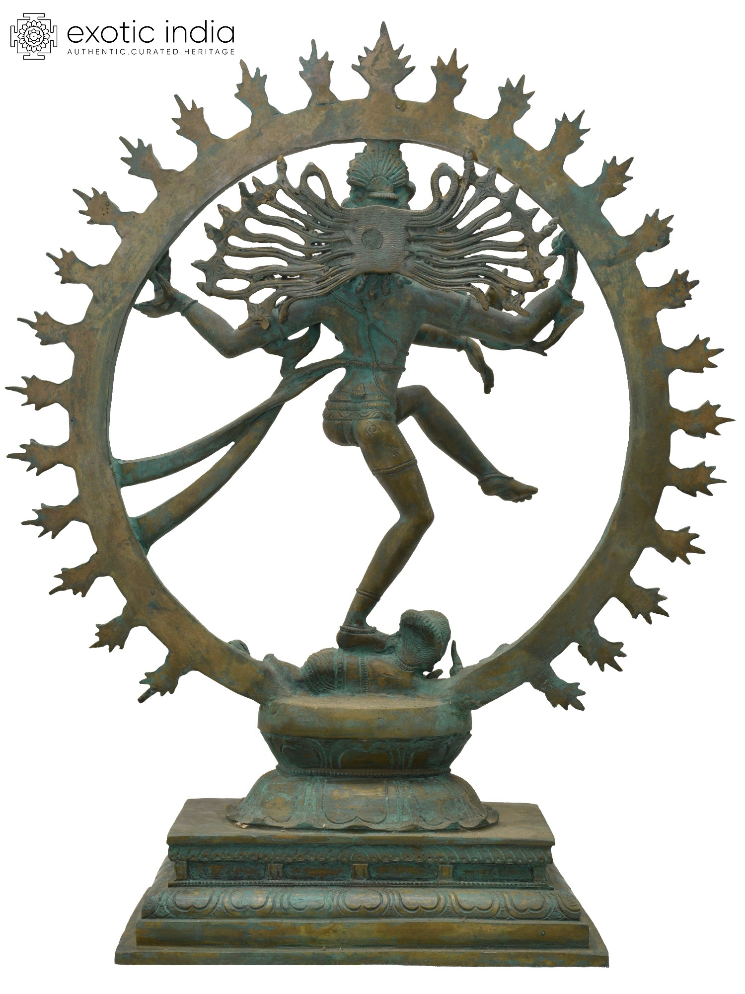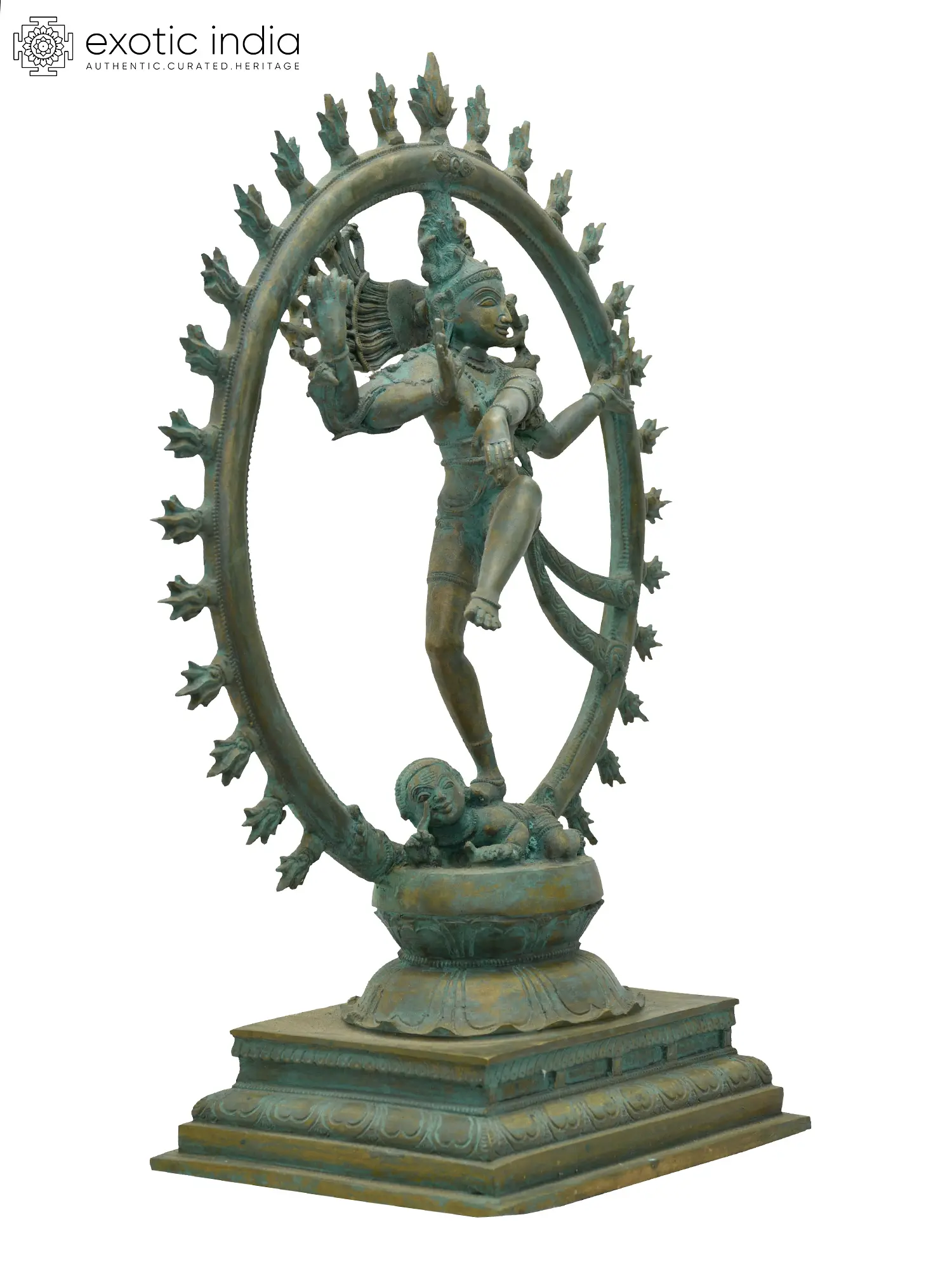 36" Dancing Shiva Under Cosmic Fire Ring (Nataraja) | Madhuchista Vidhana (Lost-Wax) | Panchaloha Bronze from Swamimalai