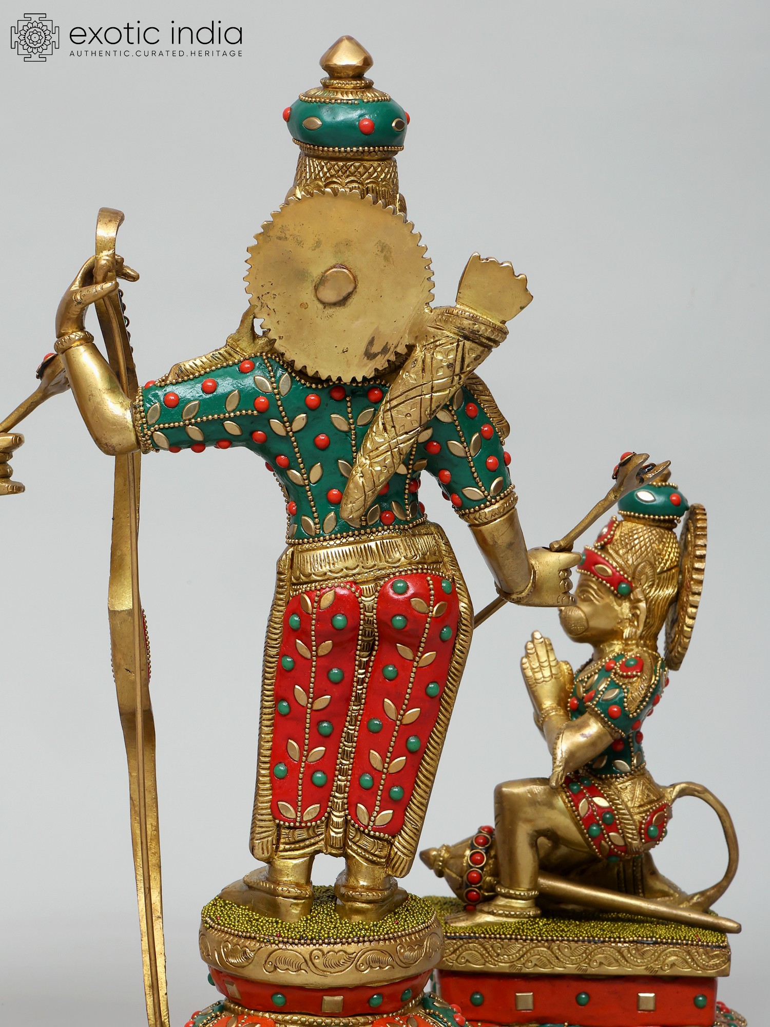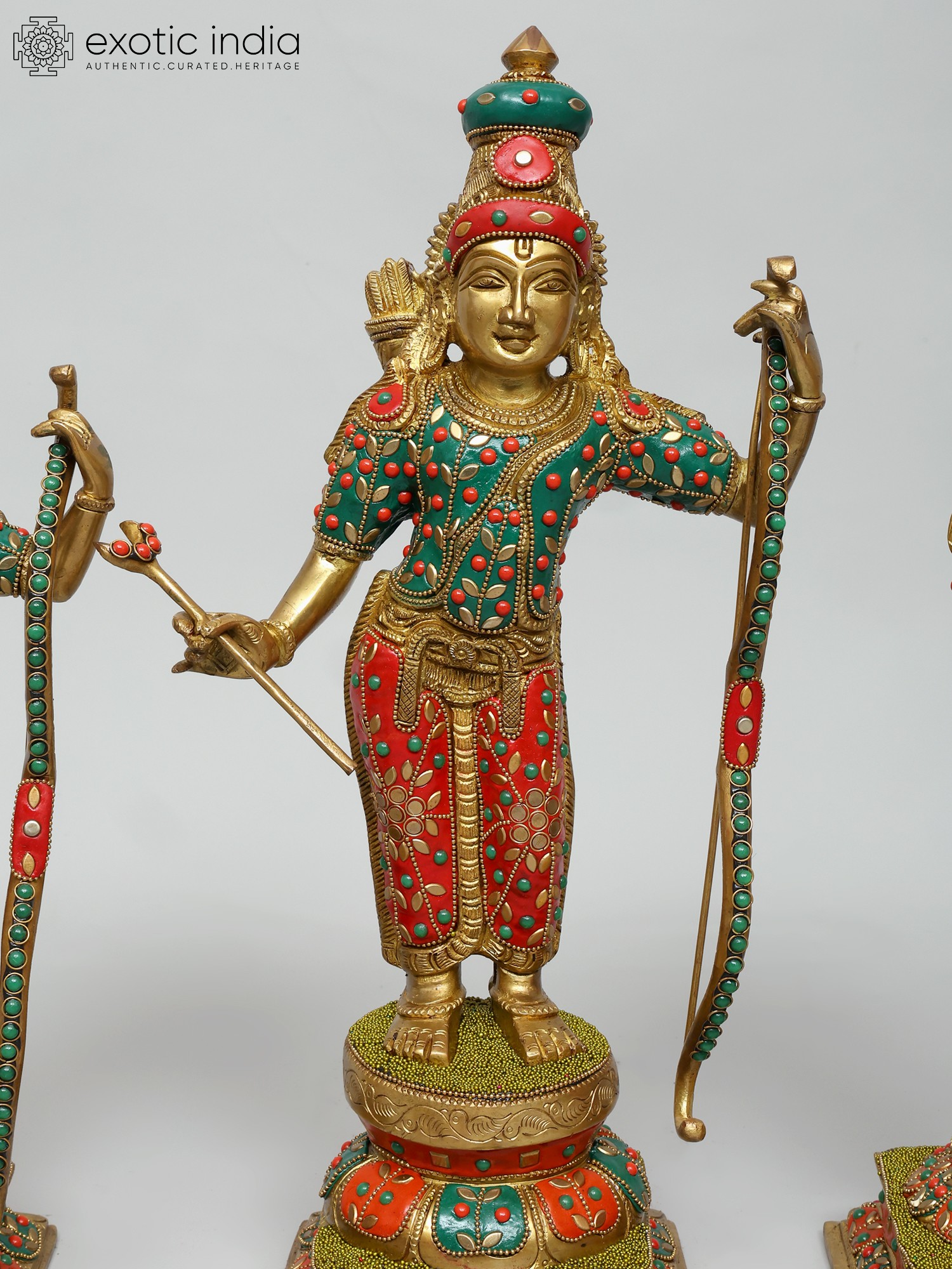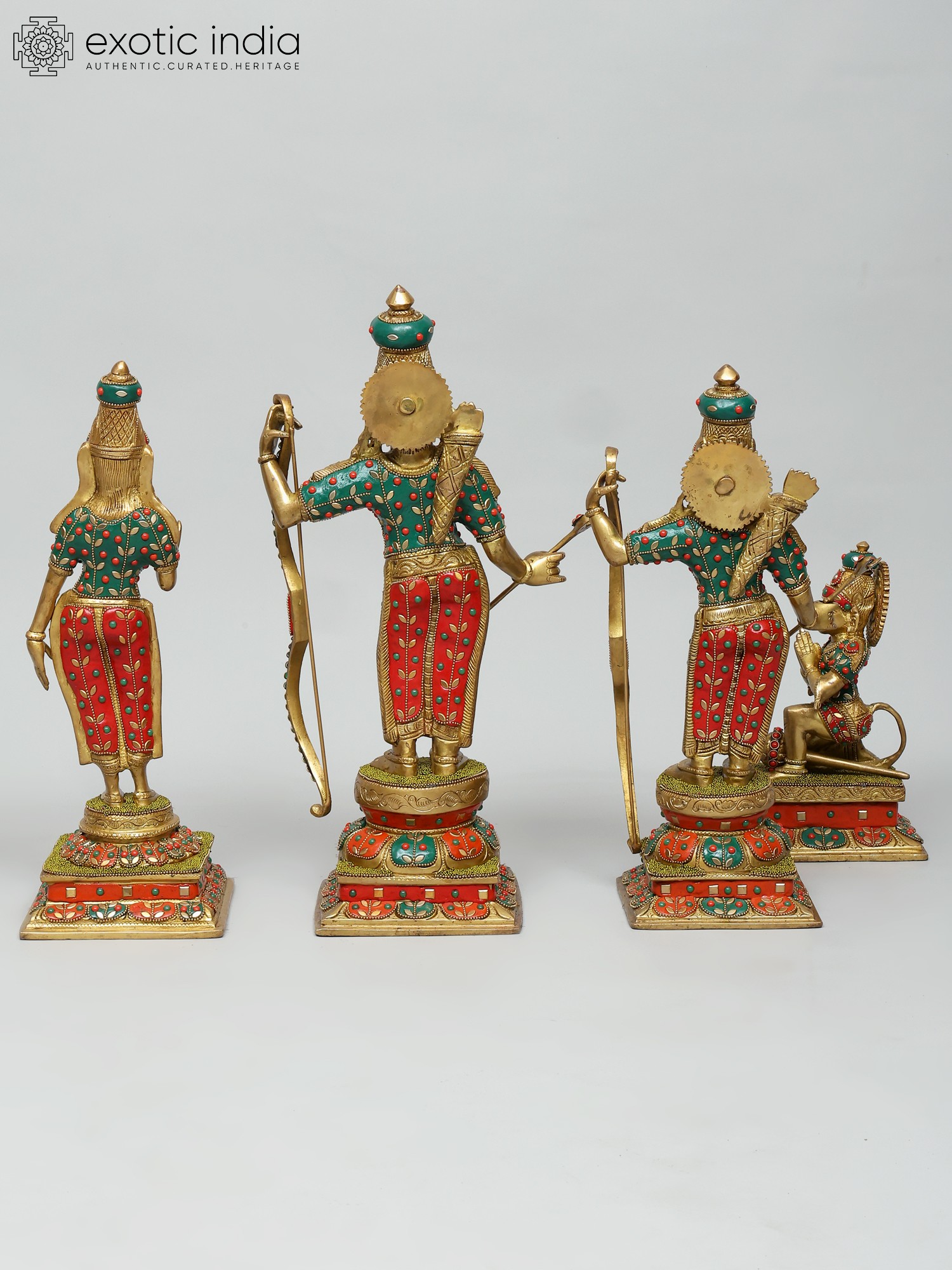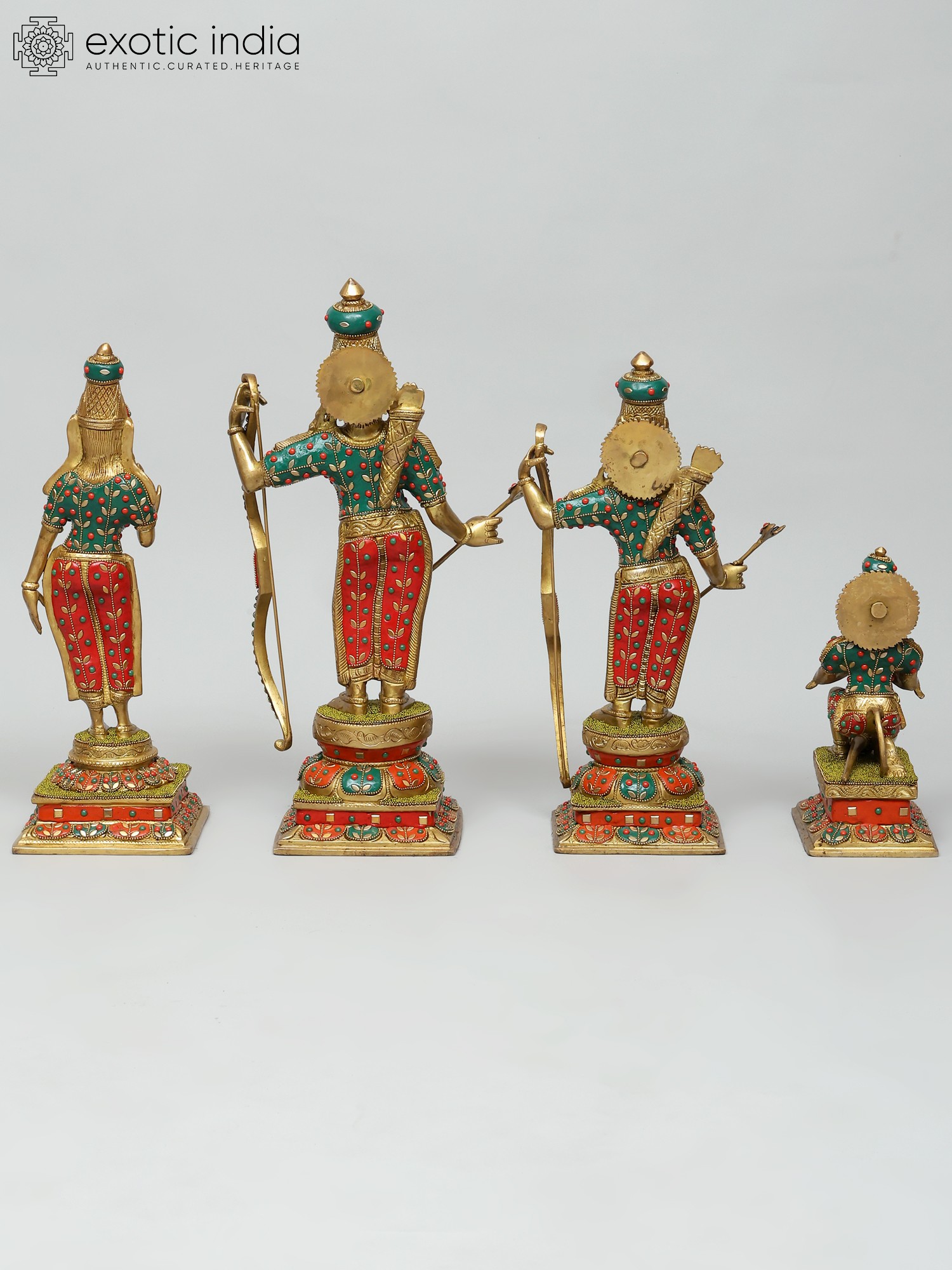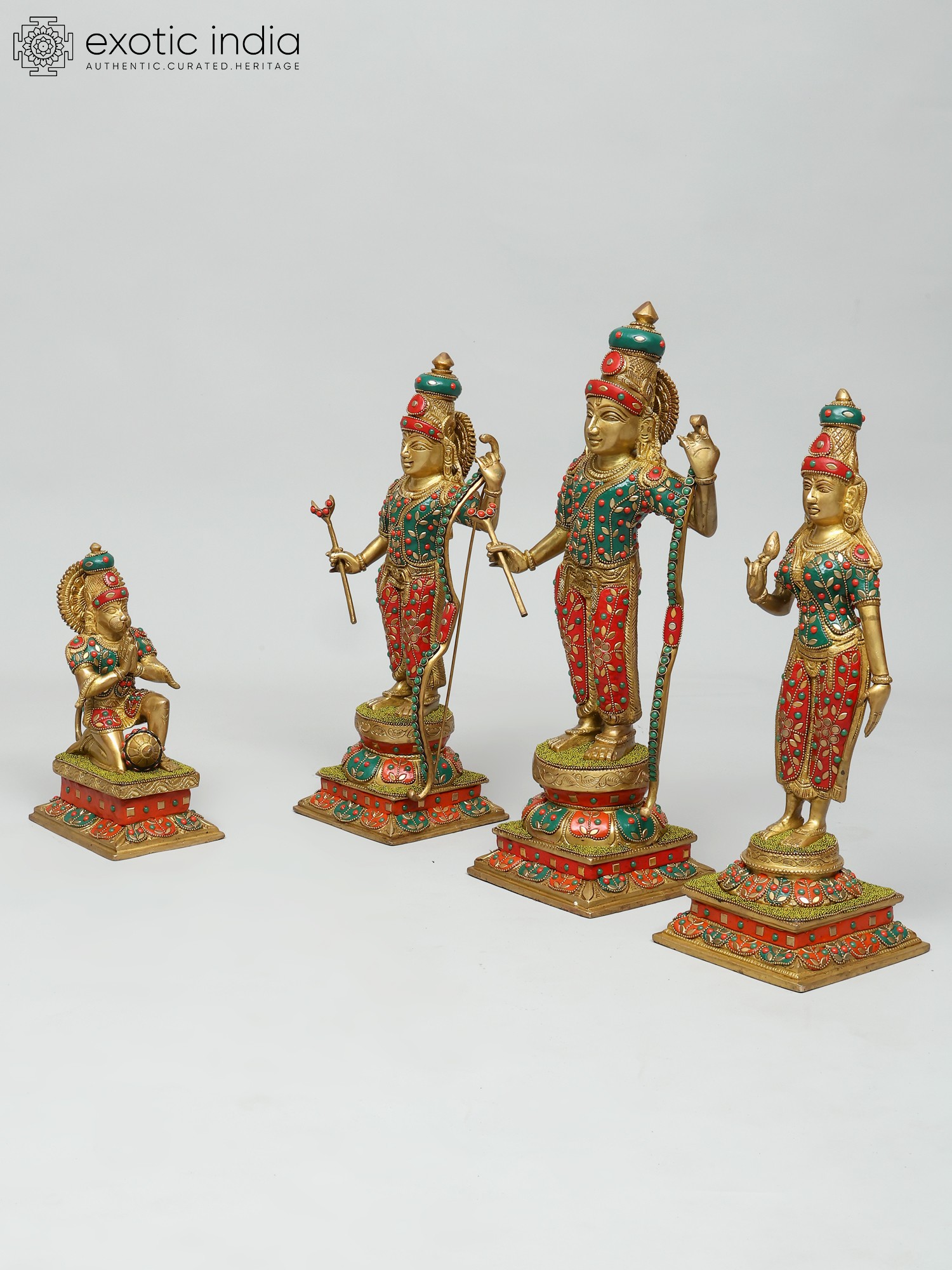 18" Shri Rama Darbar | Set of Four Brass Statues with Inlay Work