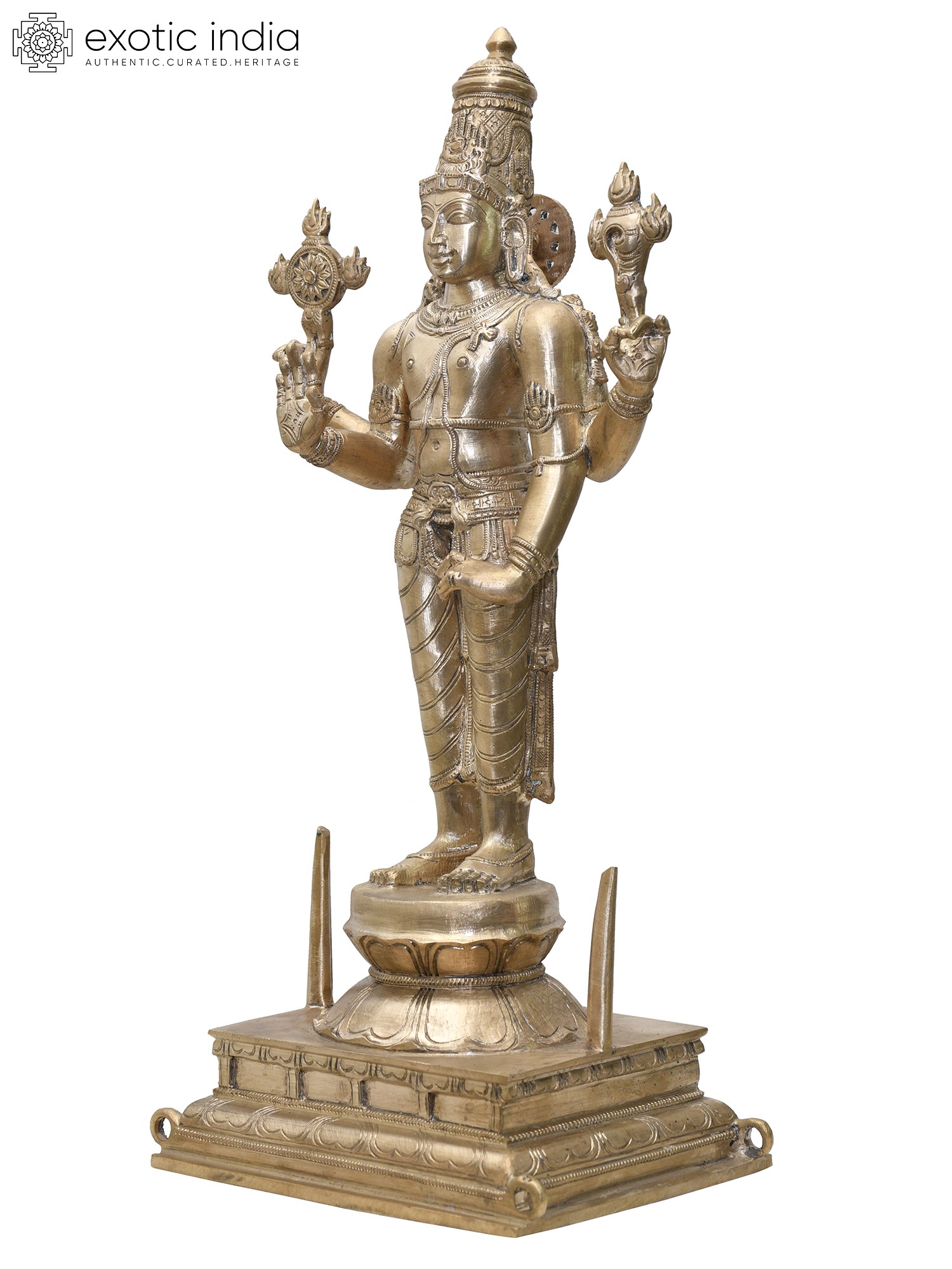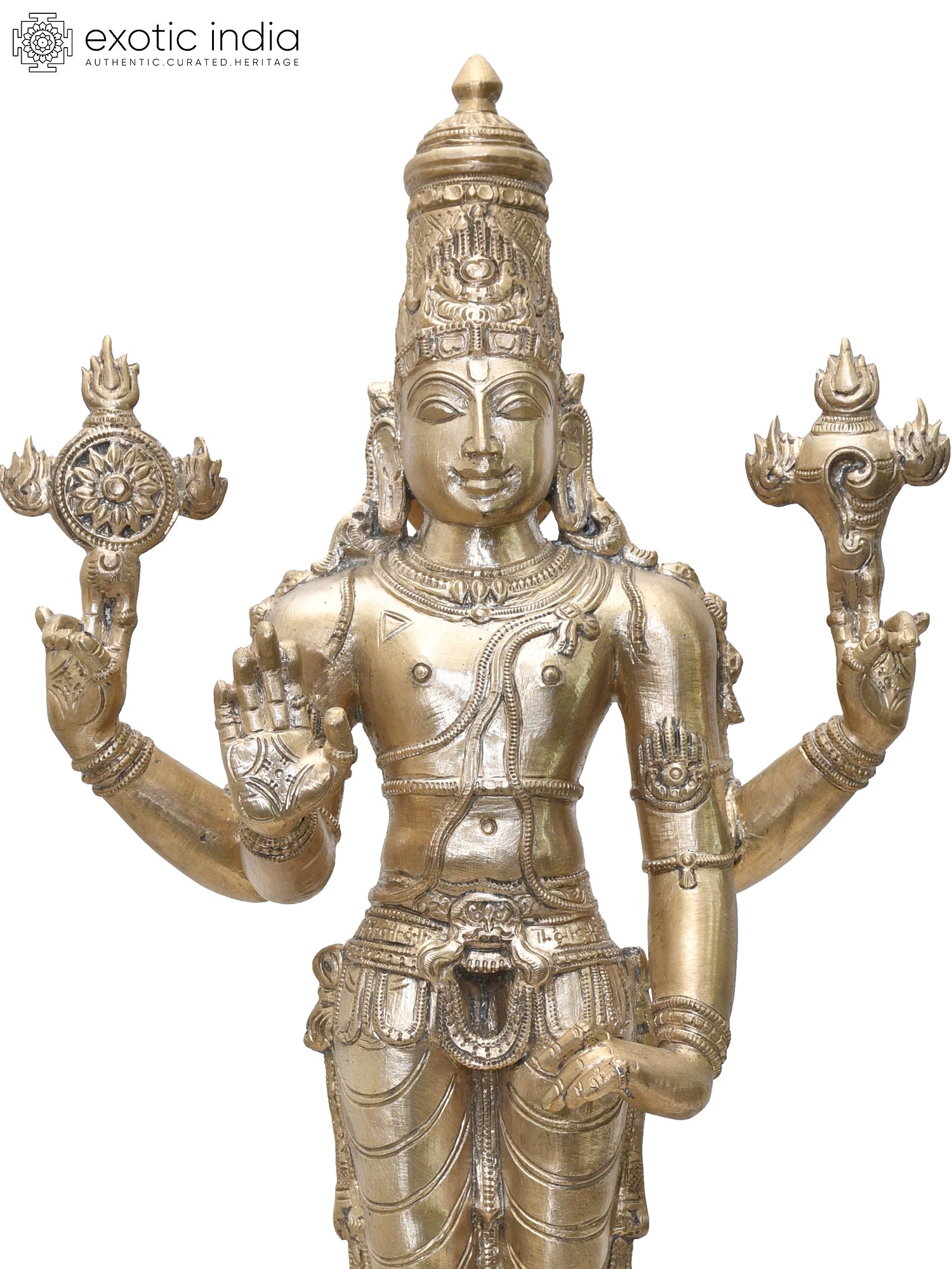24" Four Armed Standing Lord Vishnu in Blessing Gesture | Madhuchista Vidhana (Lost-Wax) | Panchaloha Bronze from Swamimalai