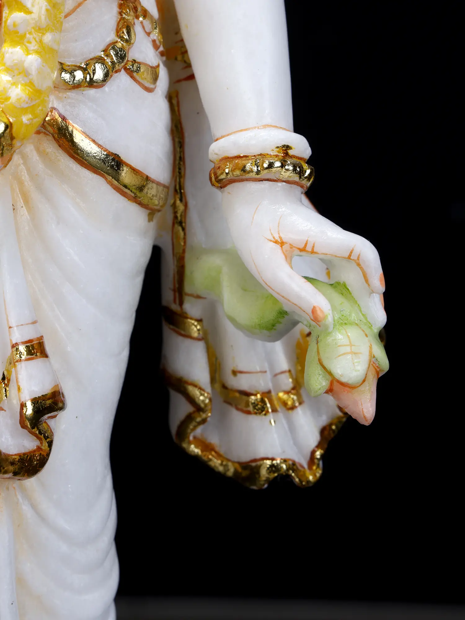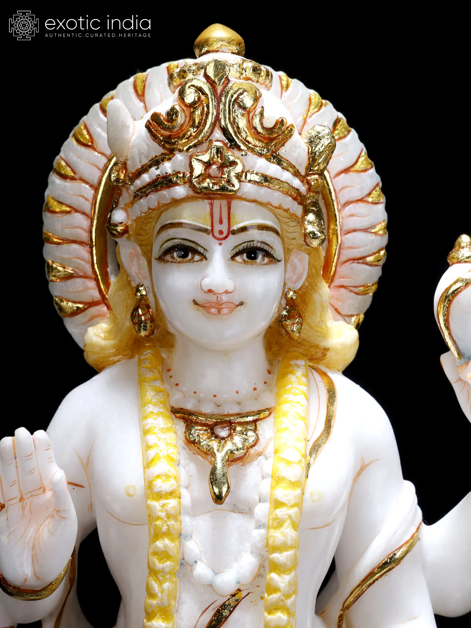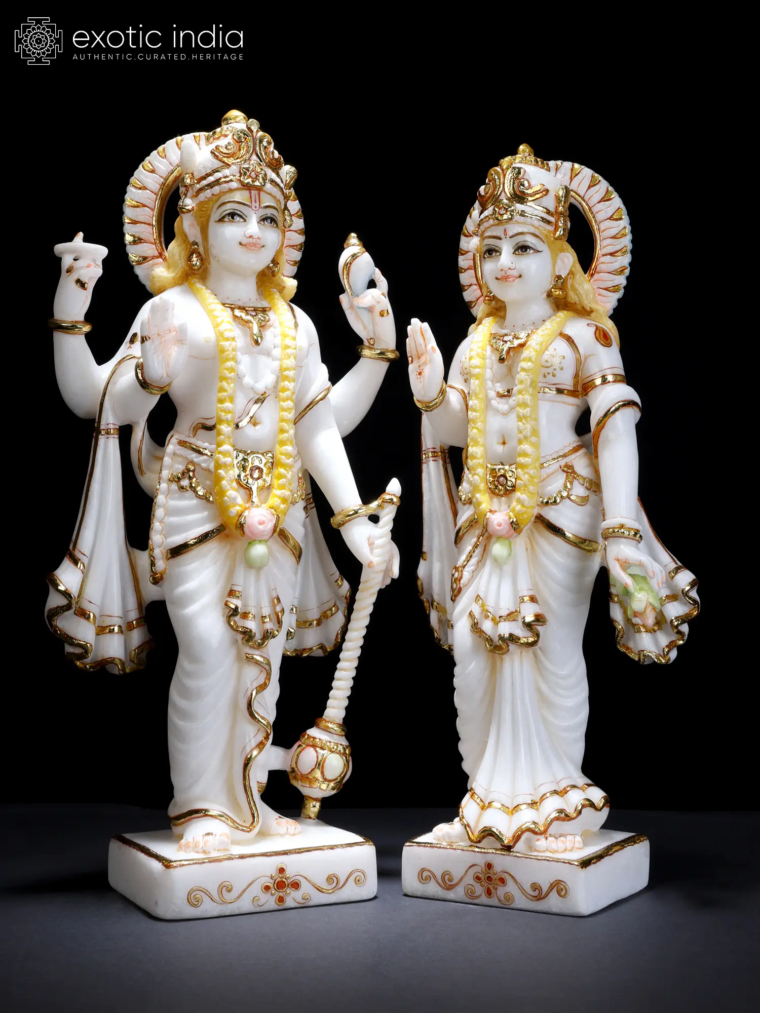 18" Standing Vishnu - Lakshmi in Blessing Gesture | Set of Two | White Marble Statues