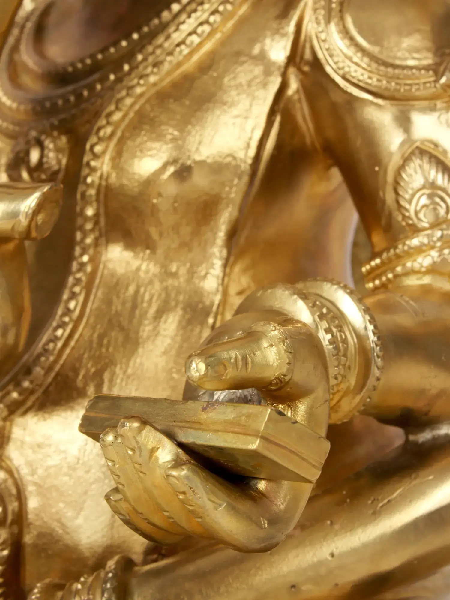 The rest of the murti bears every finesse of feature and the natural metallic sheen of a superior bronze alloy. These are characteristic of the authentic reproduction of Hoysala-period art.