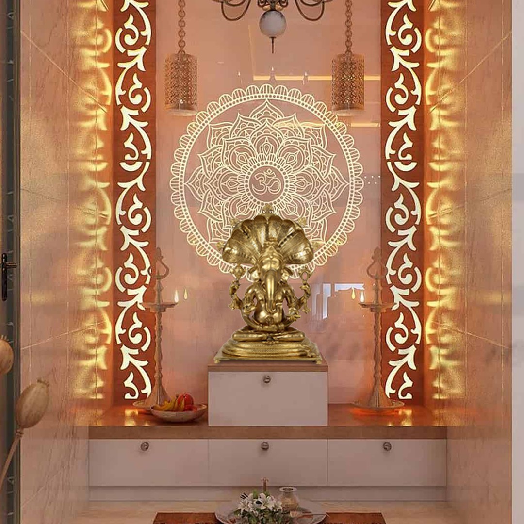 A curious blending of Shaiva and Vaishnava traditions. This unusual Ganesha iconography features the son of Shiva with the Vaishnava tilaka on His forehead. Yet, He is a contemplative stance like His father’s Adinath-roopa and is possessed of a multitude of arms (shashabhujadhari).