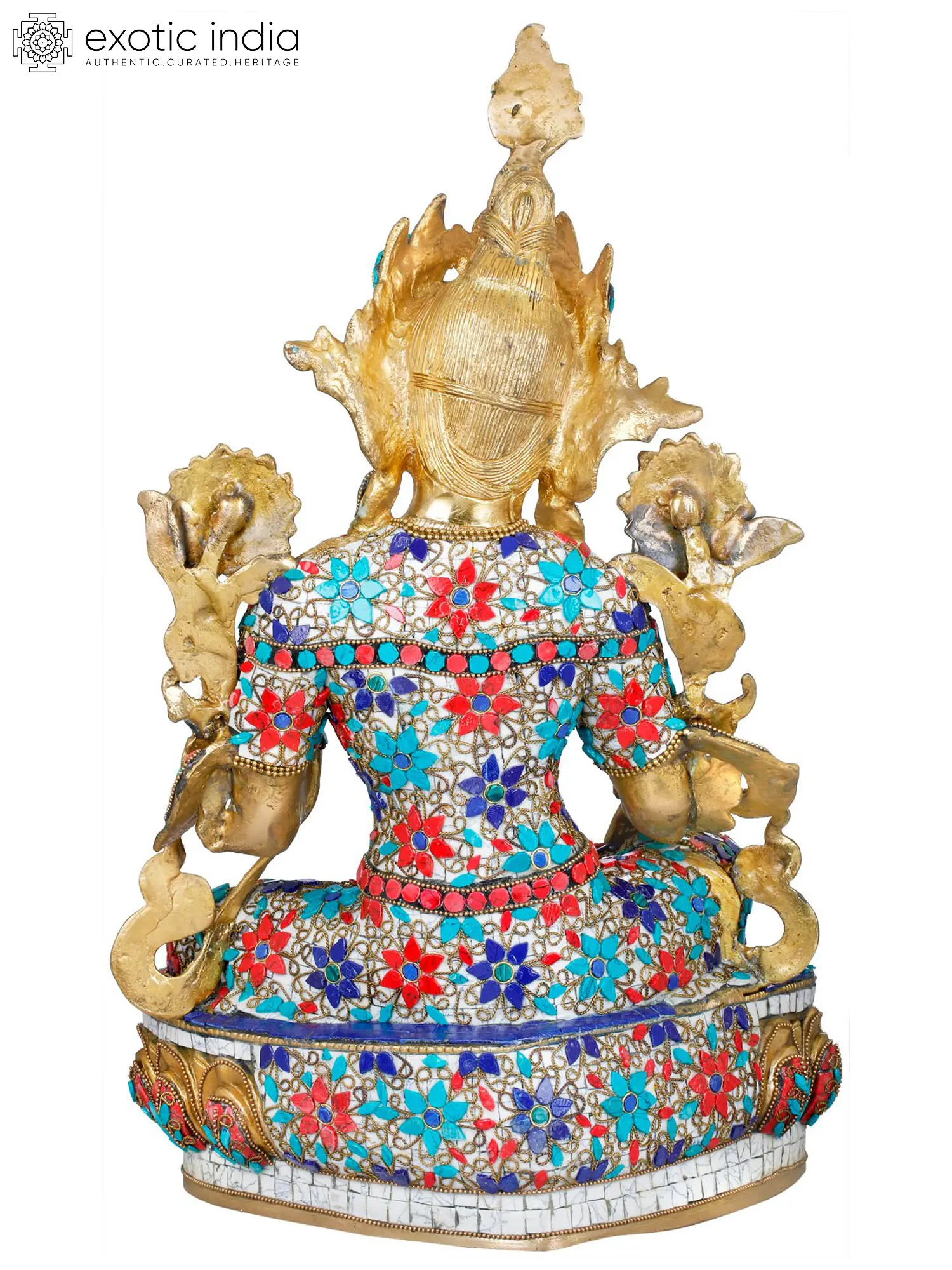 18" Tibetan Buddhist Goddess Green Tara In Brass | Handmade | Made In India