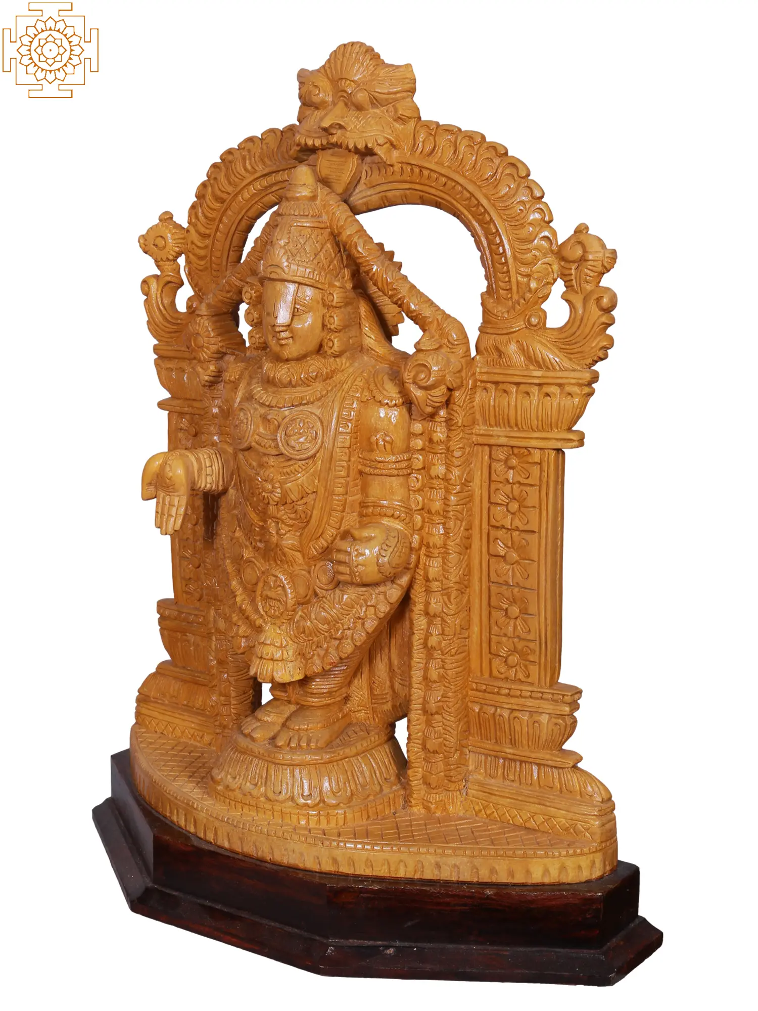 18'' Tirupati Balaji Standing On Yali Throne | Wooden Statue