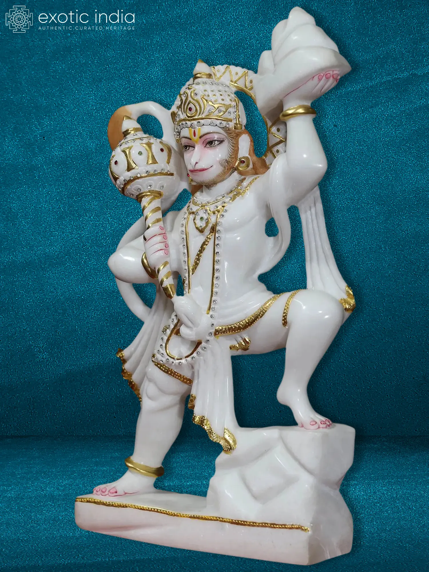 4" Blessing Lord Hanuman Statue with Inlay Work in Brass | Handmade