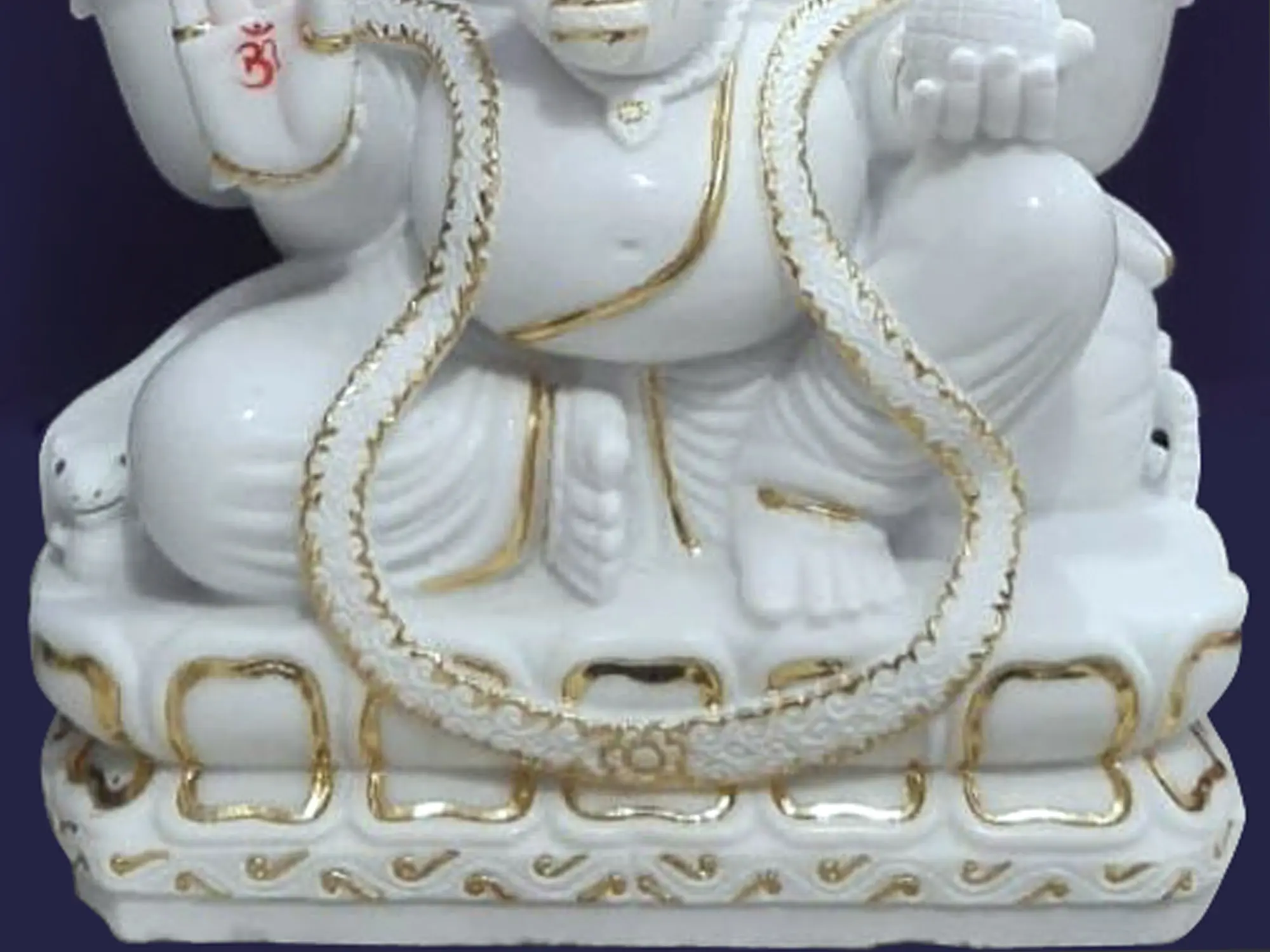 This statue is more than just an idol; it is a work of art that speaks of meticulous craftsmanship and deep reverence. The sculptor has captured the gentle yet powerful essence of Lord Gajanana, imbuing the marble with life and spirit. The smooth contours of his form, the delicate curve of his trunk, and the serene expression on his face all contribute to an overwhelming sense of peace and divinity. The judicious use of gold detailing adds a regal touch, making this piece a striking centerpiece for any altar, meditation room, or living space. Whether you are a devout follower or an admirer of fine artistry, this statue serves as a constant reminder of auspicious beginnings, the pursuit of knowledge, and the overcoming of challenges on life's journey. It is a piece designed to inspire, to comfort, and to bring a touch of divine elegance into your home.