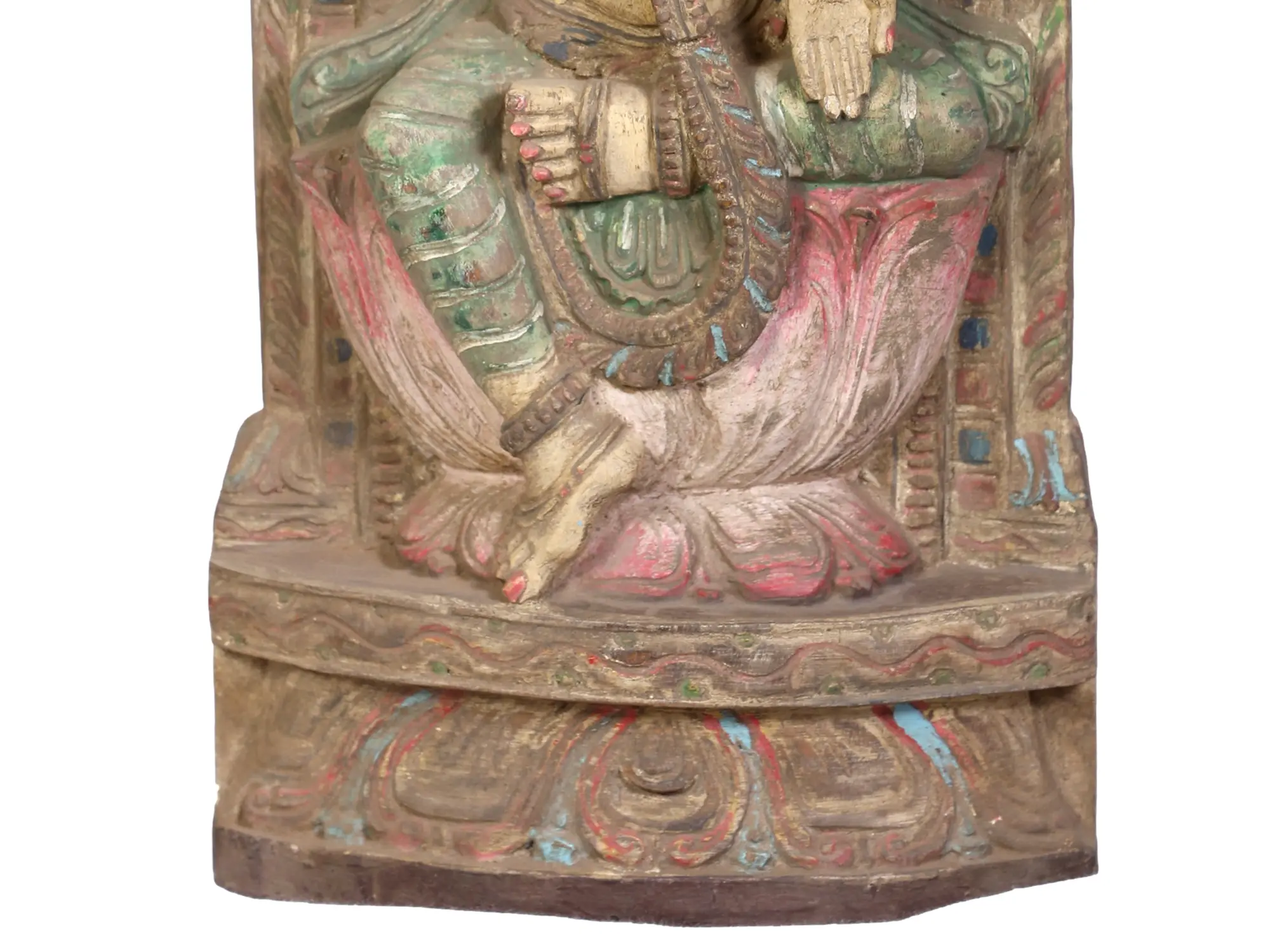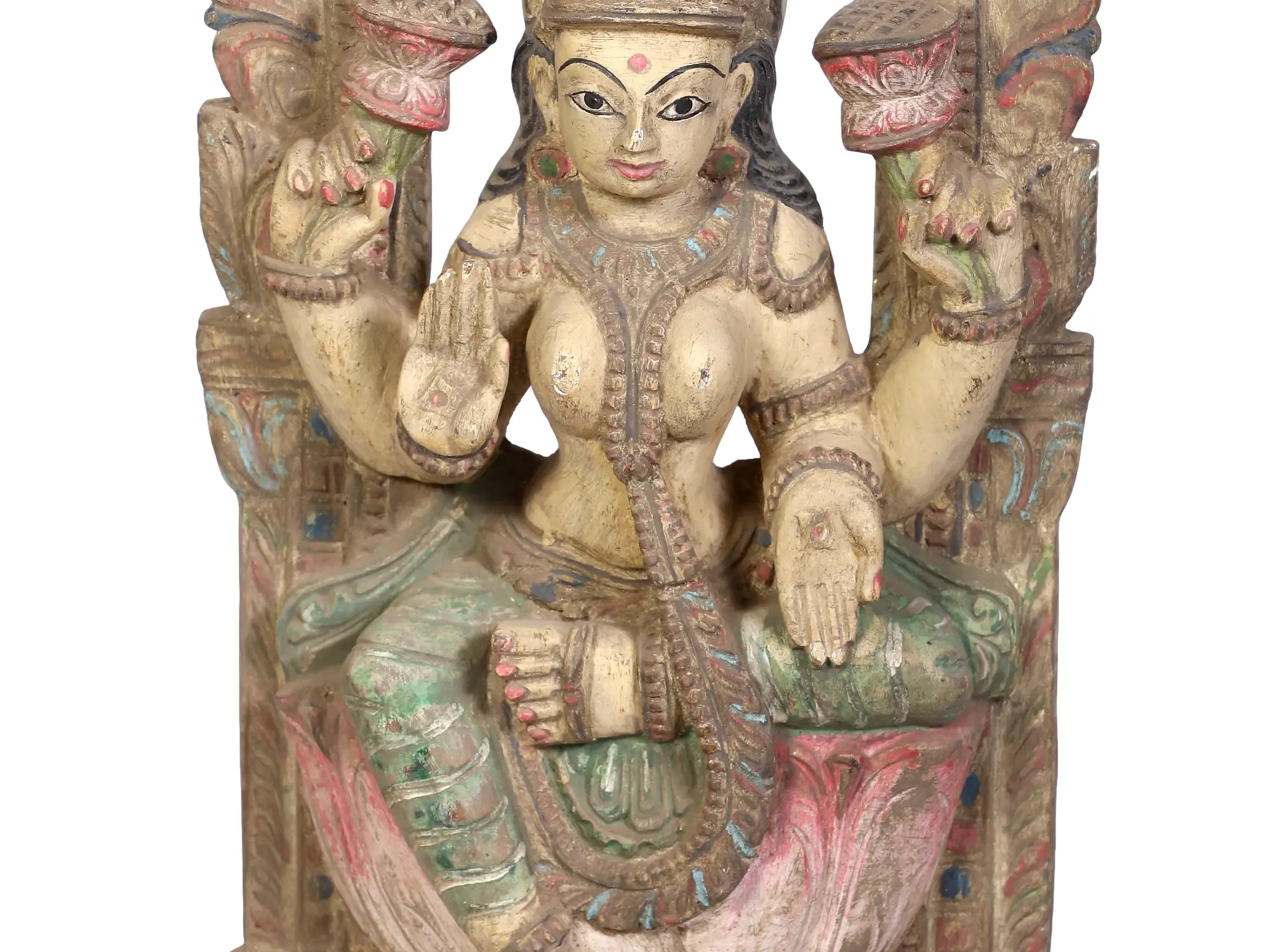 24" Blessing Goddess Lakshmi Seated on Lotus | Wood Carving