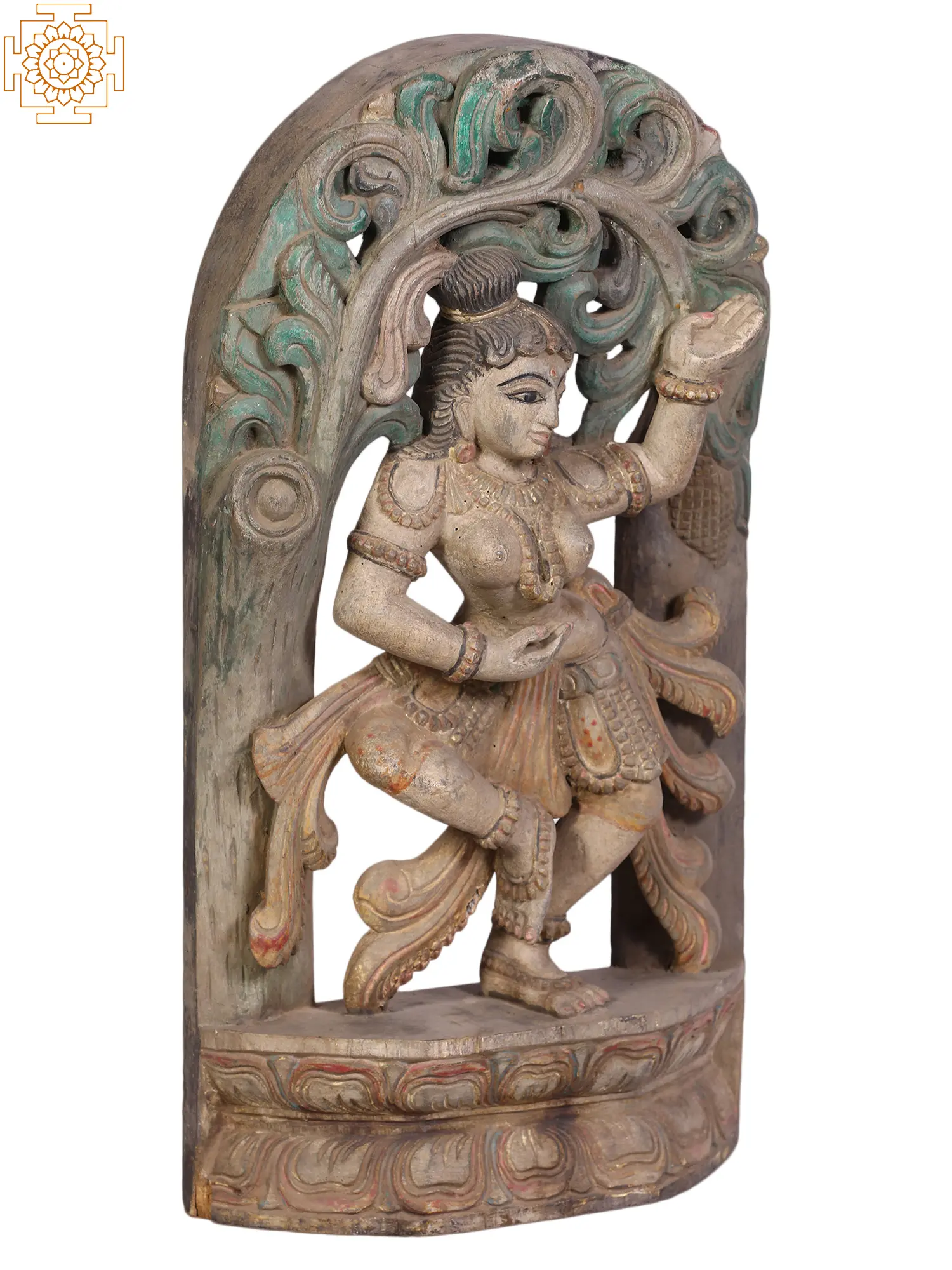 Temple Apsaras Sculpture | Handcrafted South Indian Wood Art