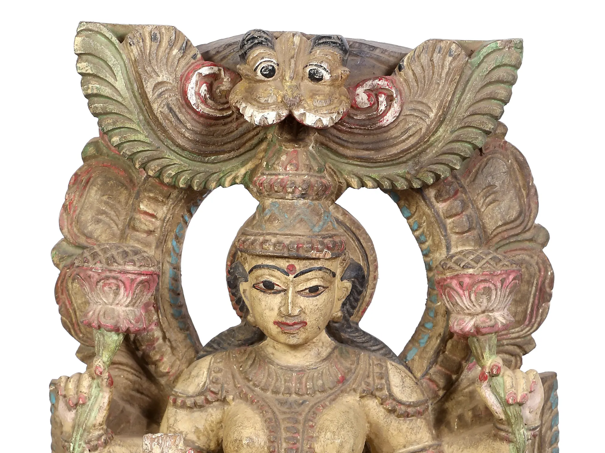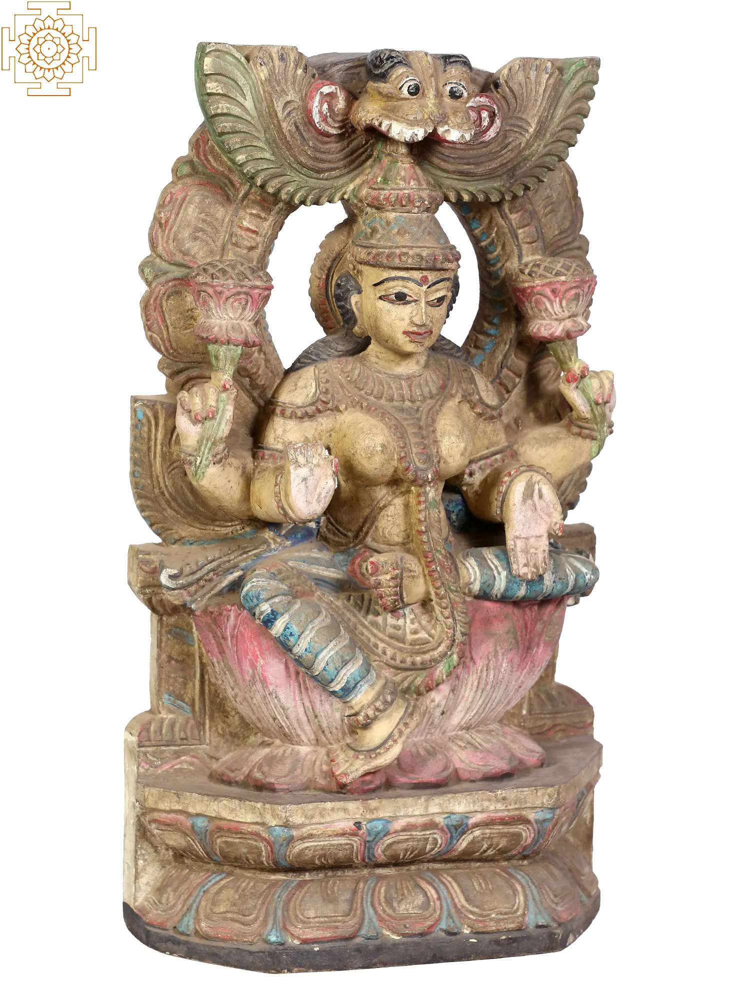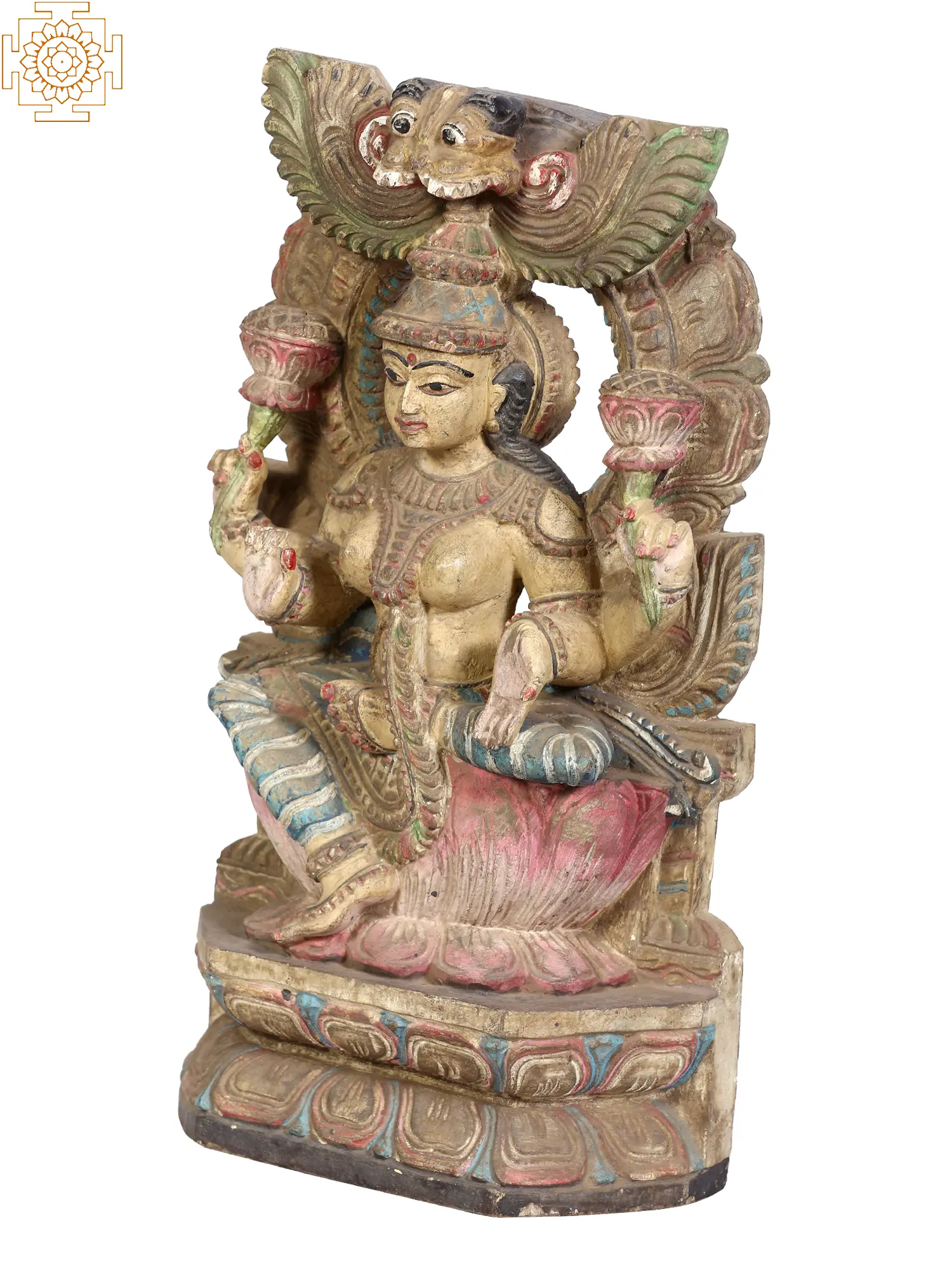 20" Blessing Goddess Lakshmi Seated on Lotus | Wood Carving