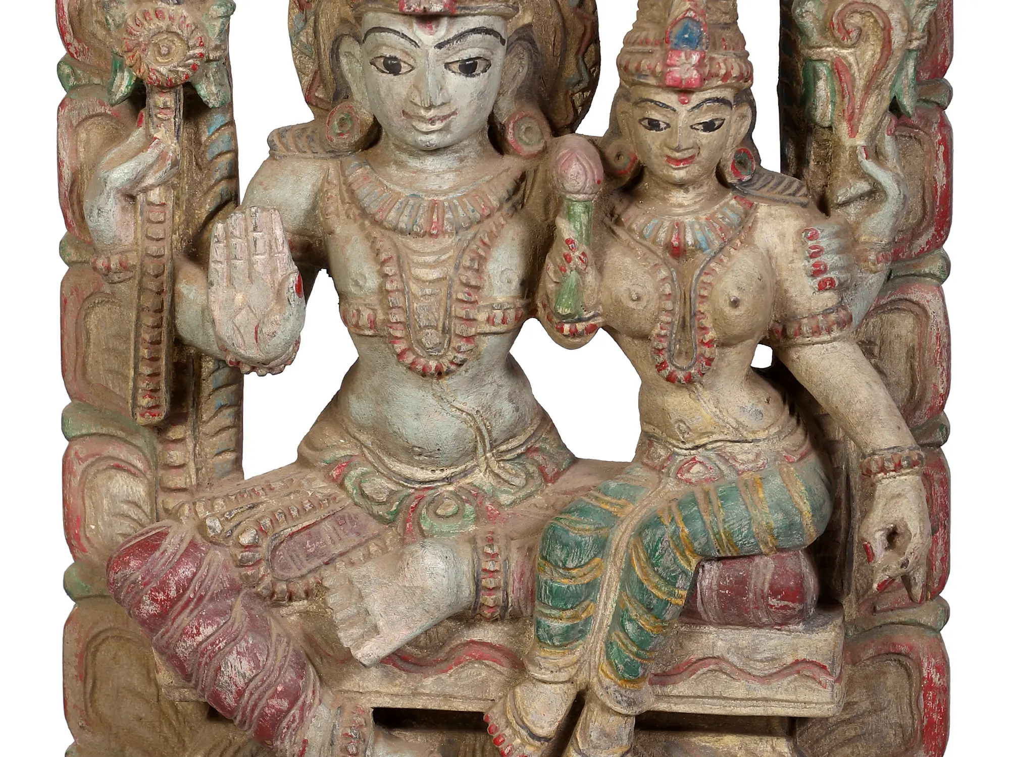 36" Lord Vishnu With Goddess Lakshmi | Wood Statue and Wall Hanging
