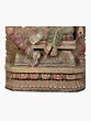 Lord Vishnu is revered as one of the principal deities in Hinduism, part of the Trimurti (the trinity of supreme divinity) alongside Brahma and Shiva. He is the cosmic shepherd who intervenes in the affairs of the world through his avatars, such as Rama and Krishna, to restore cosmic order and righteousness. His divine consort, Lakshmi, is central to his divine play and is worshipped for her blessings of material and spiritual wealth. Their presence together symbolizes the interconnectedness of all creation, where preservation and prosperity are intrinsically linked. The throne itself, often depicted as a lotus or an elaborate seat, signifies their supreme status and dominion over the universe. The multi-tiered base of the throne in this carving, reminiscent of the lotus petals, further emphasizes their divine pedestal. The intricate archway above them, possibly depicting a celestial canopy or the hood of the divine serpent Shesha Naga (upon whom Vishnu often rests), adds a layer of cosmic grandeur to the scene. This tableau is not merely an image but a focal point for devotion, meditation, and the invocation of divine grace.