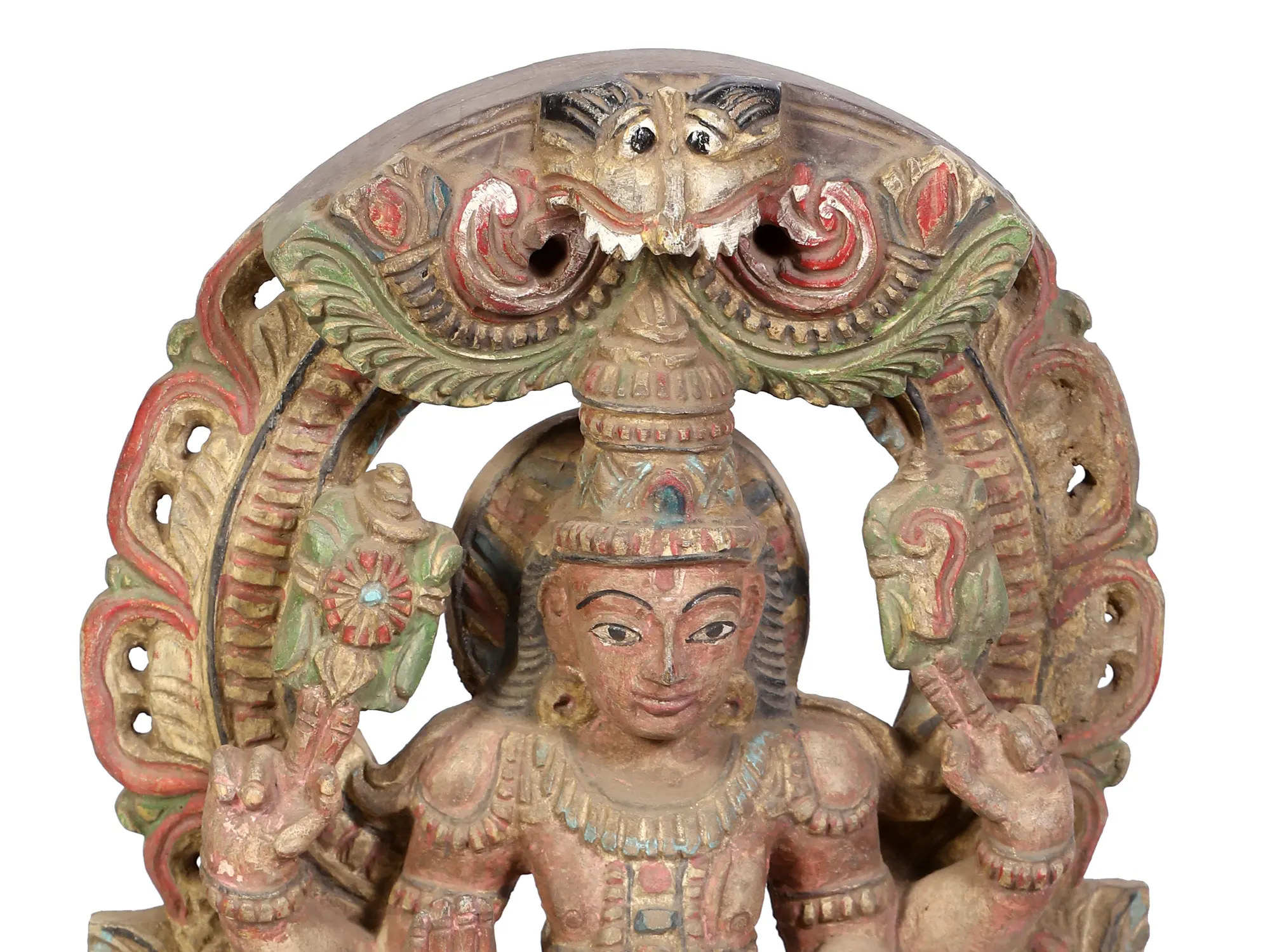 36" Lord Vishnu With Goddess Lakshmi | Wood Statue and Wall Hanging