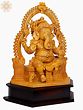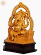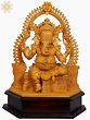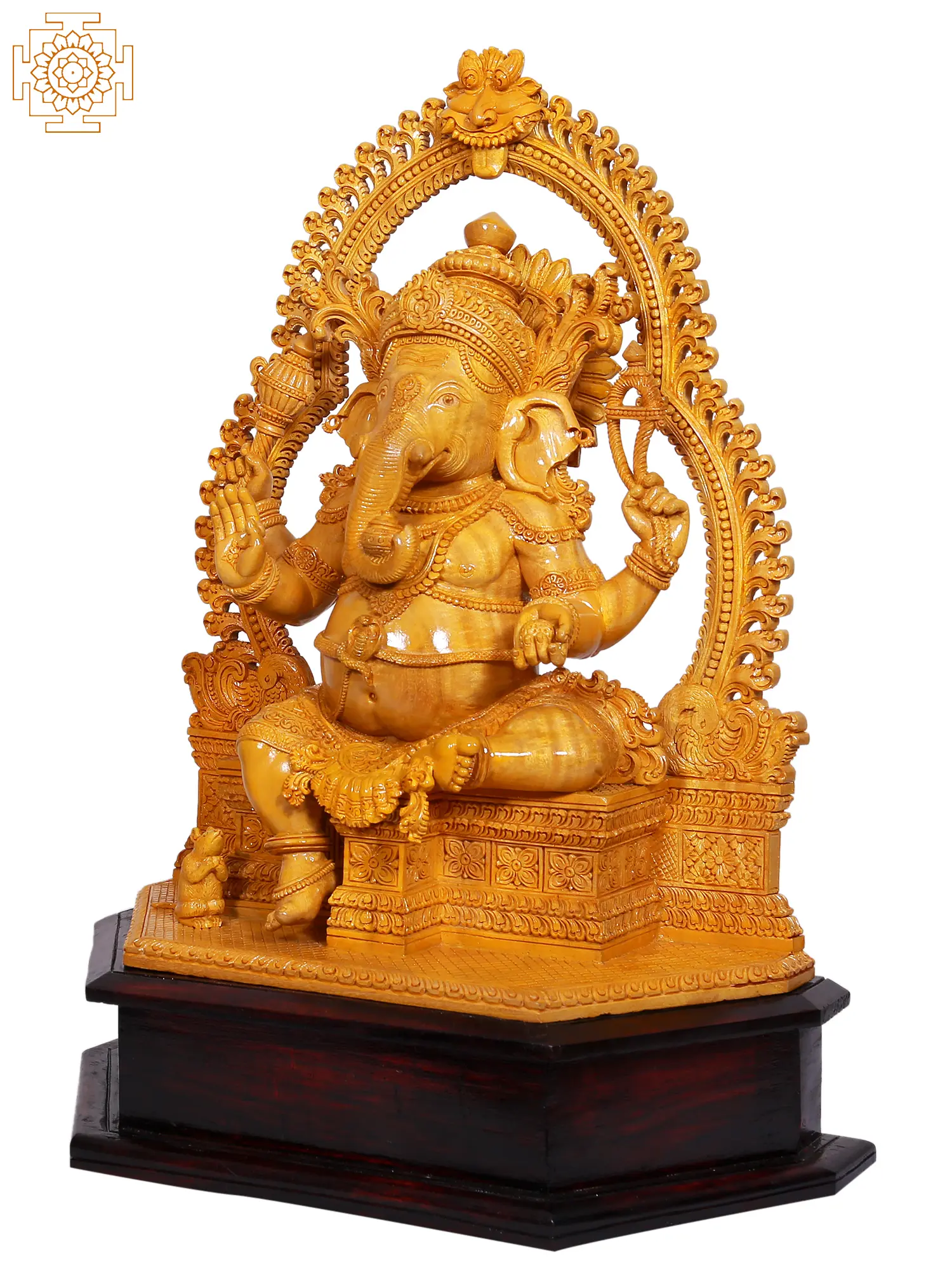 18" Wooden Prabhu Ganesha Seated on Throne with Kirtimukha