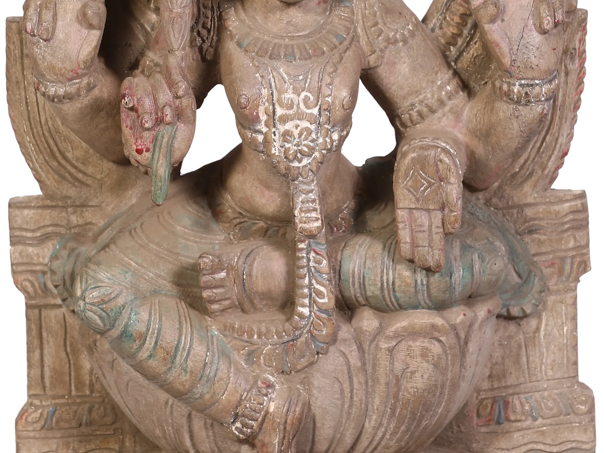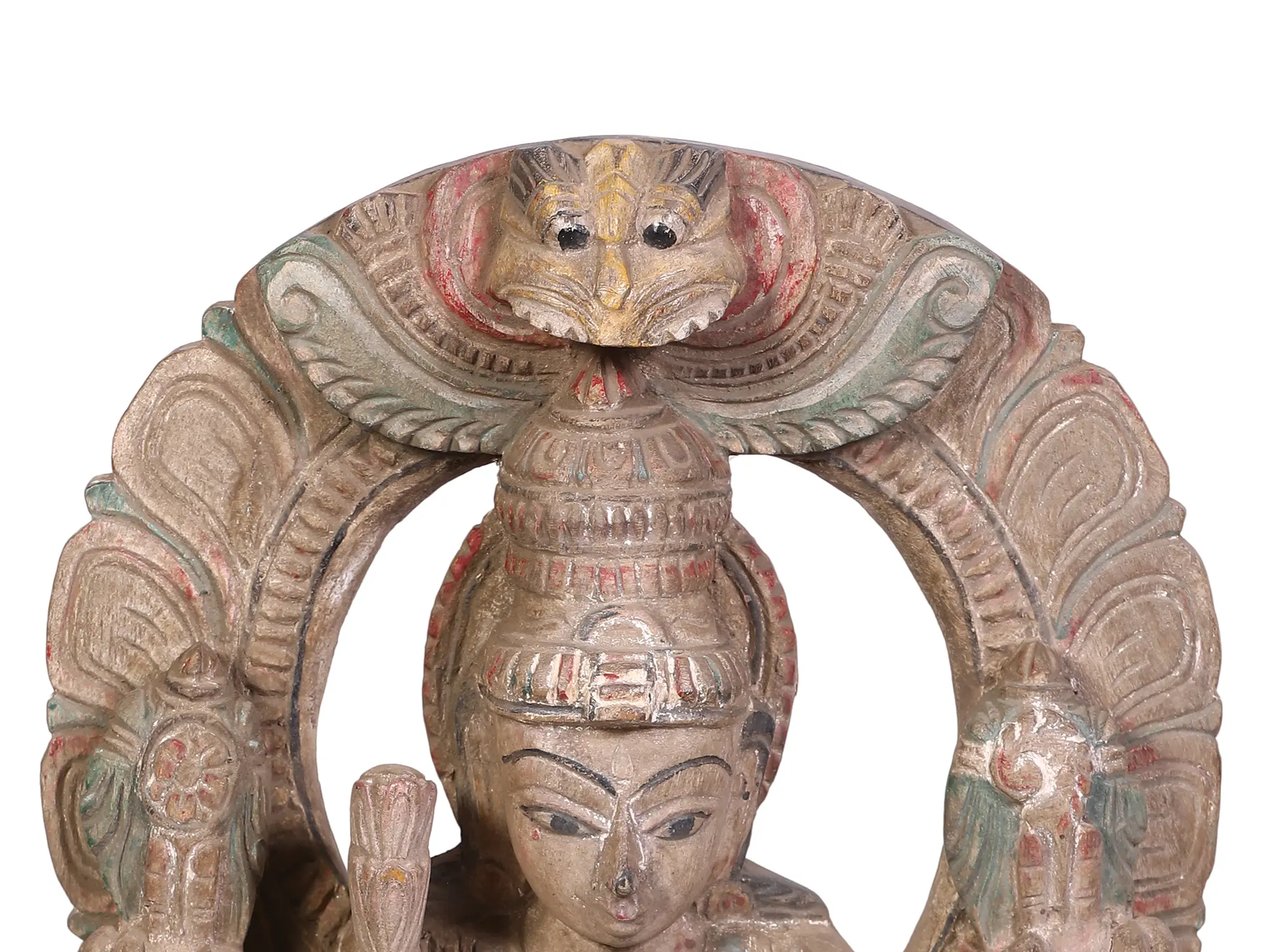 36" Lord Vishnu With Goddess Lakshmi | Wood Statue and Wall Hanging
