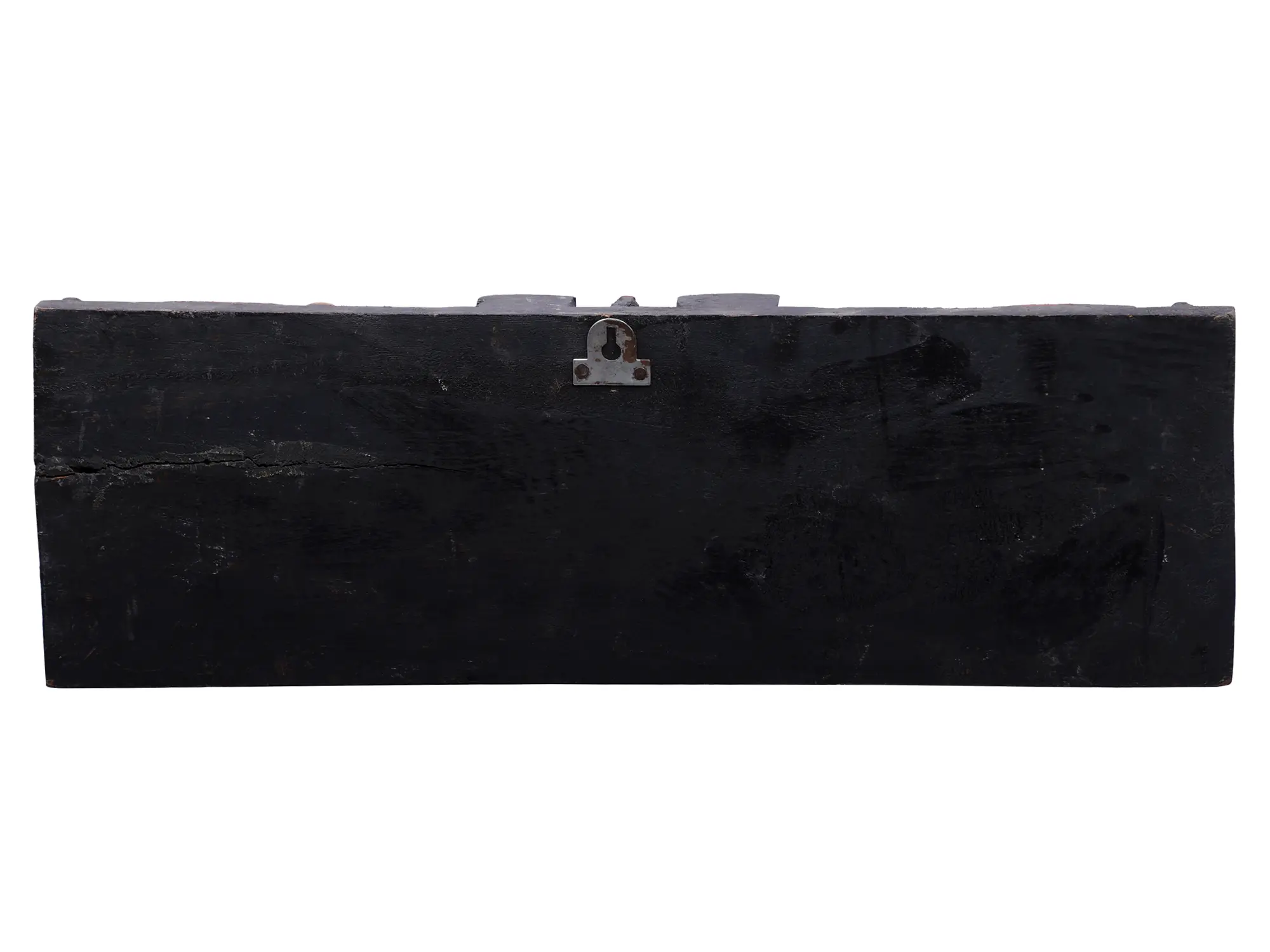 This wall panel is a beautiful example of artisanal skill, carved from high-quality wood and finished with rich, contrasting colors that highlight the intricate details. The dark background makes the golden and earthy tones of the symbols and figures pop, creating a striking visual impact. This piece not only serves as a beautiful addition to your home decor but also as a conduit to the rich cultural and spiritual heritage of India. Display it in your living room, puja room, or entryway to create an atmosphere of sanctity and divine blessing. It makes for a thoughtful and meaningful gift for loved ones, conveying wishes of well-being and spiritual harmony.
