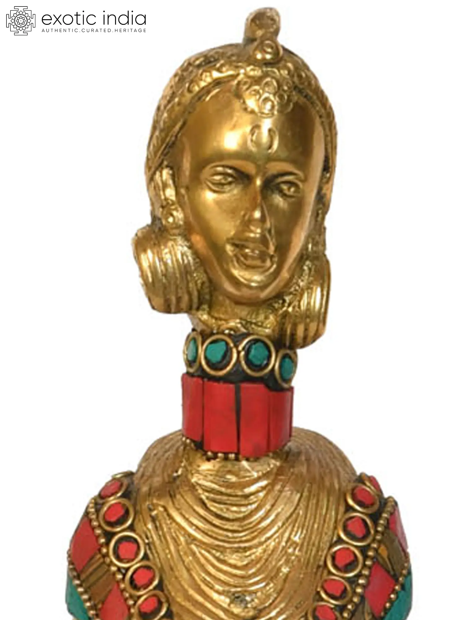 This exquisite brass statue captures a timeless moment of daily life, depicting an African tribal woman engaged in the fundamental task of pounding rice. Rendered with remarkable detail and artistry, the figure stands tall, her posture conveying a sense of purpose and strength. The warm, lustrous brass is brought to life with vibrant inlays of red and turquoise, evoking the rich palette of traditional African textiles and adornments. Each tile, meticulously placed, creates a mosaic of color that adorns her garments and jewelry, highlighting her beauty and cultural identity.