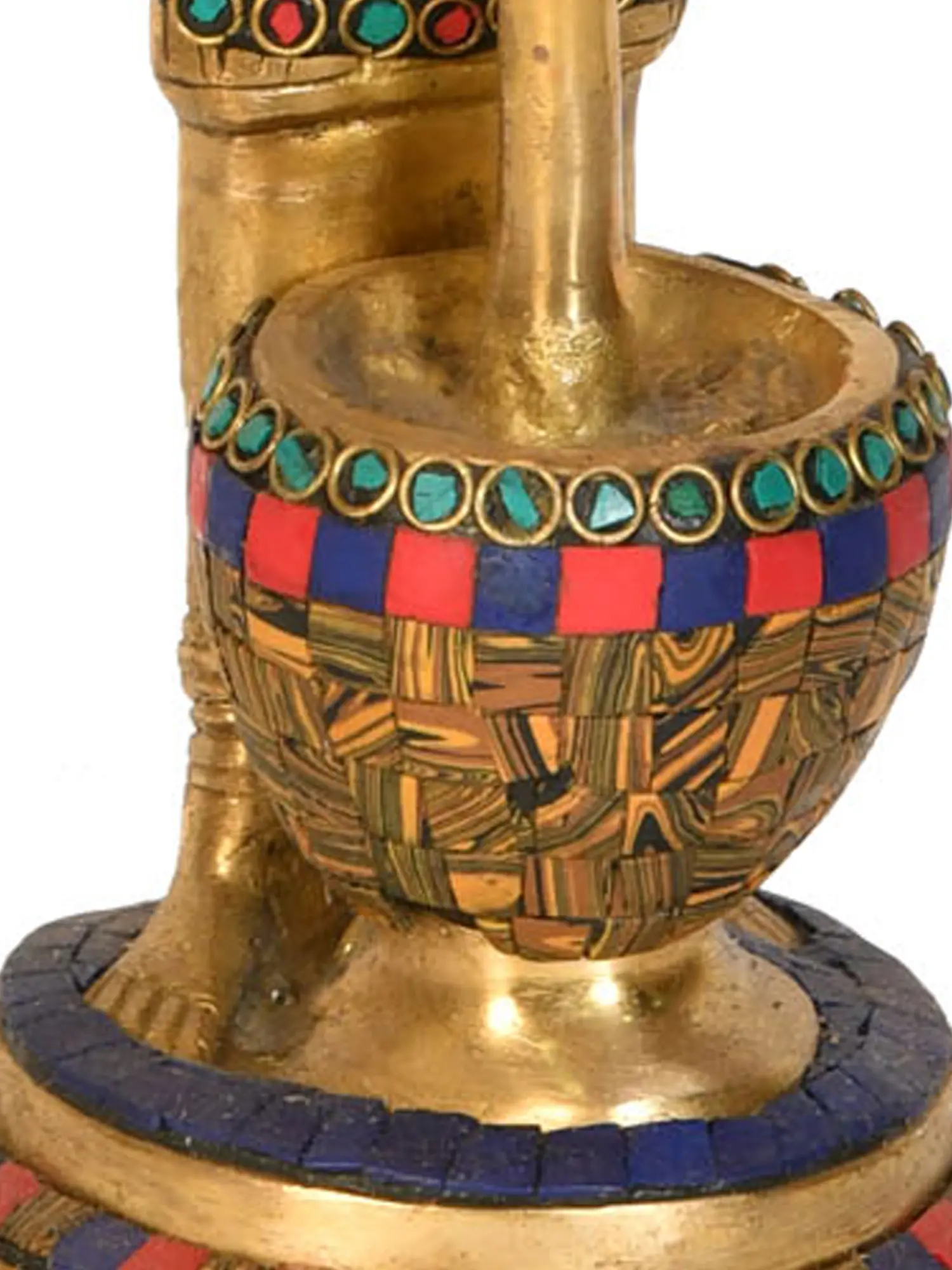 Handmade in India, this sculpture is a testament to the enduring legacy of artisanal craftsmanship. The artisans have skillfully sculpted the brass, imbuing the figure with a natural grace and dignity. The intricate inlay work, utilizing materials like turquoise and coral or their imitations, adds a layer of opulence and visual interest, reflecting a tradition of decorative arts that spans centuries. The choice of brass itself carries cultural significance, often associated with divinity and auspiciousness in various traditions, lending a sacred aura to the depiction of this everyday act. This piece serves as a bridge between cultures, offering a glimpse into the life and traditions of African communities through the lens of Indian artistry. It is a piece that resonates with the universal human experience of providing for oneself and one's family, rendered with an aesthetic that is both profound and captivating.