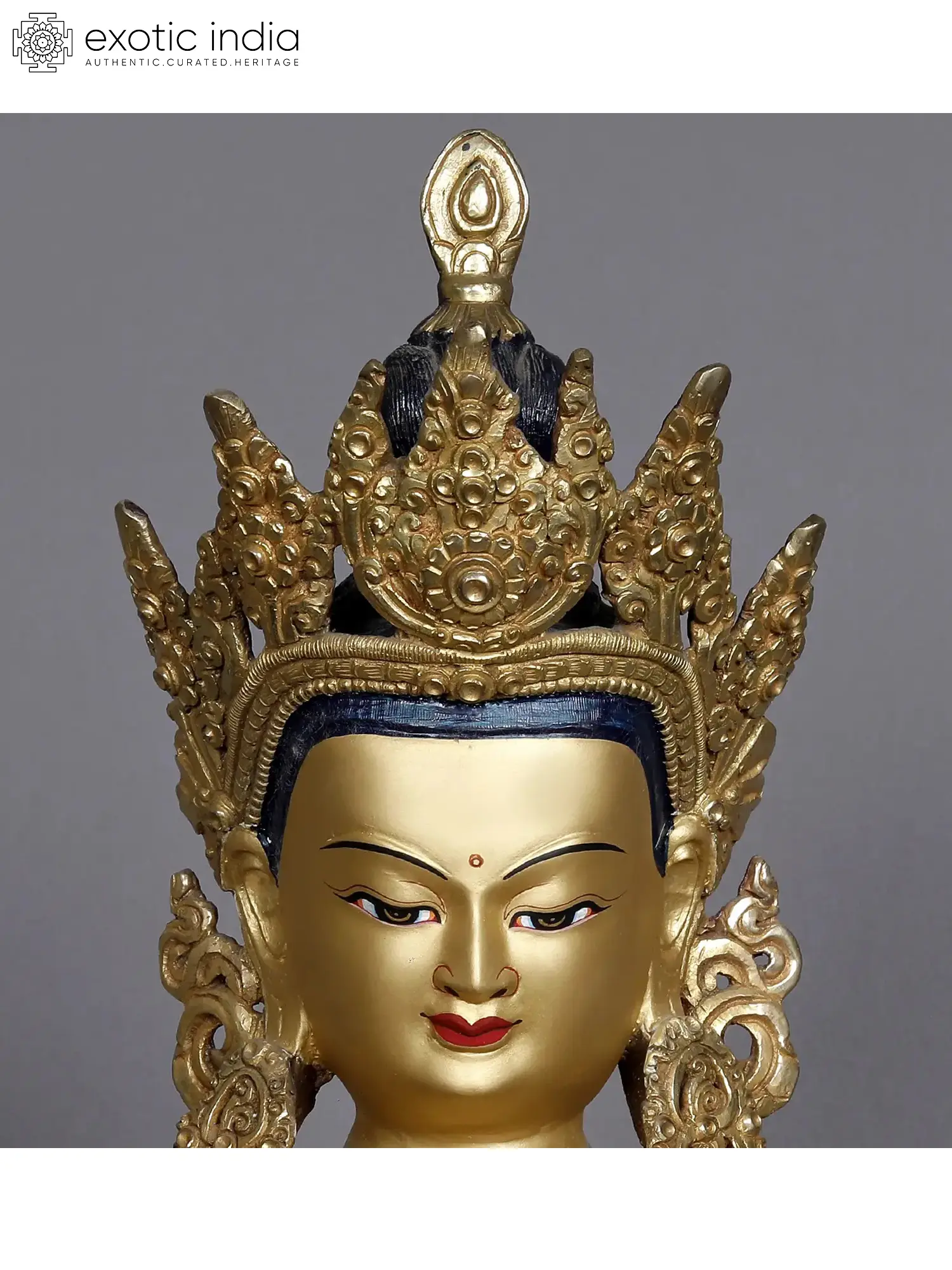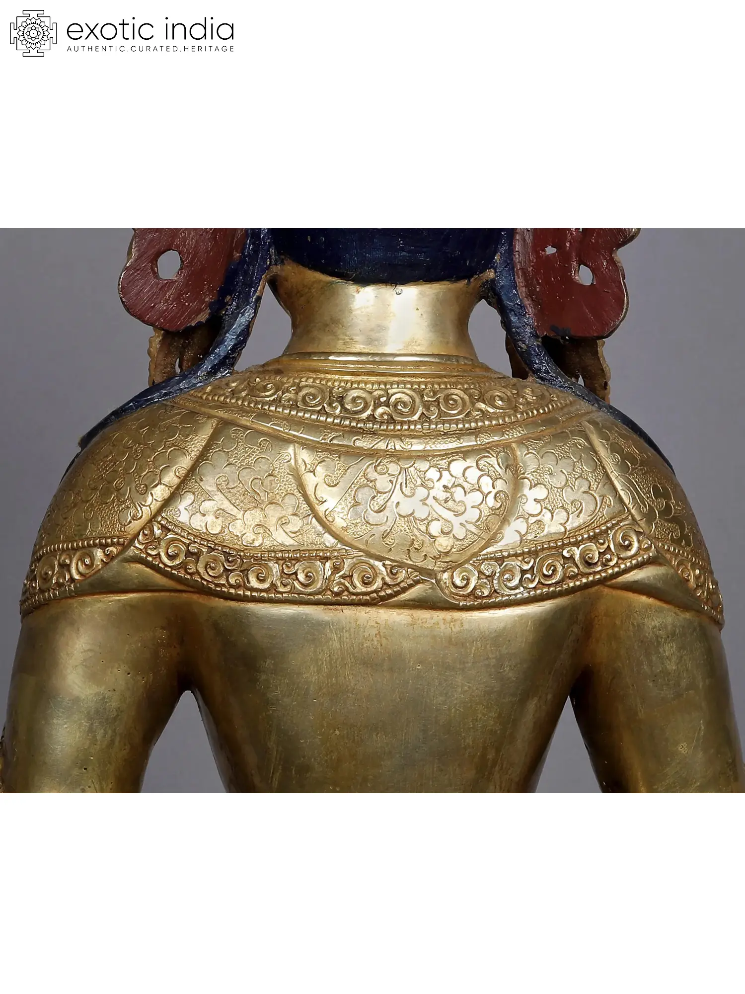 Aparmita, also known as Amitayus, is revered for the positive impact she brings to her devotees' lives. Her presence invokes blessings, wisdom, and spiritual abundance. In the realm of divine grace, this magnificent carving of Aparmita Idol from Nepal stands as an exquisite embodiment of enlightenment. The carving is embedded with intricate precision, and every detail adorning this statue showcases the rich artistry that breathes life into Aparmita's true form. With a compassionate gaze, she holds the vessel of longevity in her hand, symbolizing the bestowal of immortality and eternal life. This magnificent statue, steeped in ancient traditions, serves as a beacon of hope and enlightenment, guiding seekers on their spiritual path.