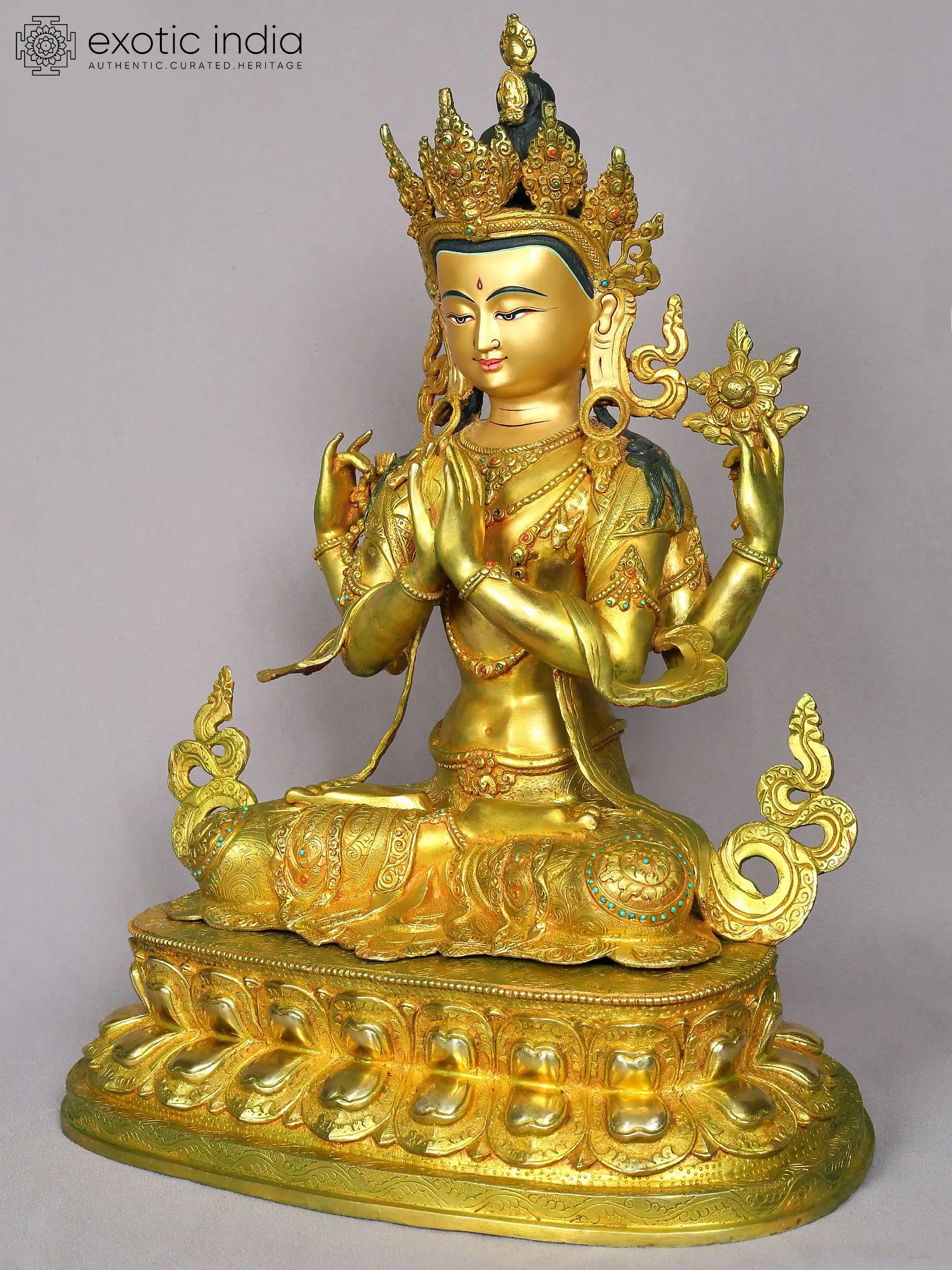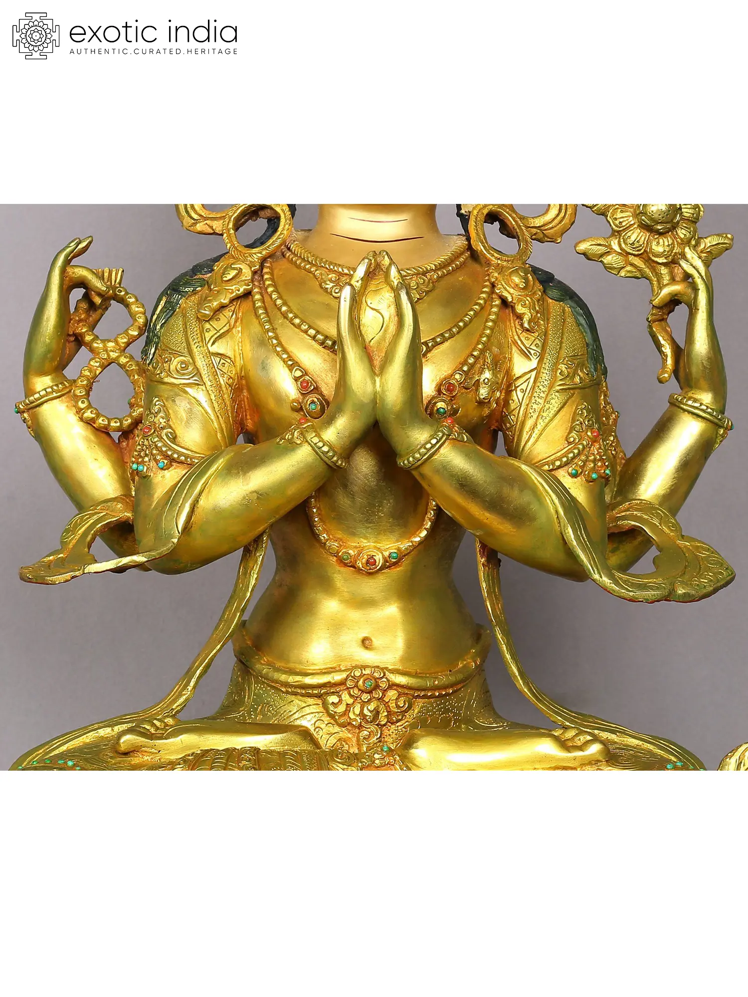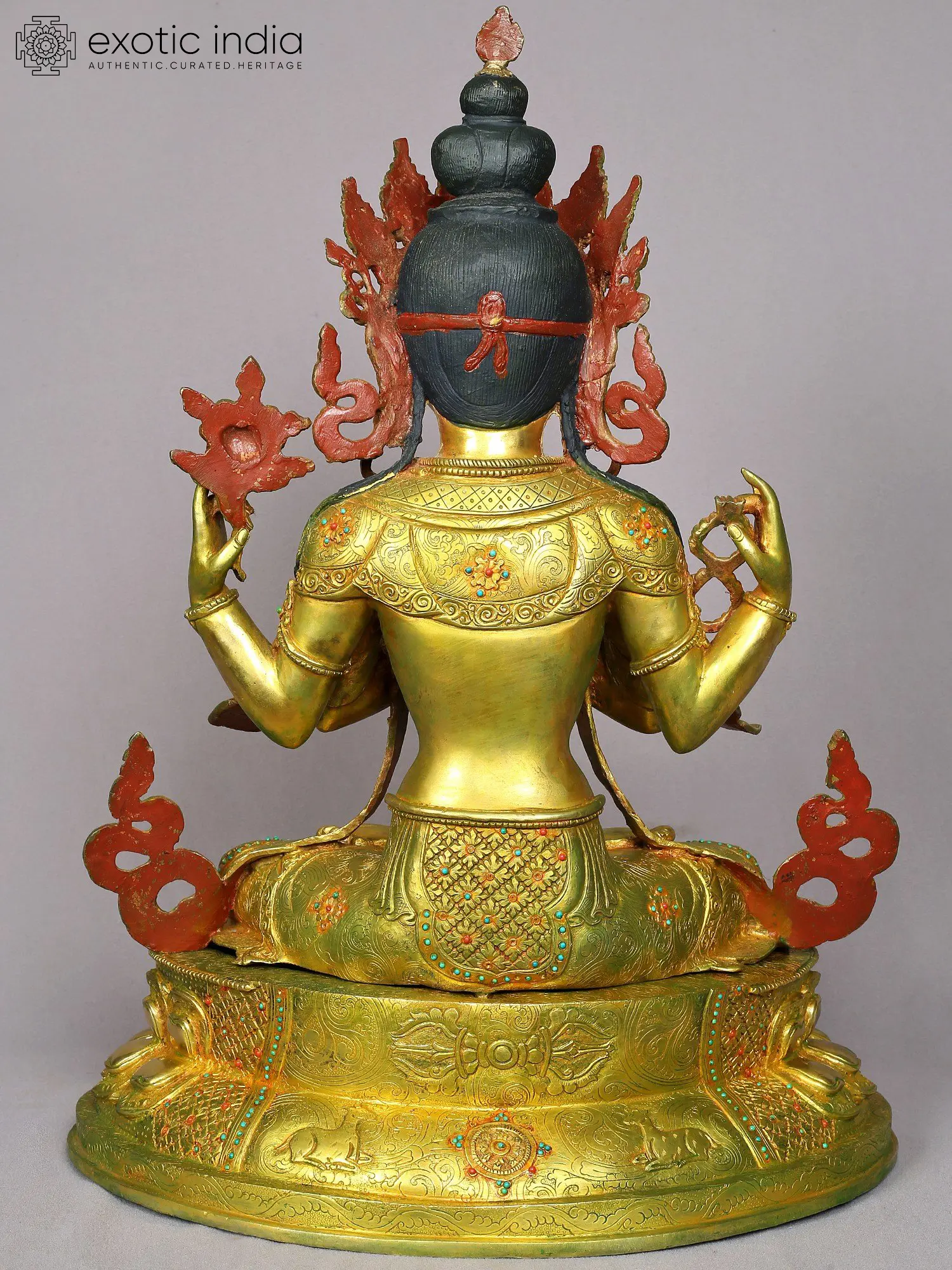 19" Avalokiteshvara Gilded Copper Statue from Nepal