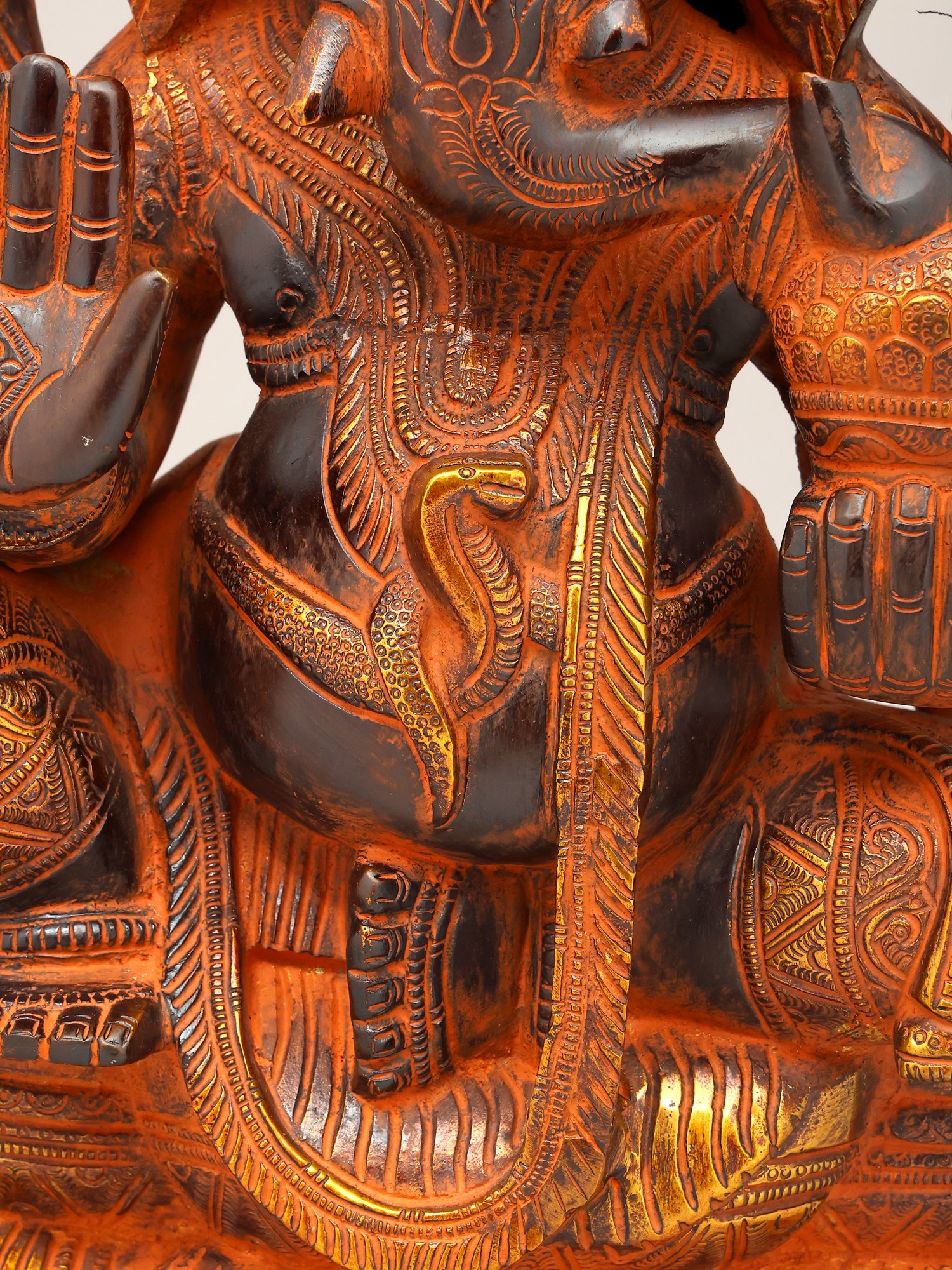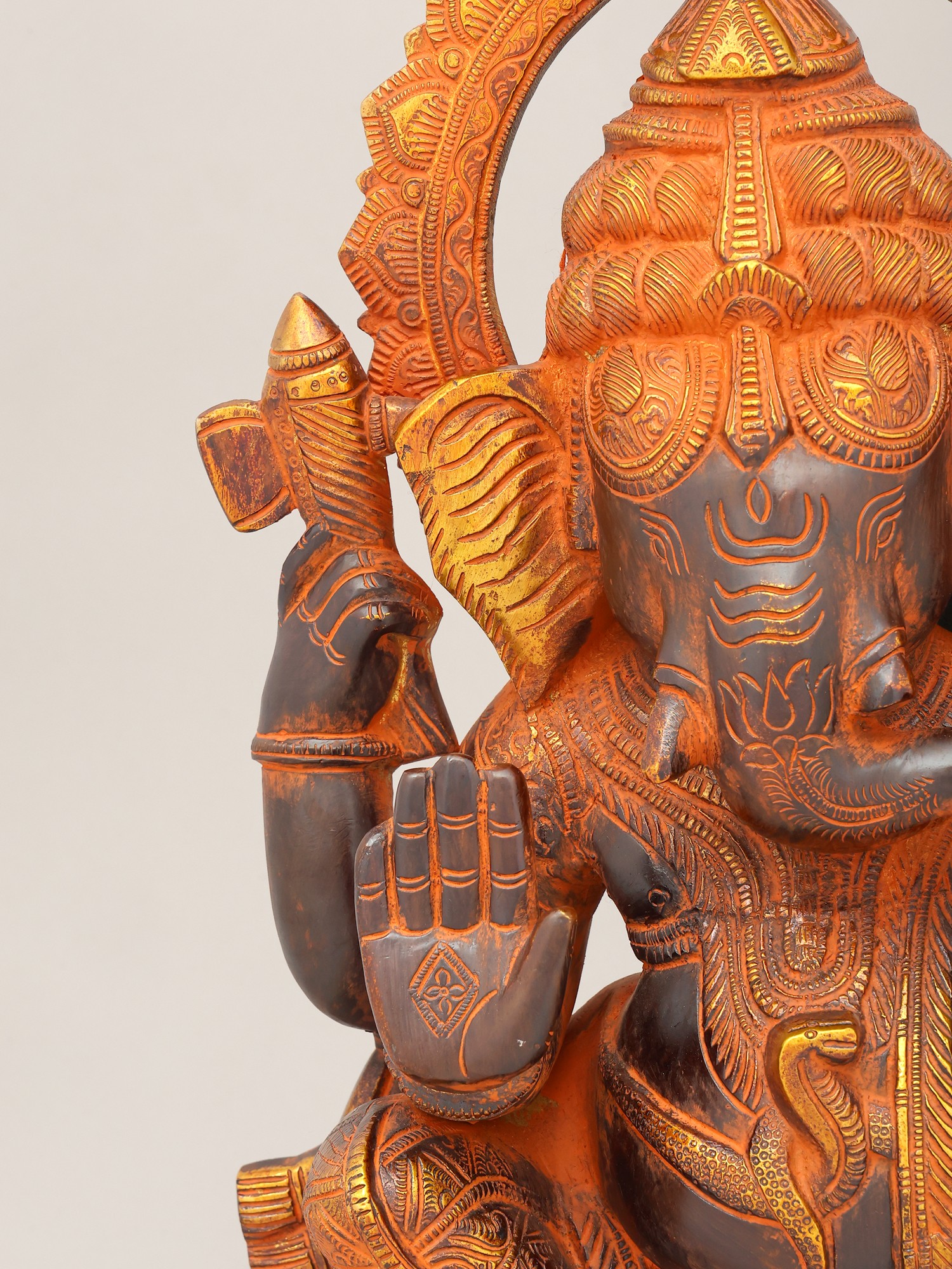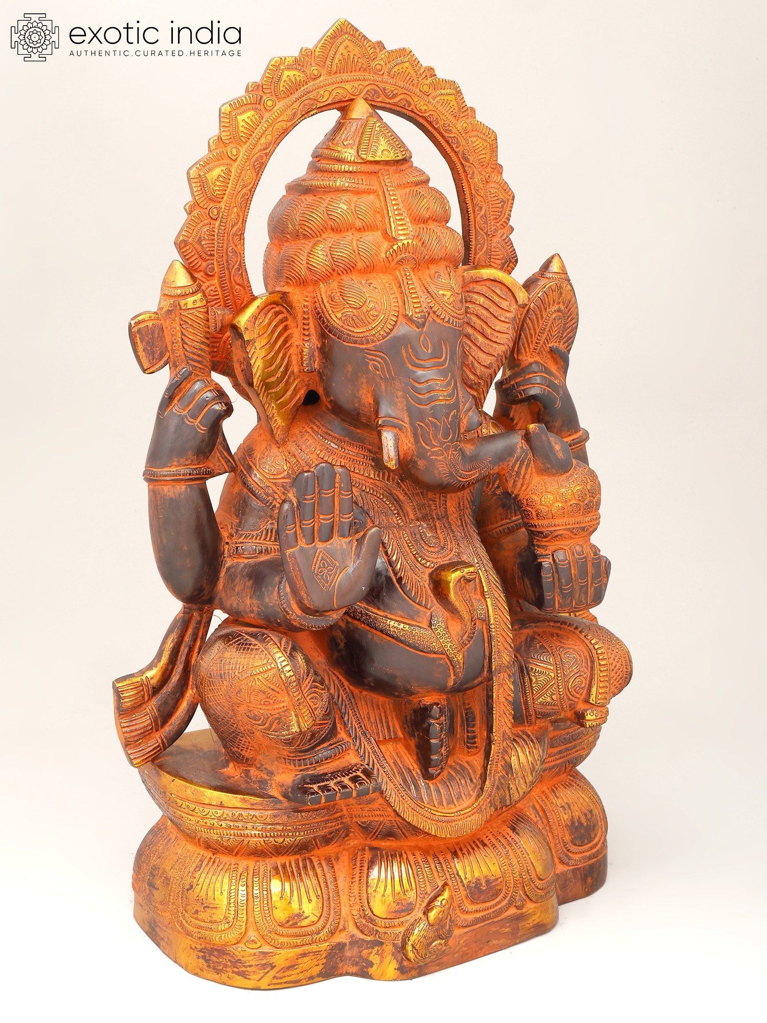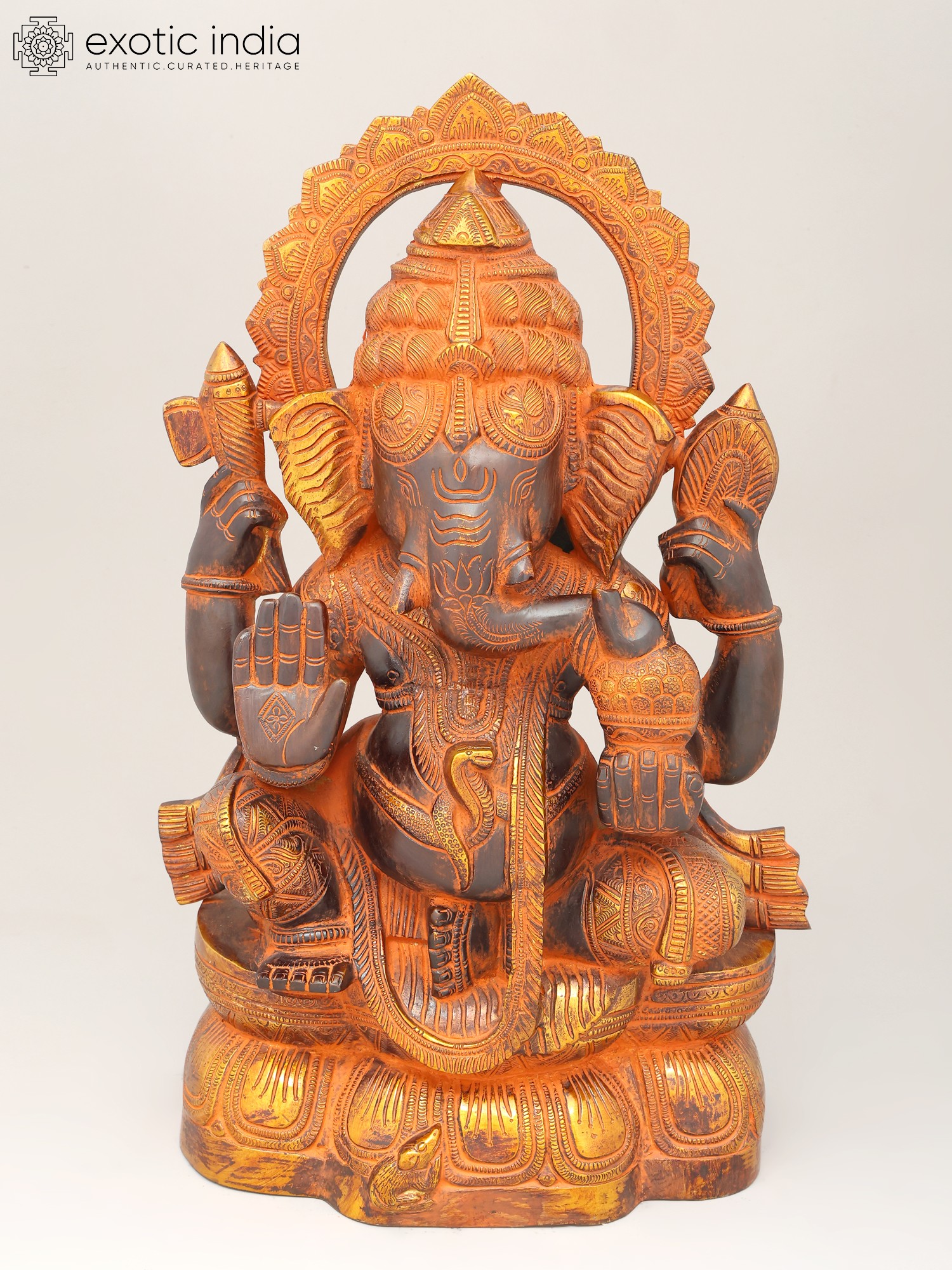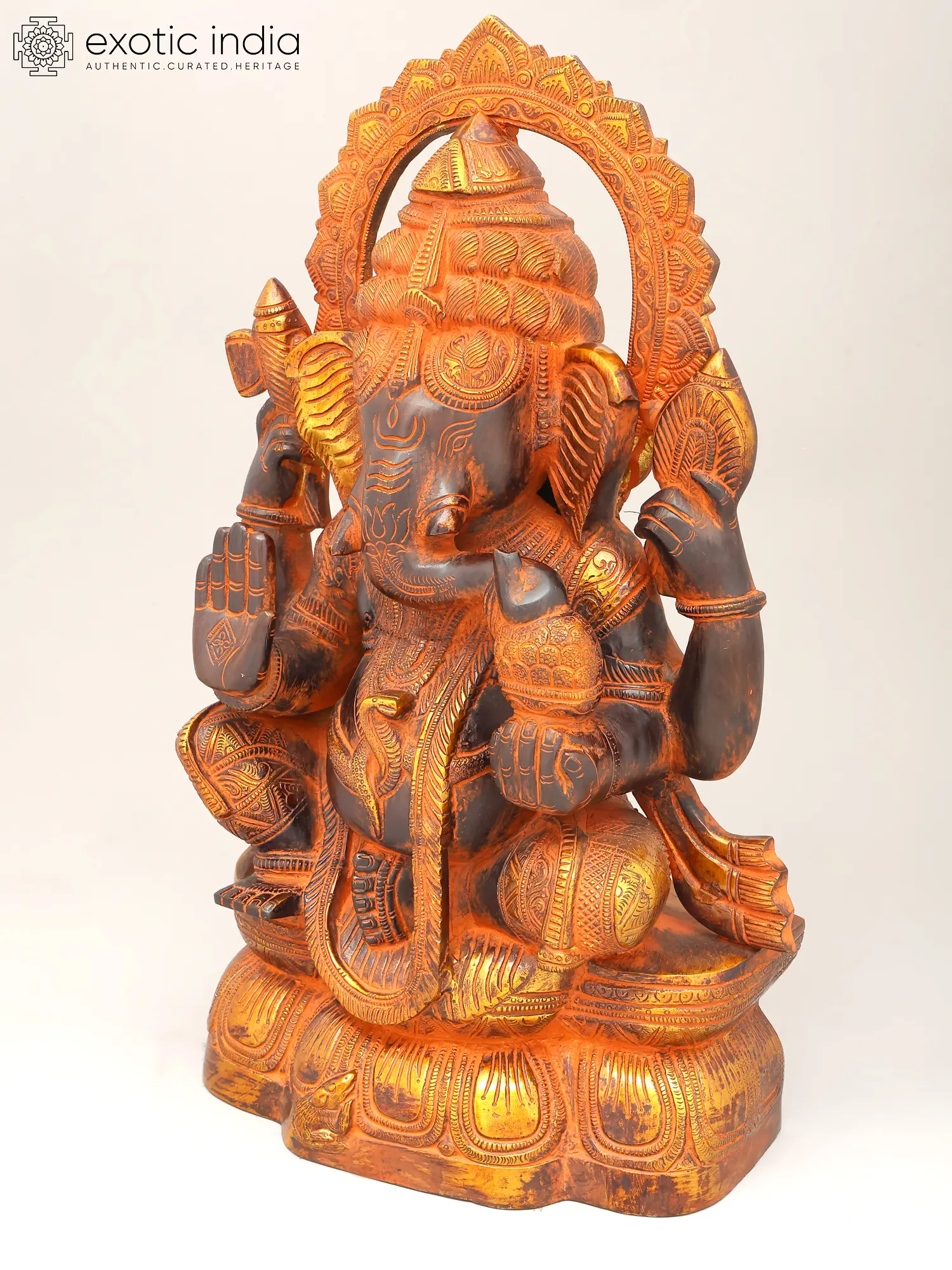 18" Lord Ganesha Statue on a Swing with Kirtimukha atop in Brass | Handmade | Made in India