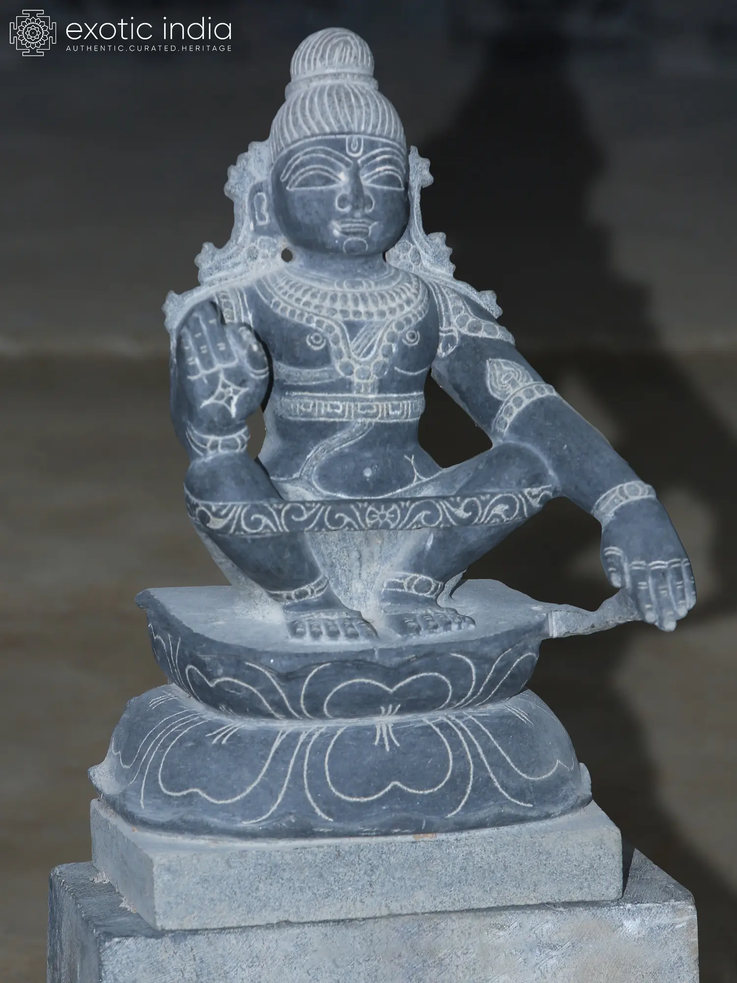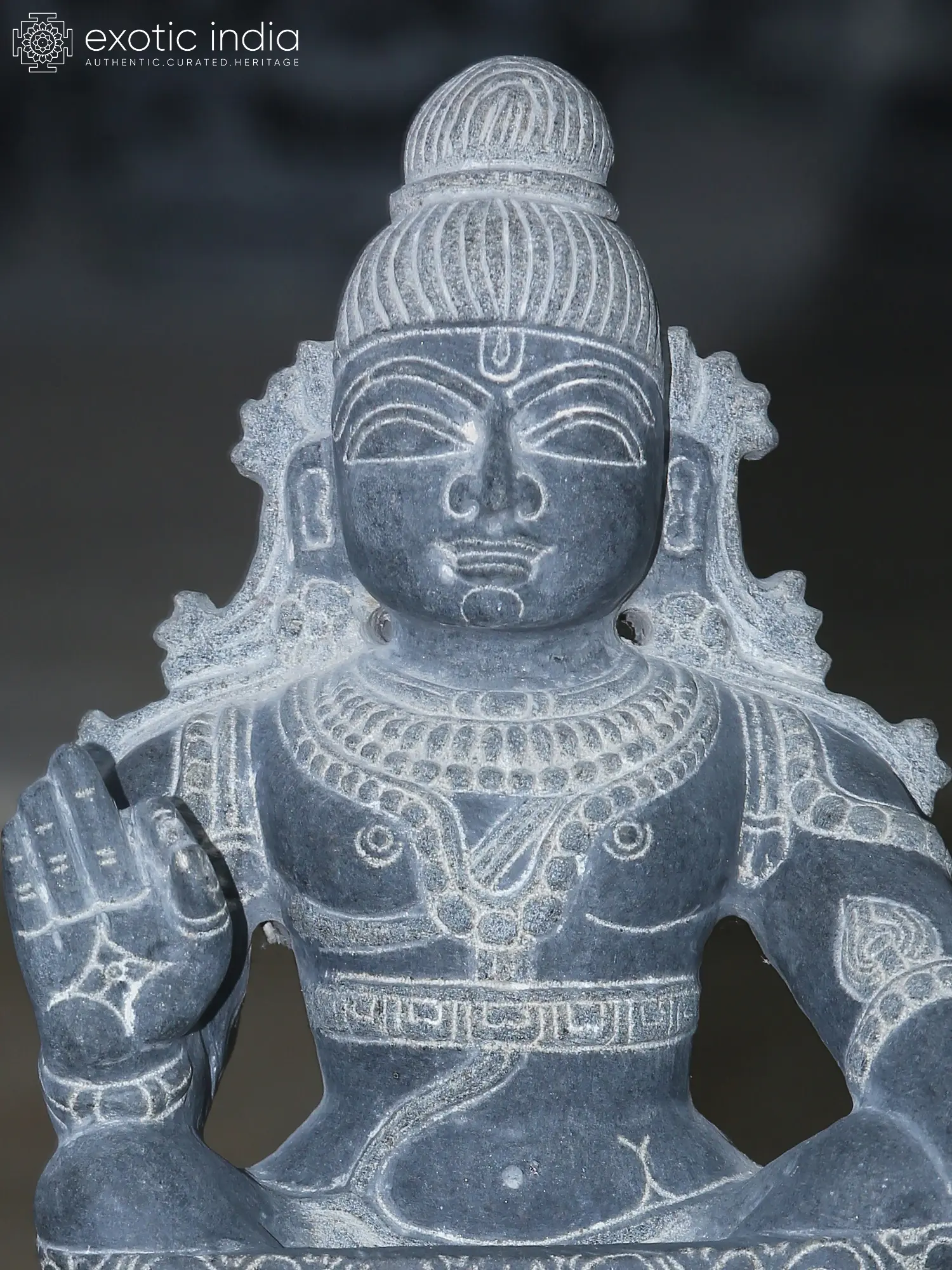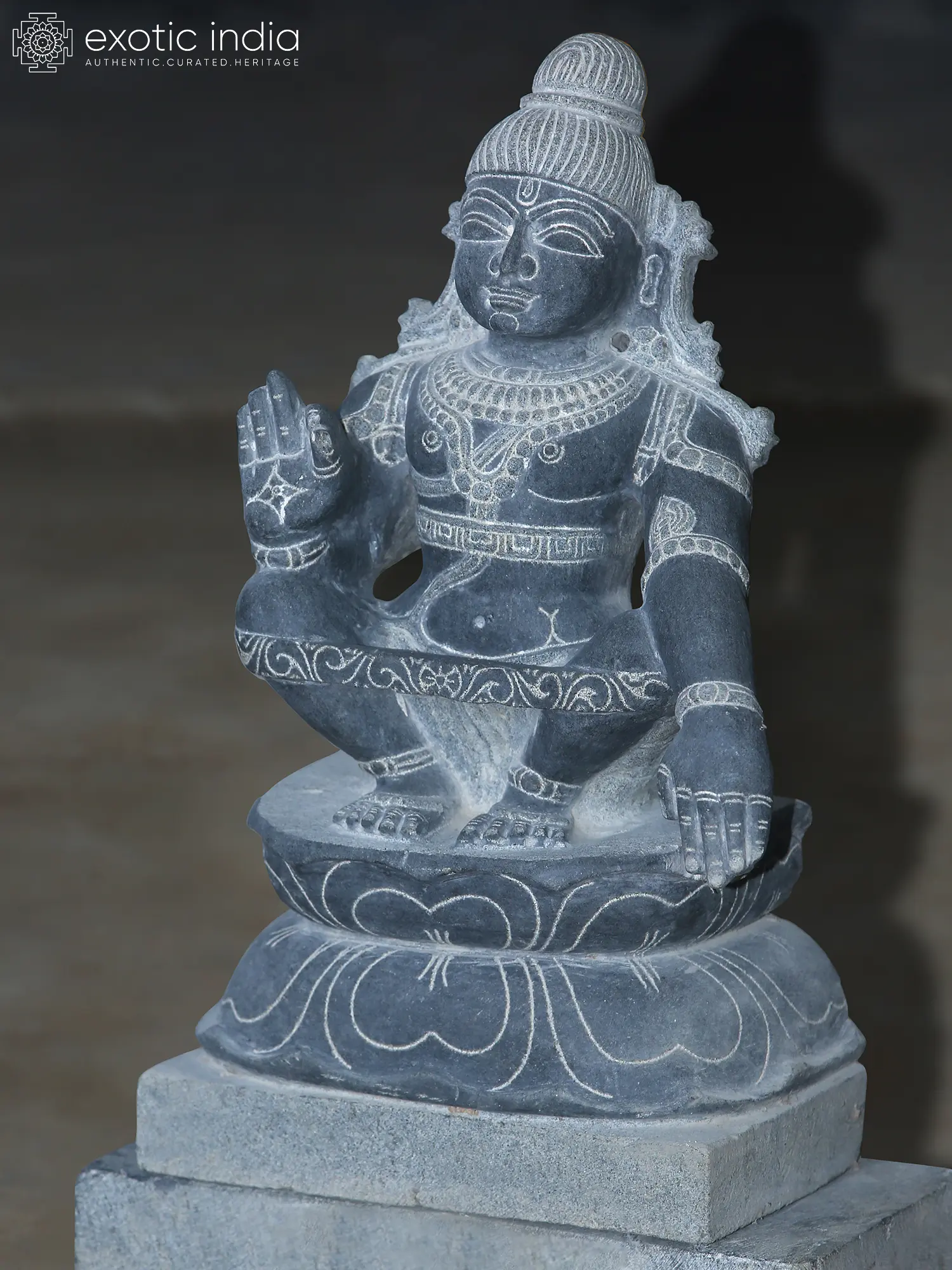 19" Blessing Lord Ayyappan Idol | Black Granite Stone Statue