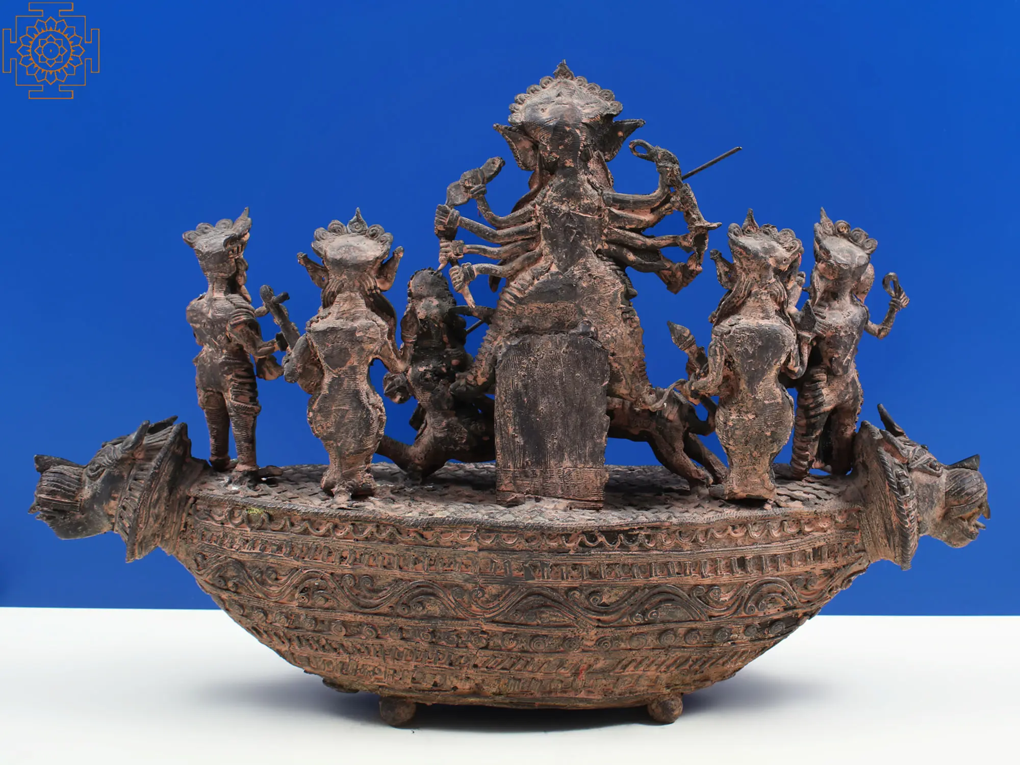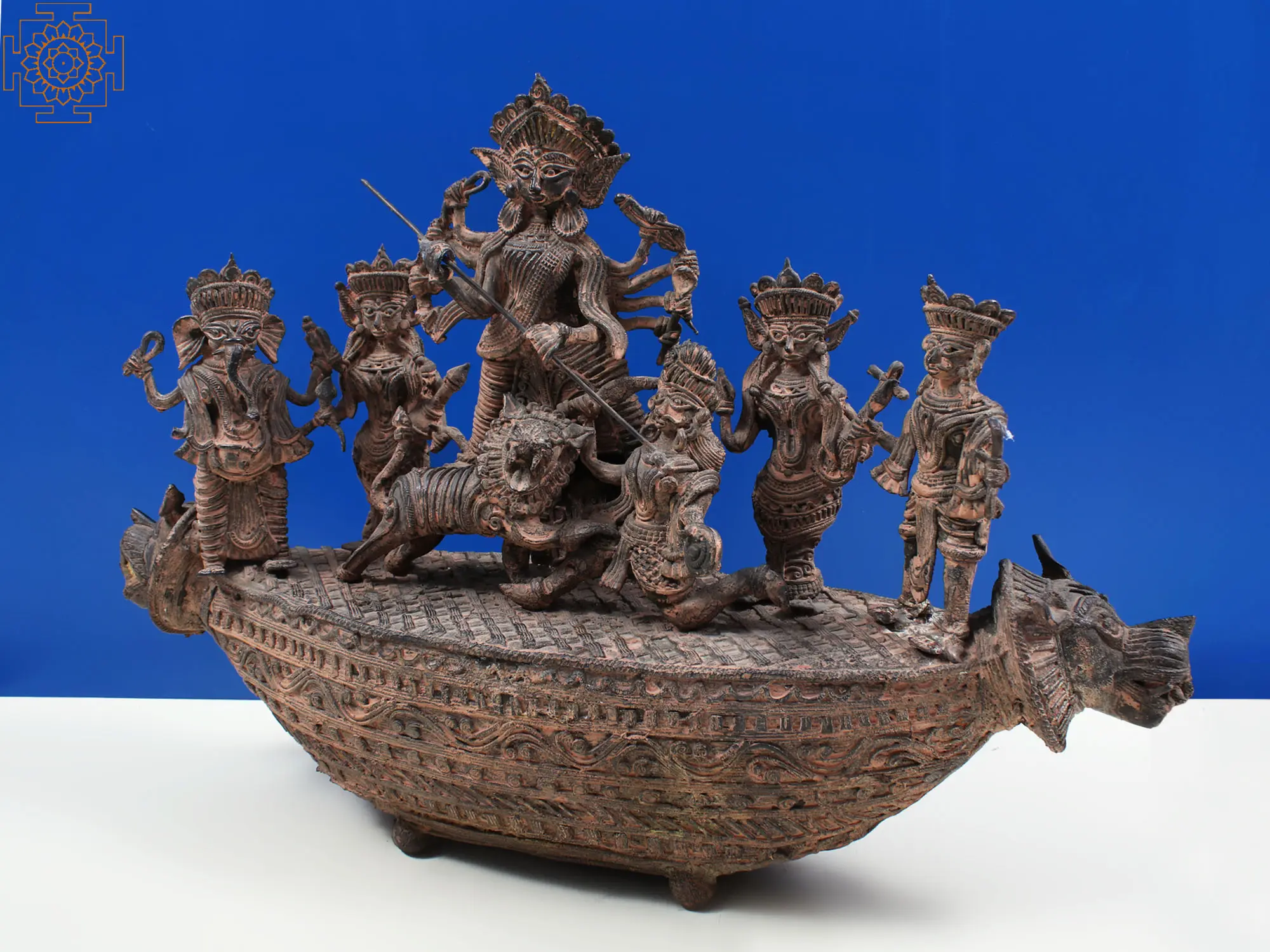 In homes and temples, images of Mahishasura Mardini serve as potent symbols of protection, victory, and spiritual awakening. The story of Durga's battle against Mahishasura is a fundamental narrative in Shaktism, the branch of Hinduism that venerates the Goddess as the supreme being. It is a reminder that even the most formidable challenges can be overcome with divine grace, inner strength, and unwavering resolve. This brass sculpture is more than a decorative item; it is an embodiment of these profound spiritual principles, a source of inspiration, and a tangible connection to the ancient traditions and wisdom that continue to guide and empower countless individuals. Its presence is meant to invoke blessings of courage, prosperity, and peace.