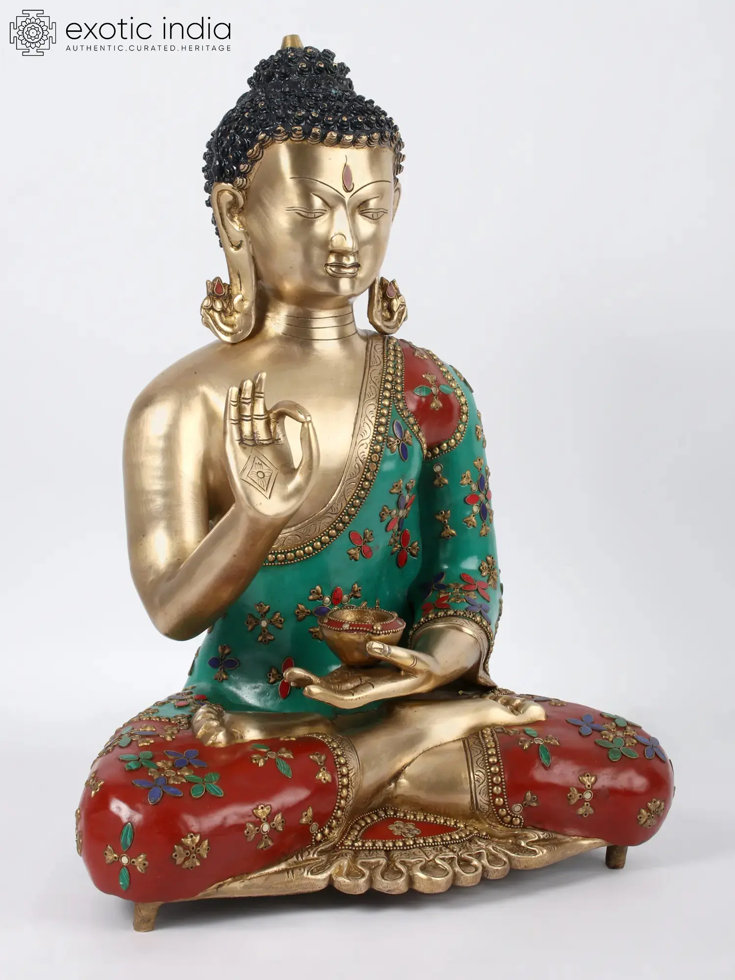 19" Brass with Stone Work Tibetan Buddhist Preaching Buddha