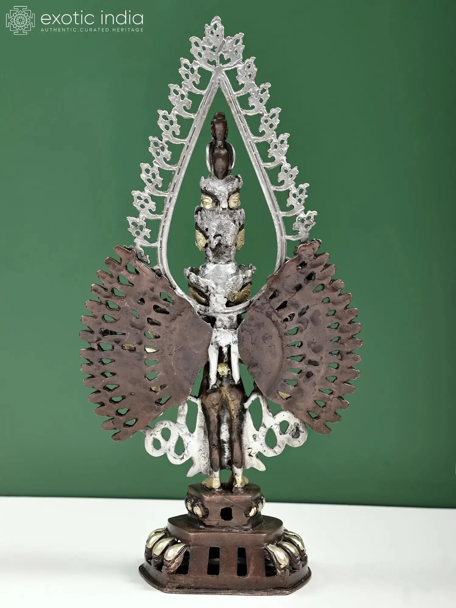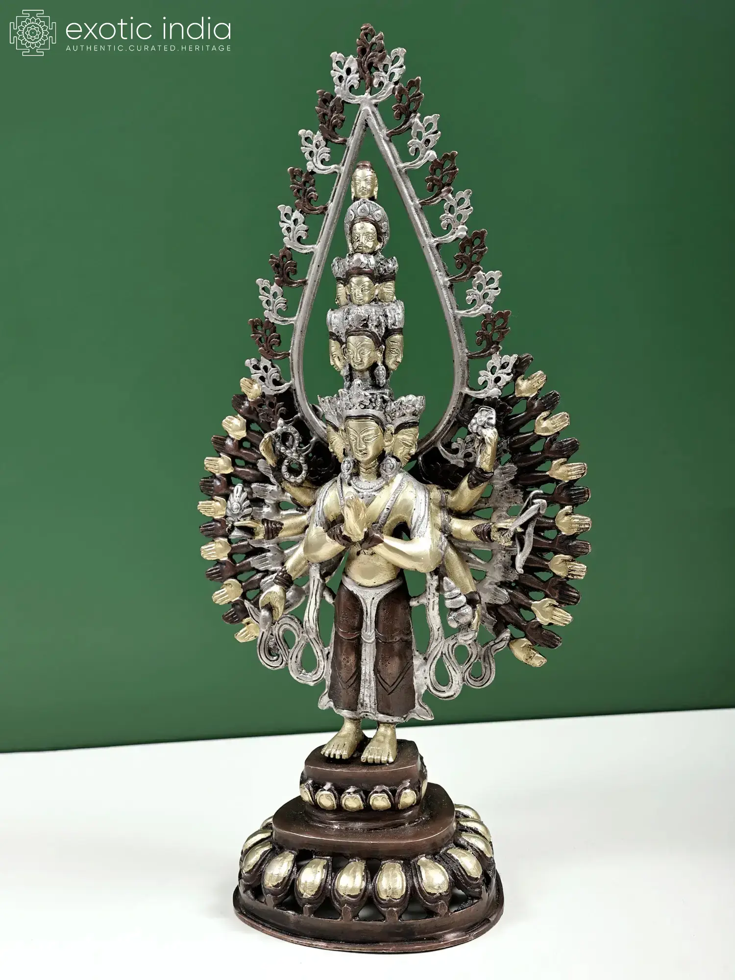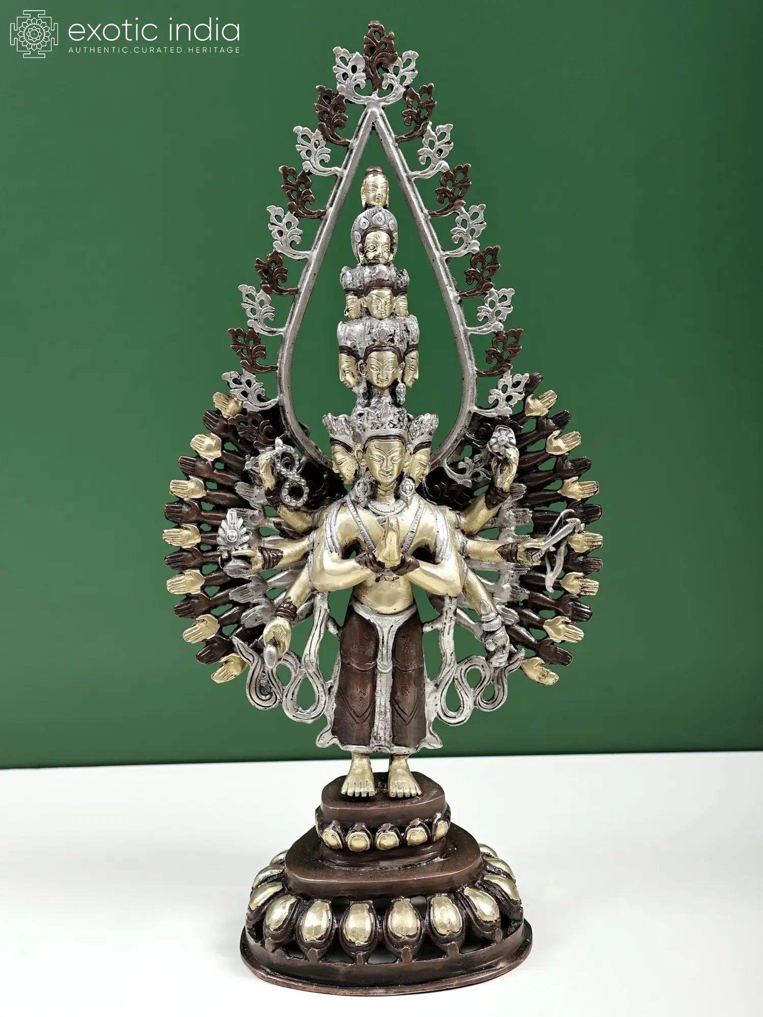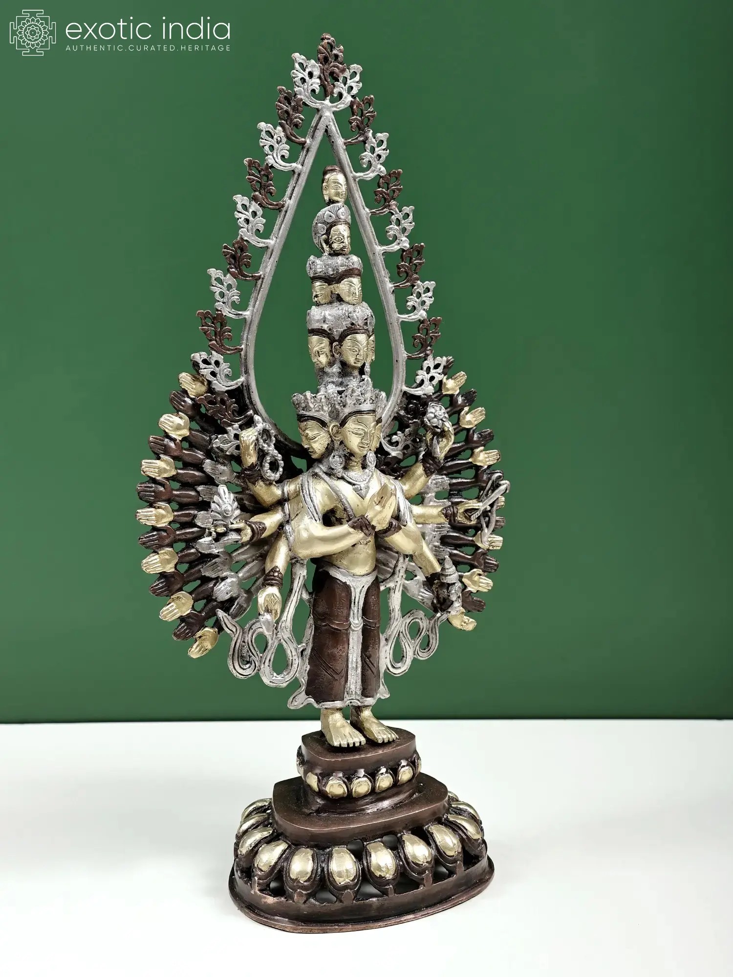 The poignant Buddhist legend unfolds the timeless tale of Avalokiteśvara's unwavering vow to liberate all sentient beings from the ceaseless cycle of saṃsāra. Despite tireless efforts, it became clear that numerous souls still languished in suffering. Overwhelmed by the magnitude of this task, Avalokiteśvara's heart remained resolute, but his head began to split into eleven pieces.
