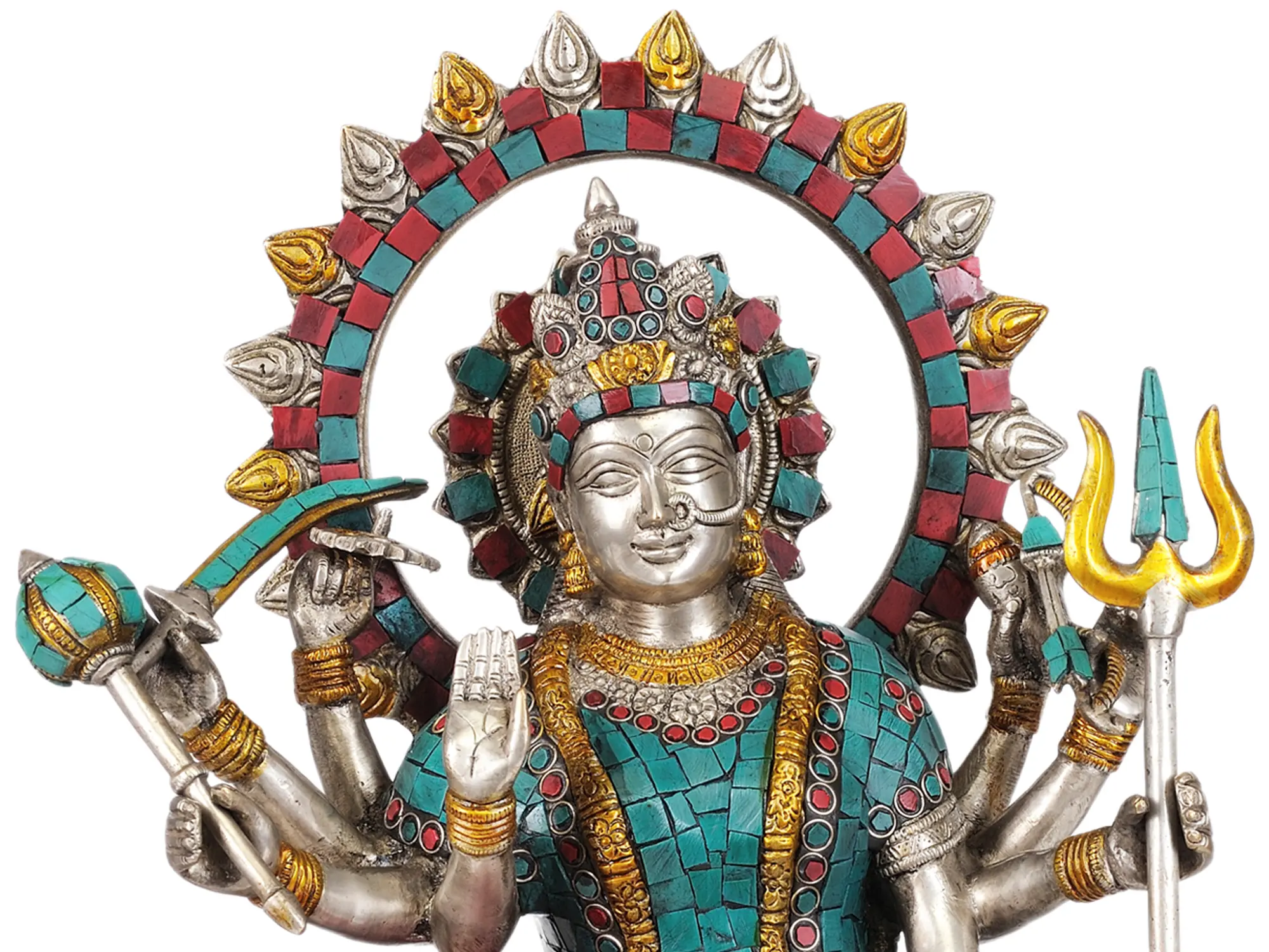 19" Goddess Durga Finely Handcrafted Statue with Inlay work in Brass
