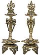 The fabulous enlighteners are divinely blessed with the small figurines of Ganesha and Lakshmi that are finely carved over the lamp head. The entrancing goddess is adorned with jewels that contrast her beautifully embroidered dress. It drapes over her cauldron-shaped yet debossed seat, while she plays drums, blesses Hindus and shows her flowery Henna with her numerous and beneficient hands, as a conical bun towers her elegant head.