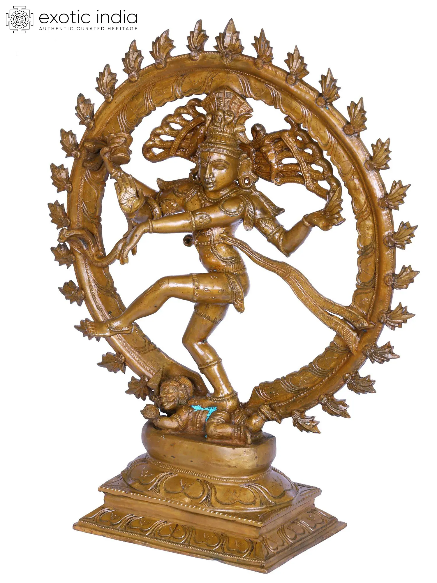 A cobra, a symbol of cosmic energy, uncoils, and his “Abhaya Mudra” (Fear-not gesture) brings assurance. The lowered left hand, pointing to his feet, conveys peace and salvation, creating a divine spectacle of cosmic harmony. This artwork, crafted in bronze, signifies the perpetual cosmic cycle and the pursuit of inner peace leading to salvation.