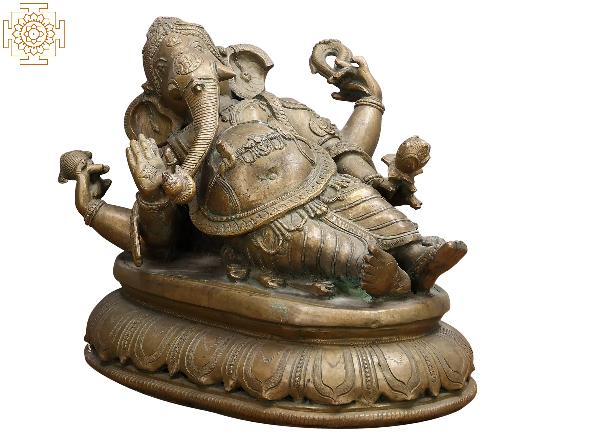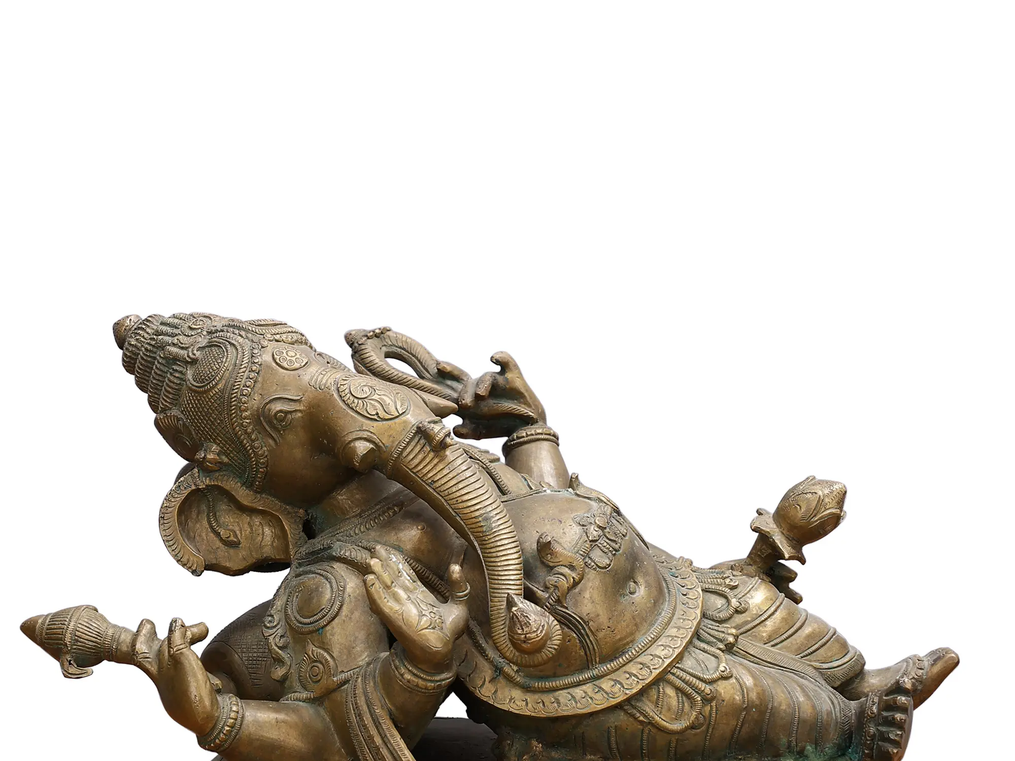 The God of obstacles remover Ganesha also known as Vighneshwara, is represented in numerous forms of sculptures. The god of wisdom and success has only one tusk, is pot-bellied, twinkle-eyed, and is the jolly son of Lord Shiva. The reclining Sculpture of Lord Ganesha signifies Luxury, comfort, and contentment. The arrival of the Ganesha is celebrated as a majestic festival, especially in Maharashtra. The presence of a reclining Ganesha can create a serene ambiance in the house and help overcome hurdles to smoothen the path to prosperity and success.