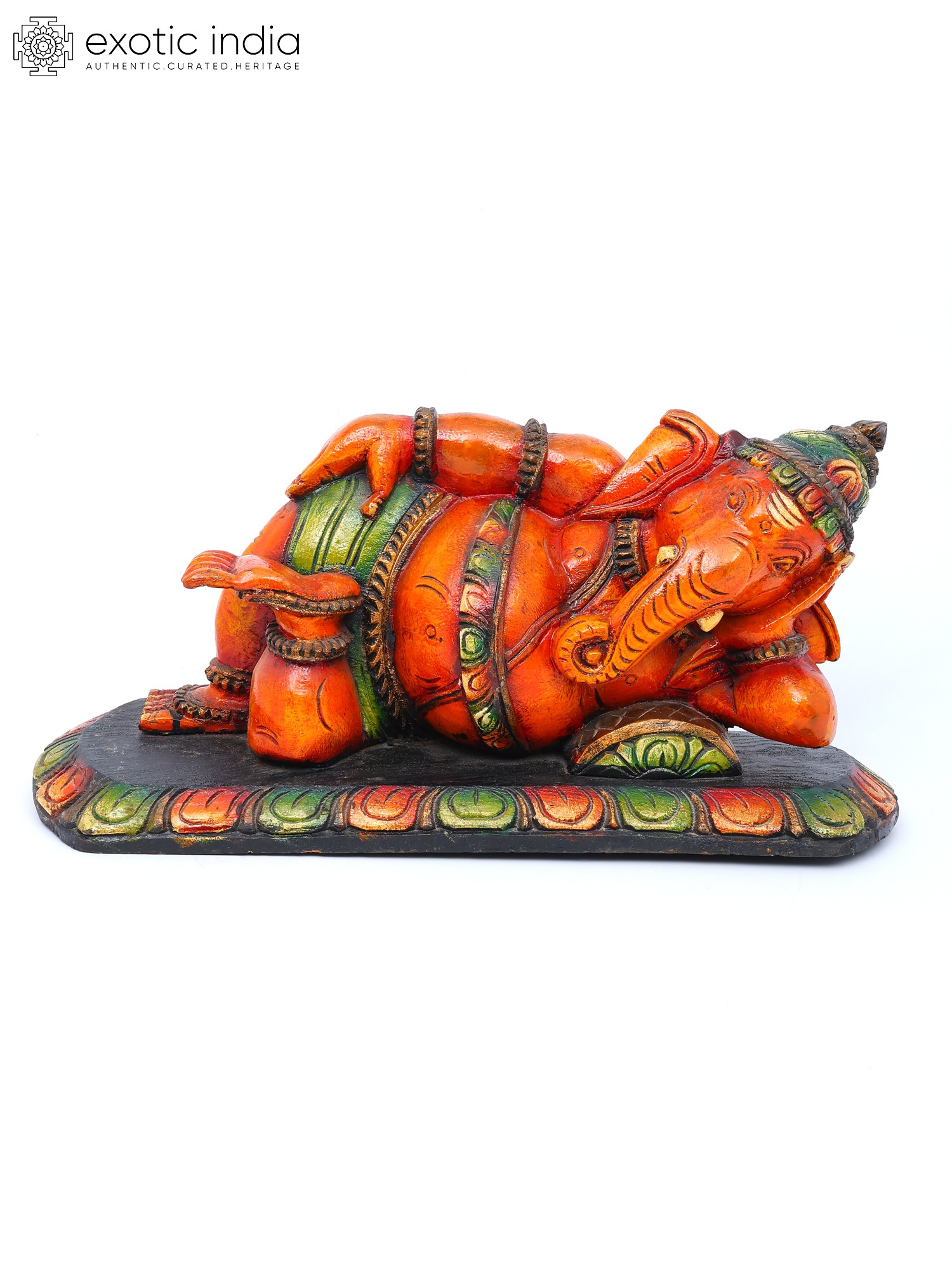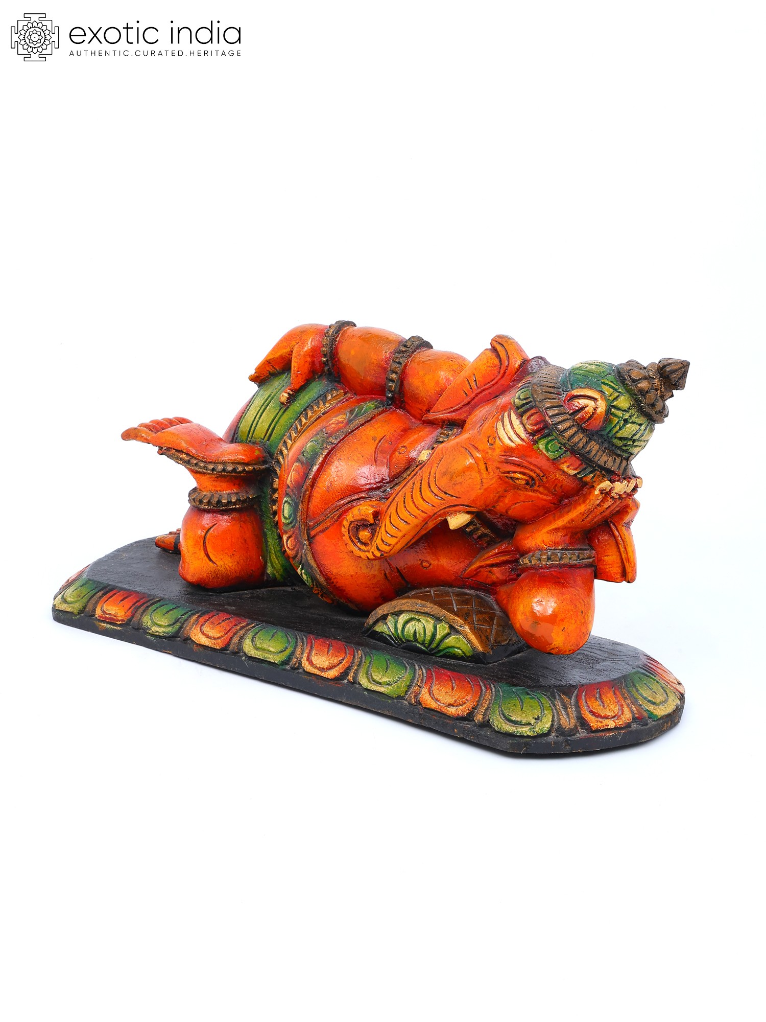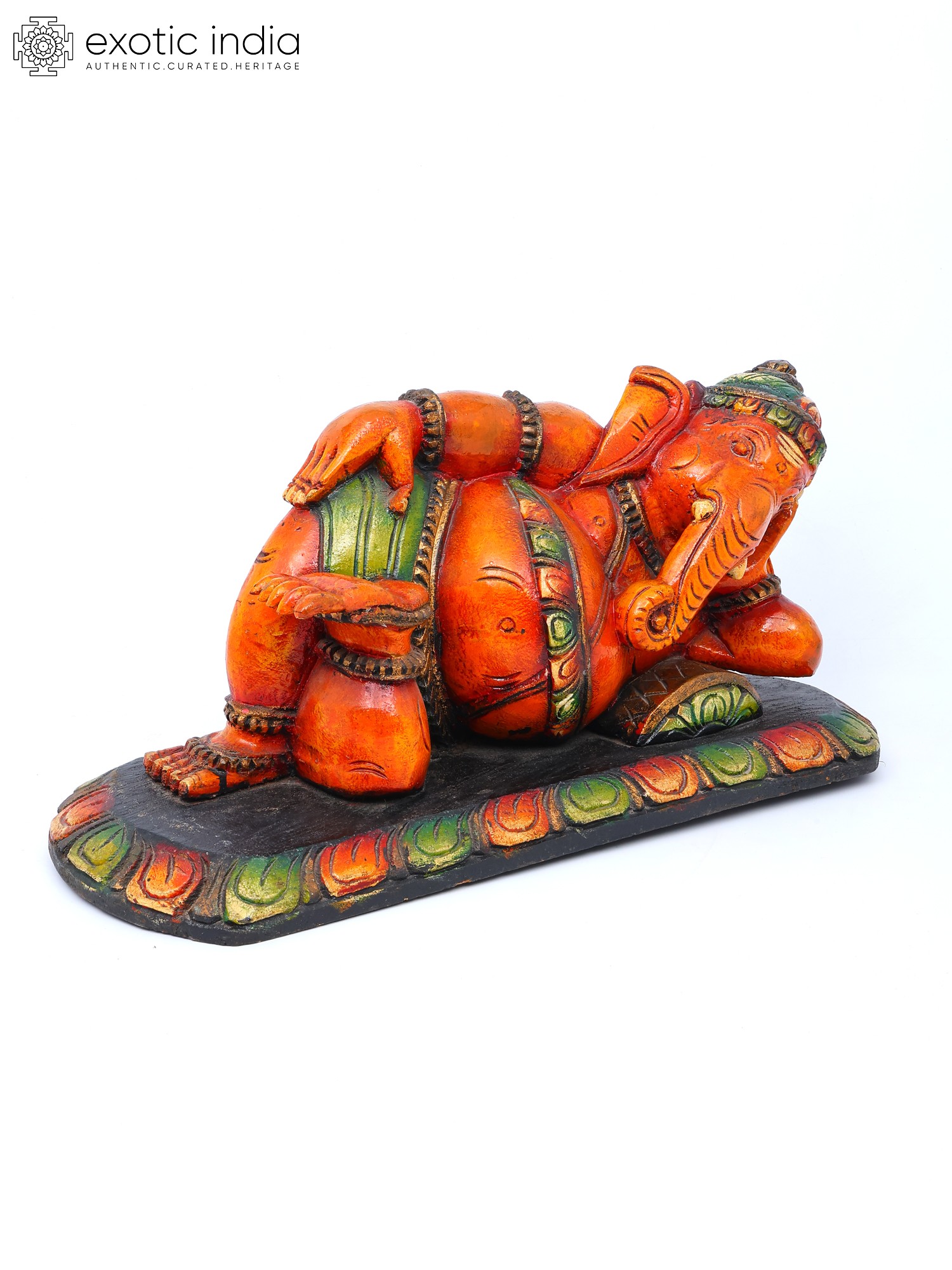 Relaxing Ganesha Wooden Sculpture - Carved from South Indian Temple Wood