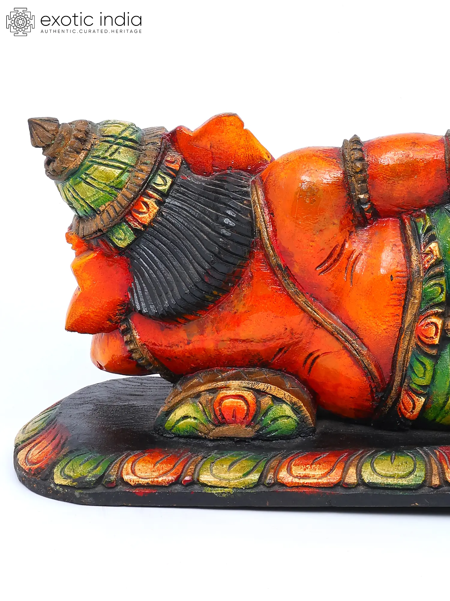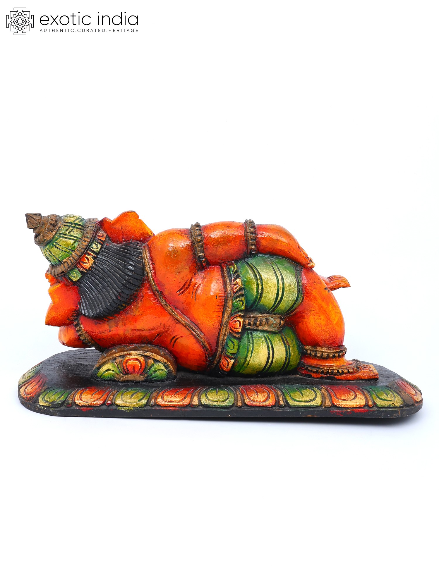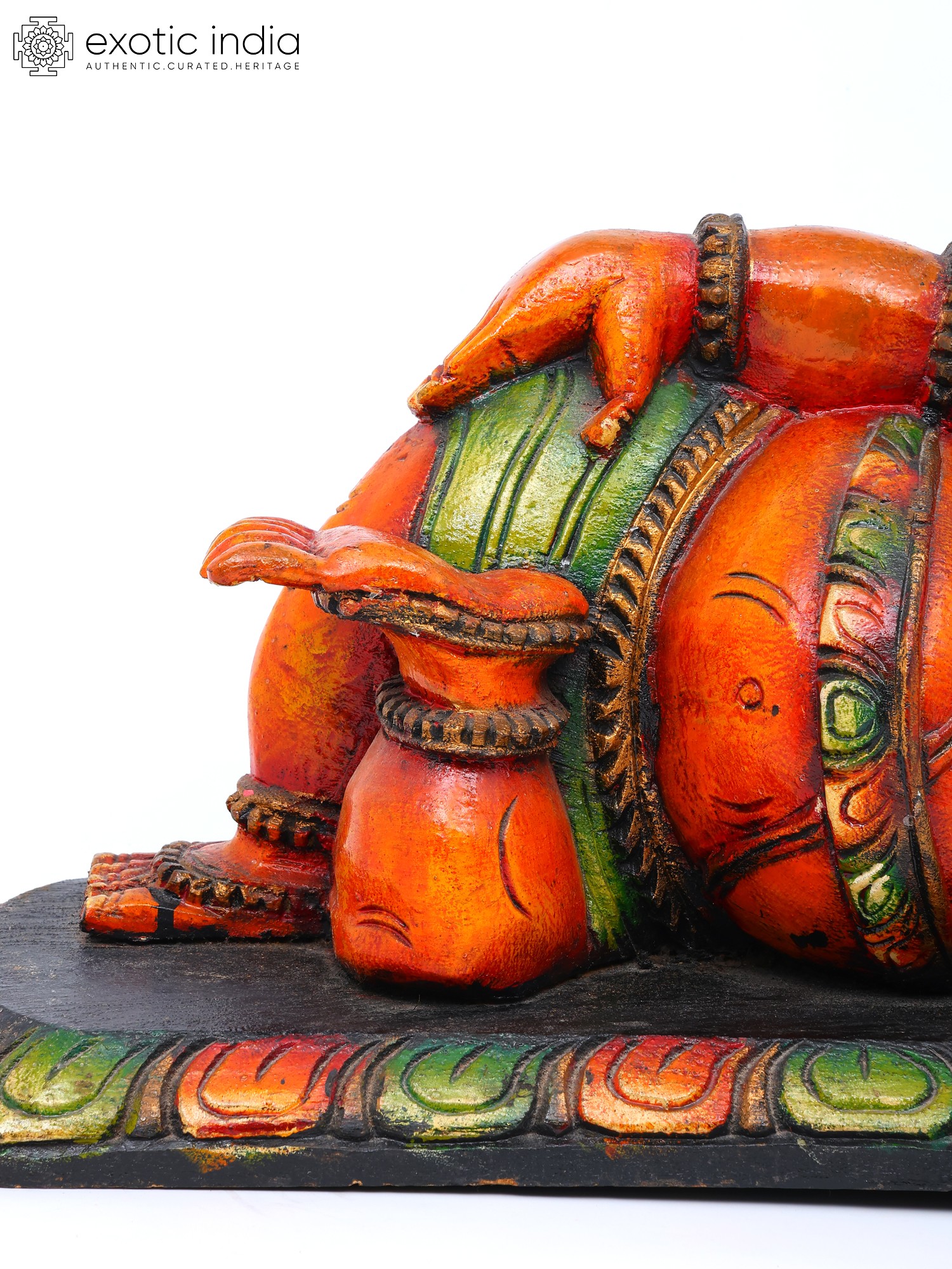 Relaxing Ganesha Wooden Sculpture - Carved from South Indian Temple Wood