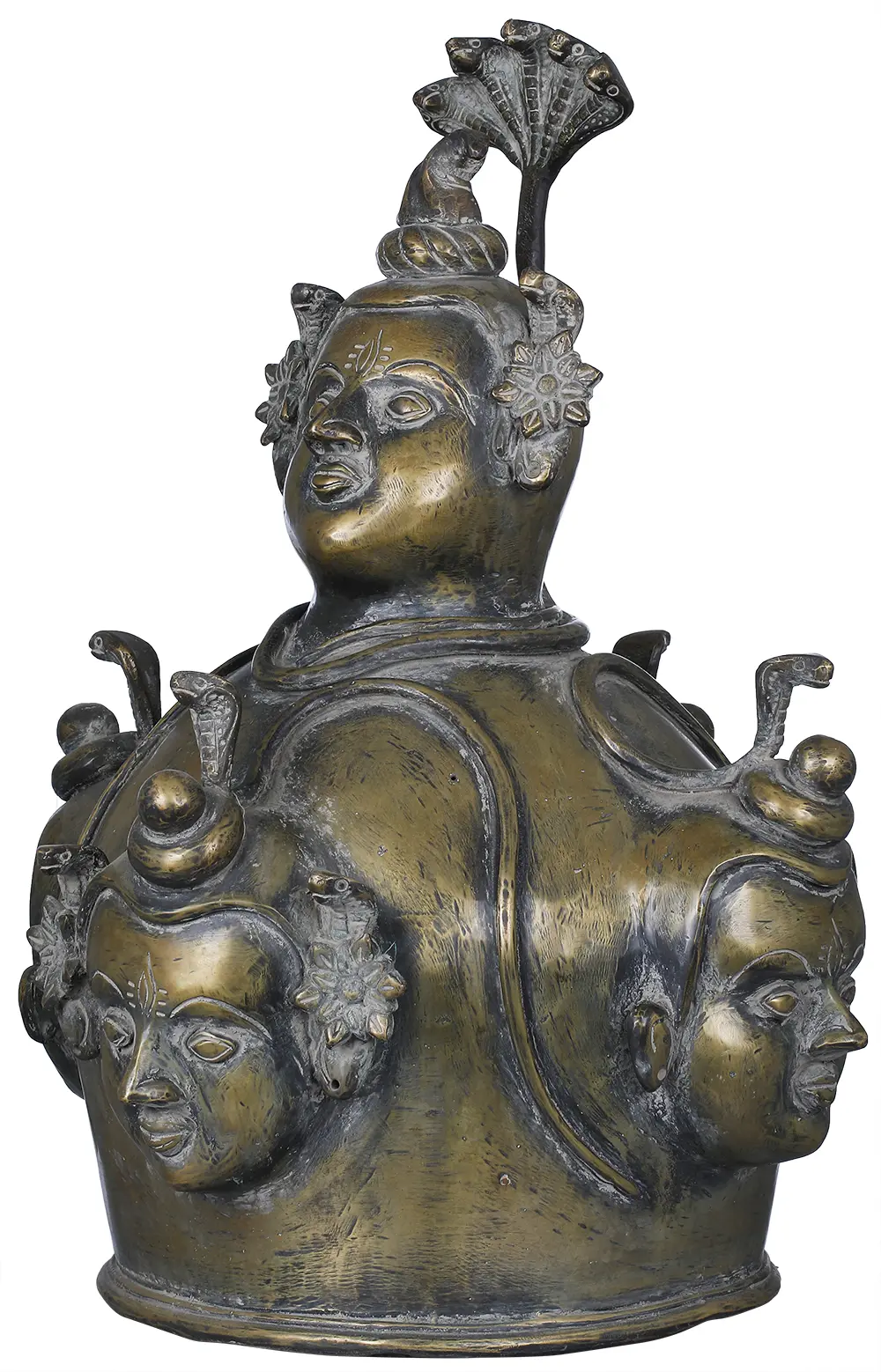 The Shiva Linga Sheath in brass, is a creation of unparalleled artistry and devotion. Handmade with utmost care, it embodies the essence of Shiva's cosmic energy, a connection to the divine that transcends time and place. This tribal statue is not merely an art piece; it's a reminder of the timeless spiritual journey. As you honor Shiva through this handcrafted work of art, you are drawn into the mystical world of devotion and meditation. Each detail, echoes the ancient chants and the sacred rituals that have been practised for generations