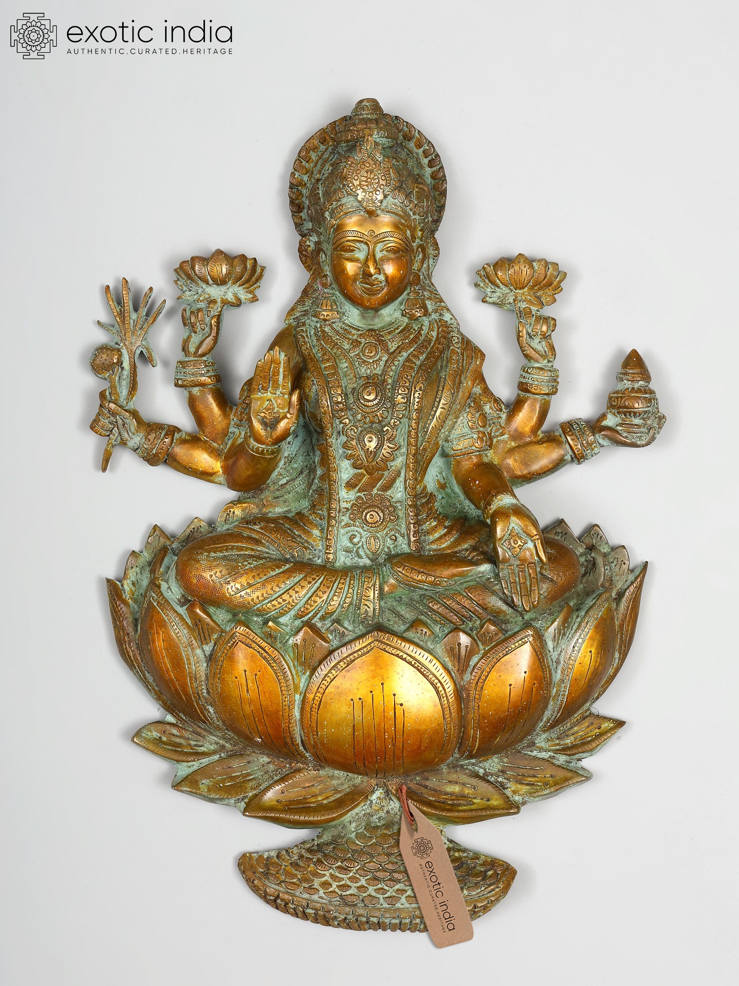 11" Brass Lord Ganesha Seated on Lotus | Wall Hanging