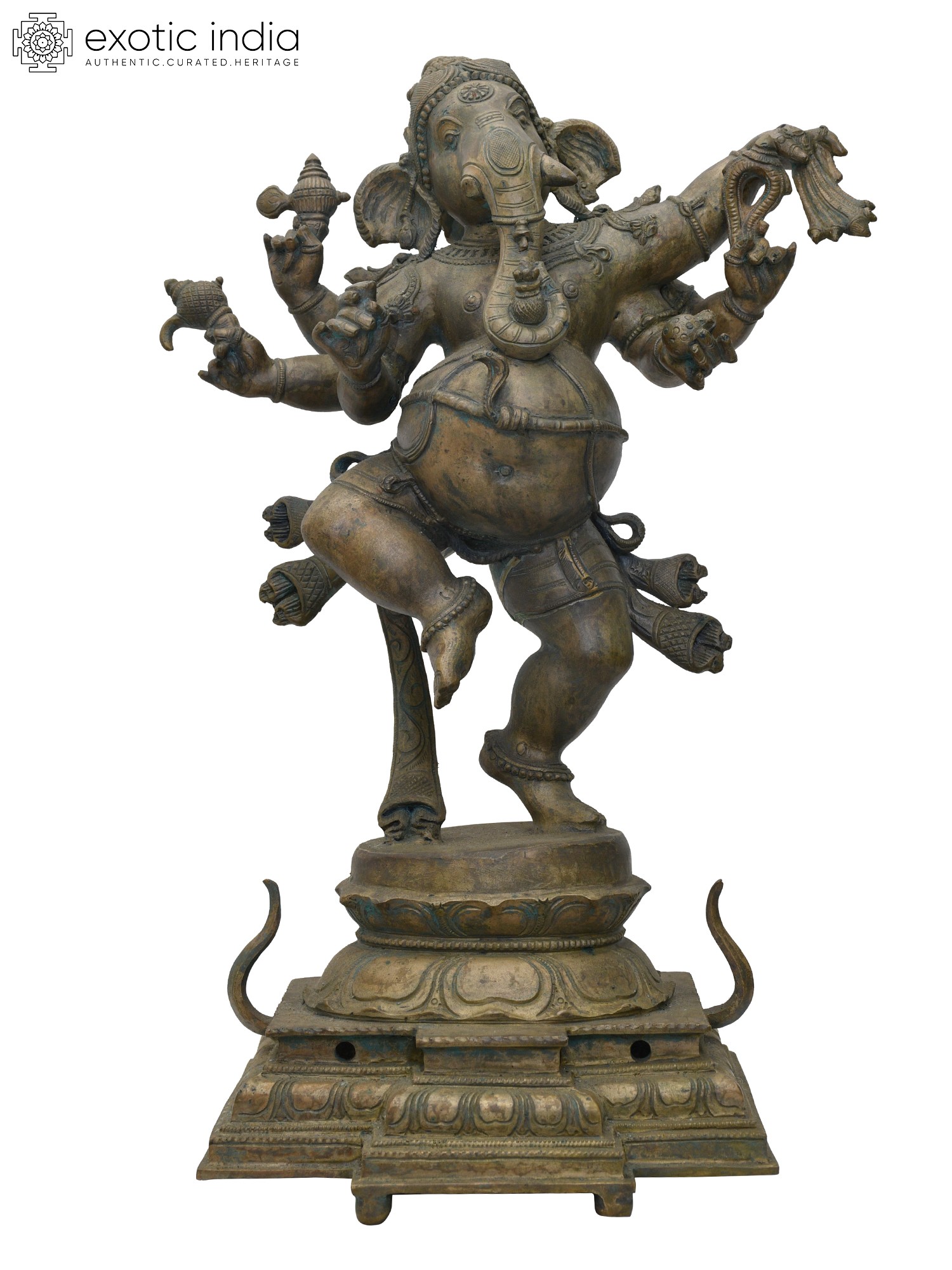 29" Handmade Four Hand Dancing Ganesha Panchaloha Bronze Statue