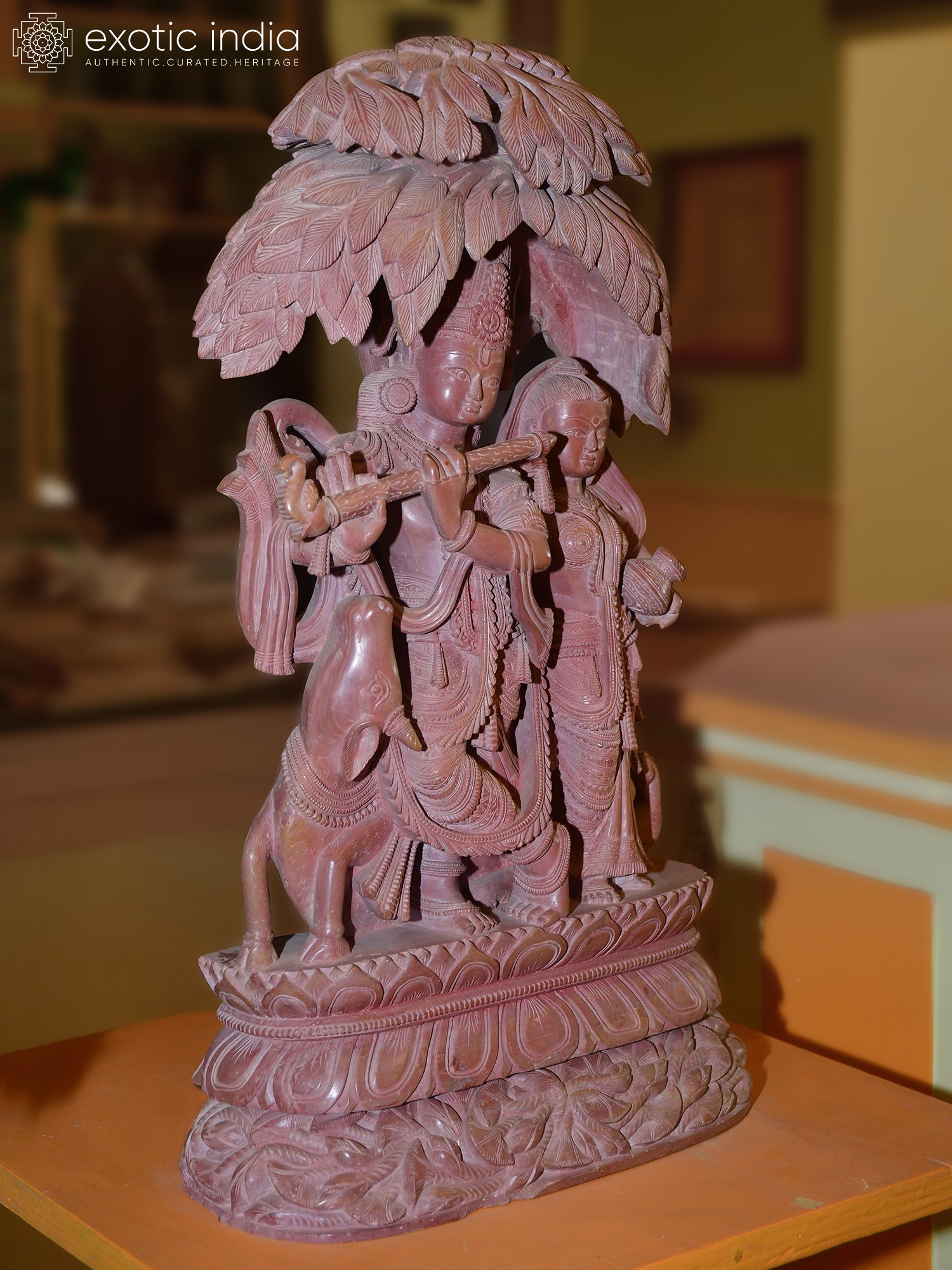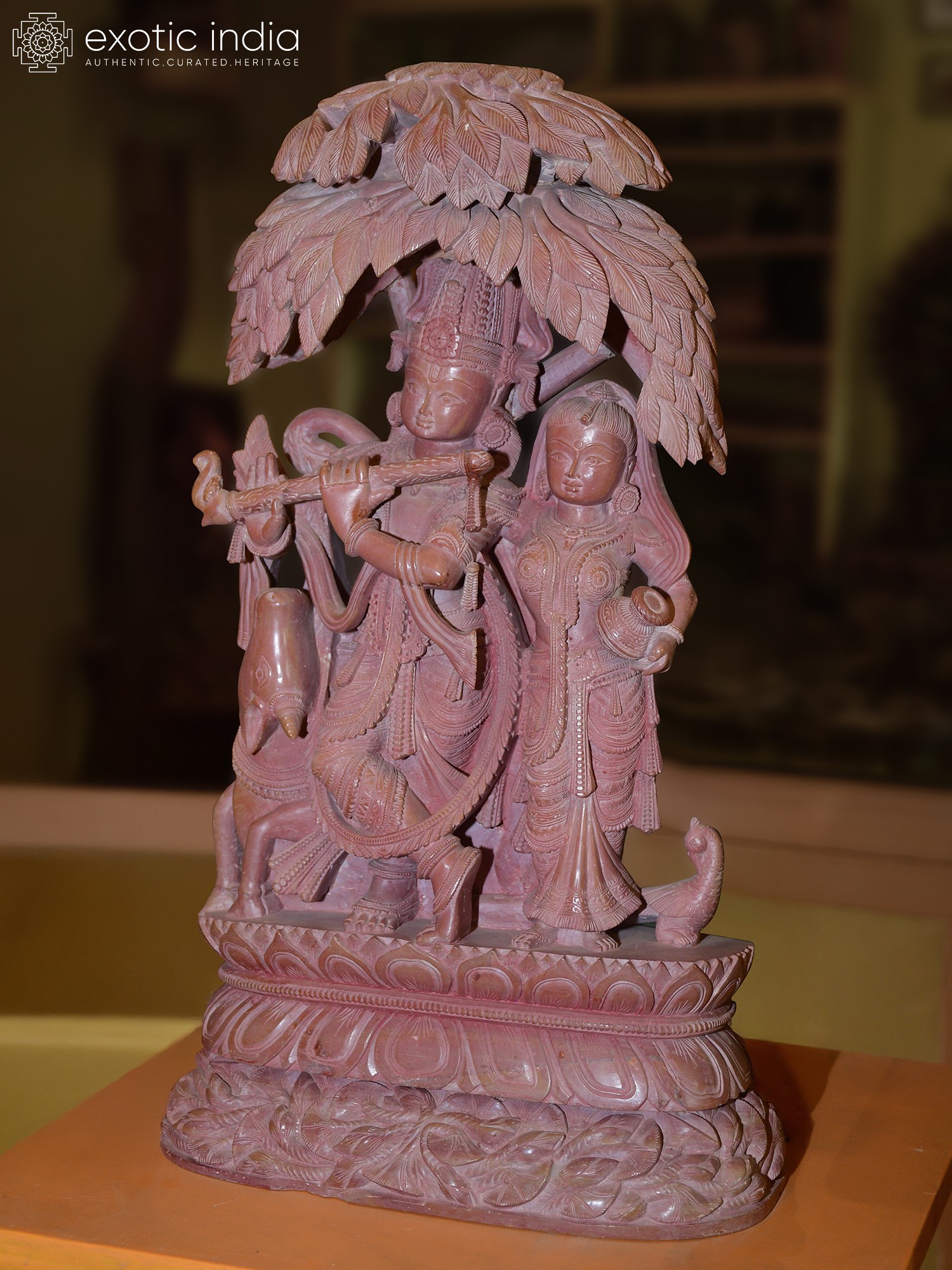 45" Identical Radha-Krishna Statues Within an Aureole Engraved with Krishnaleela Episodes