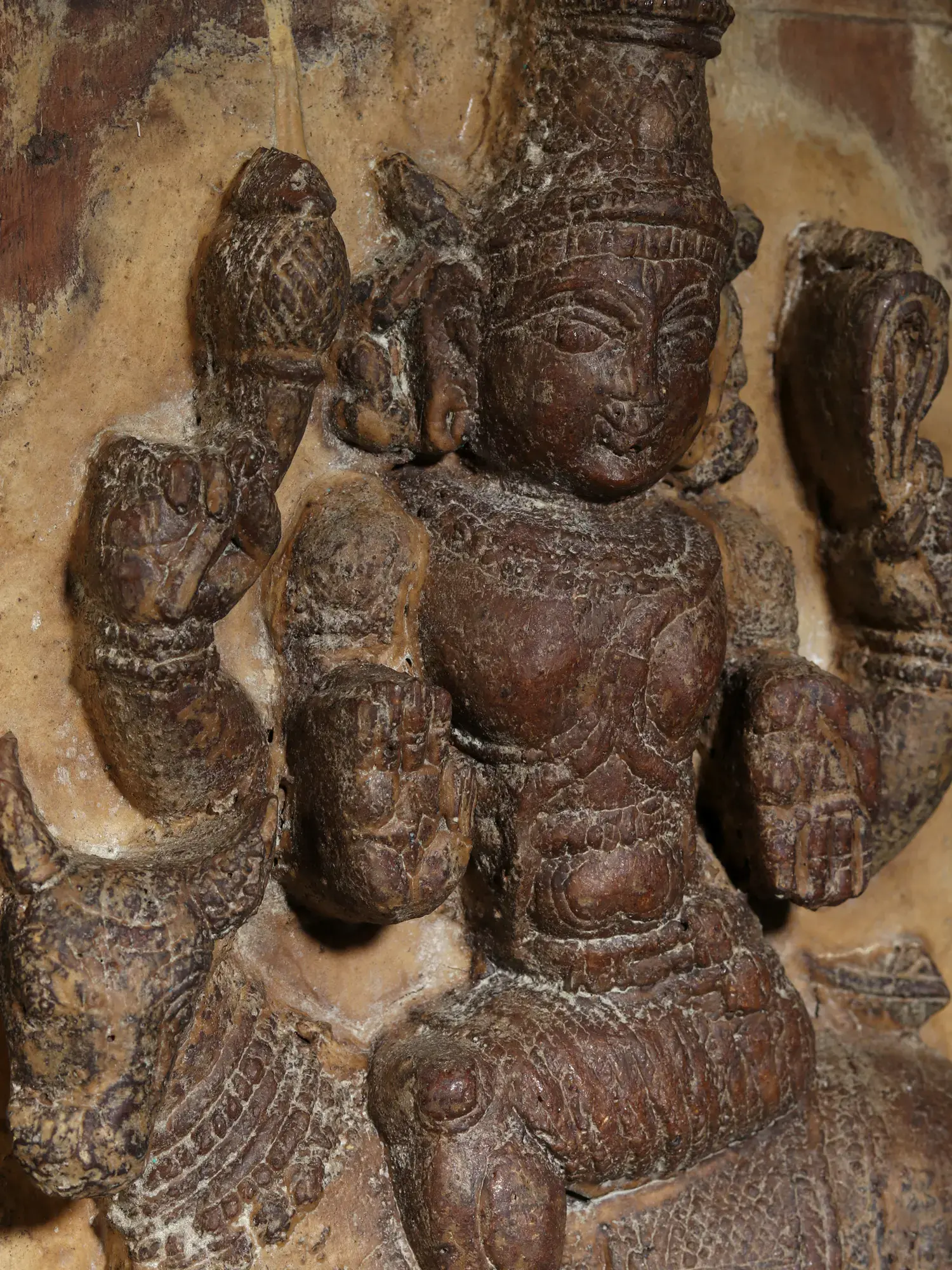 Exquisite detailing in the ornate attire of Yama and the buffalo showcases fine craftsmanship. The distressed look imparts a museum-like quality, enhancing its antique charm. This wooden panel not only serves as a decorative artifact but also narrates a cultural and mythological story, making it a compelling addition to any art connoisseur's collection.