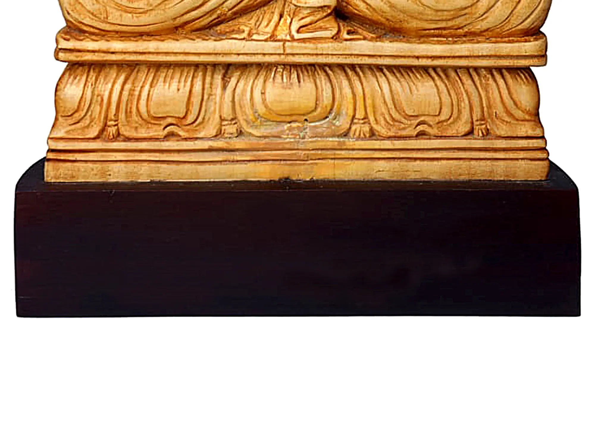 Embrace serenity and wisdom with this exquisite wooden representation of the Teaching Buddha. Carved with meticulous detail, this statue captures the serene countenance of Siddhartha Gautama, the prince who renounced his worldly possessions to seek enlightenment and share the path to liberation with all beings. Seated in the traditional lotus position, his posture signifies deep meditation and spiritual stability, an echo of the centuries of devotion this pose has inspired. The left hand rests in his lap, symbolizing meditation and the accumulation of merit, while the right hand is raised, fingers gently curved in the Vitarka Mudra. This gesture signifies the act of teaching, of imparting knowledge, and of dispelling ignorance. It is a gesture that echoes the Buddha's first sermon at Sarnath, where he set in motion the Wheel of Dharma, beginning his profound teachings on the Four Noble Truths and the Eightfold Path. This very mudra is a visual testament to the profound impact of his philosophy, which has guided countless souls toward inner peace and understanding for over two millennia.