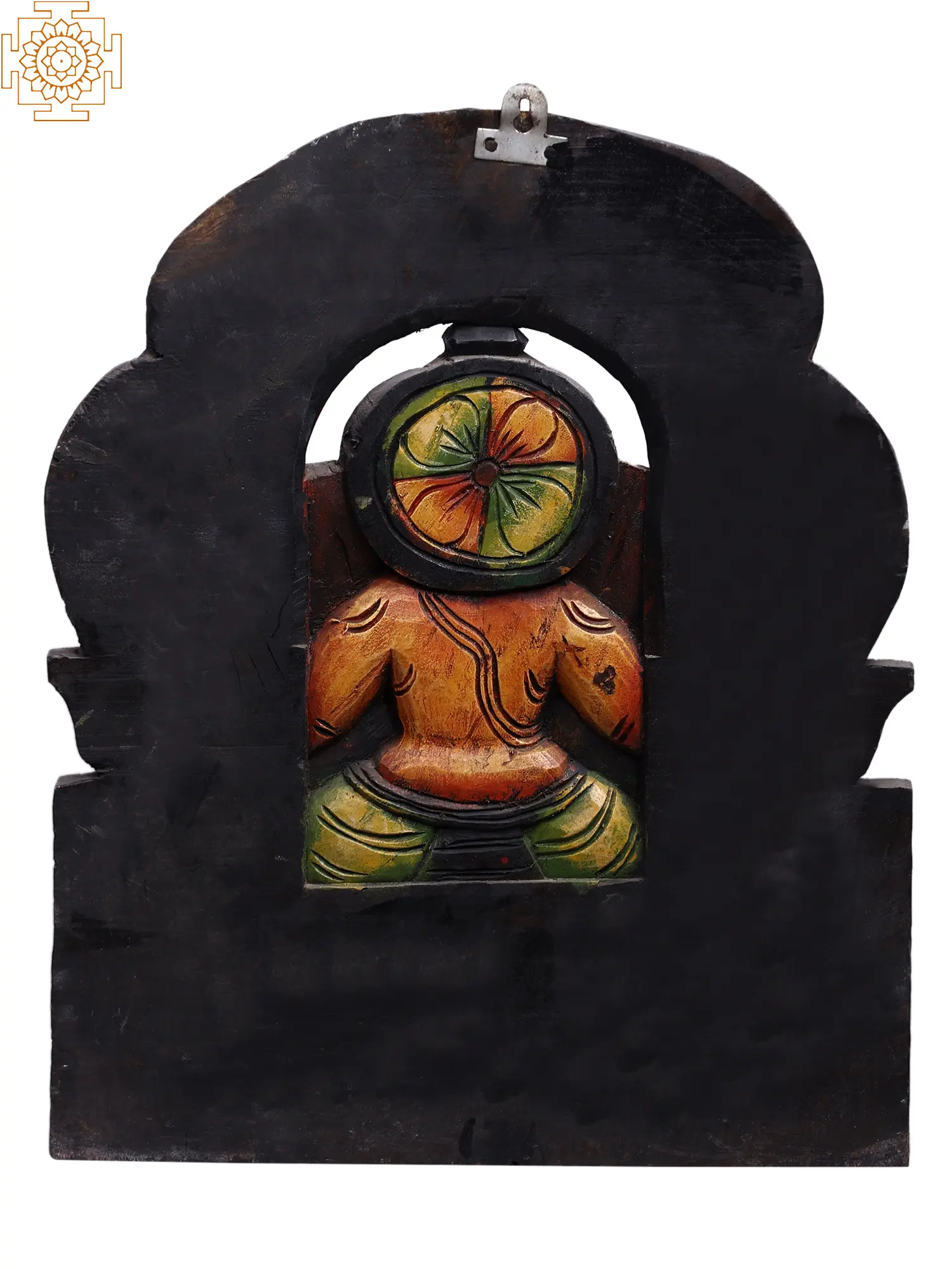 19" Wooden Sitting Lord Ganesha with Kirtimukha Wall Hanging