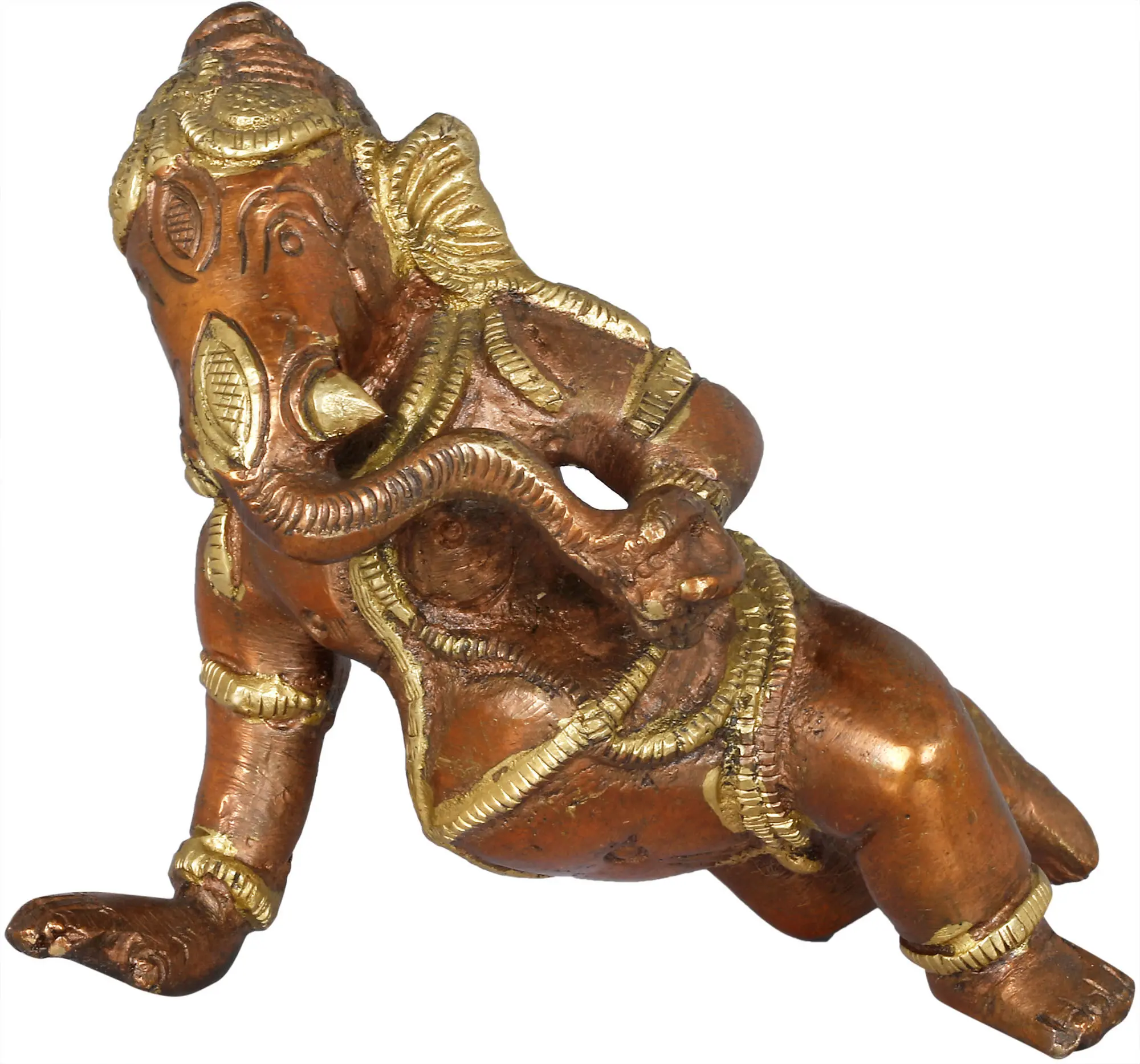 “From small beginnings come great things." This aligns with the Baby Ganesha with Modak brass sculpture. Handcrafted, it captures Lord Ganesha in his endearing infancy. His plump form and the modak he holds in his hand symbolize potential and the sweetness of beginnings. This sculpture encapsulates the boundless energy and promise that come with new ventures. Baby Ganesha's playful demeanor is a true example of expressing politely that the journey of growth starts with small, joyful steps.